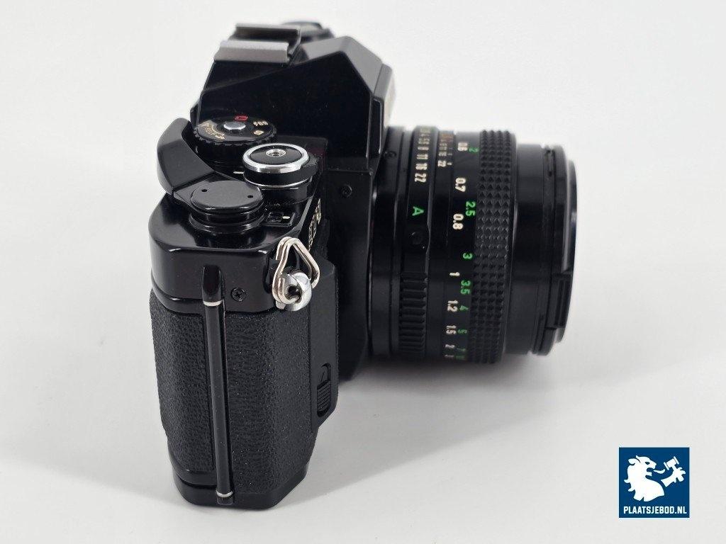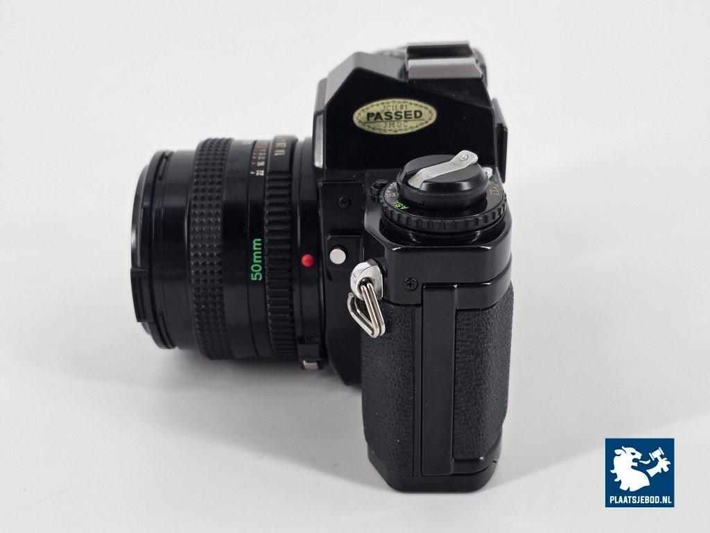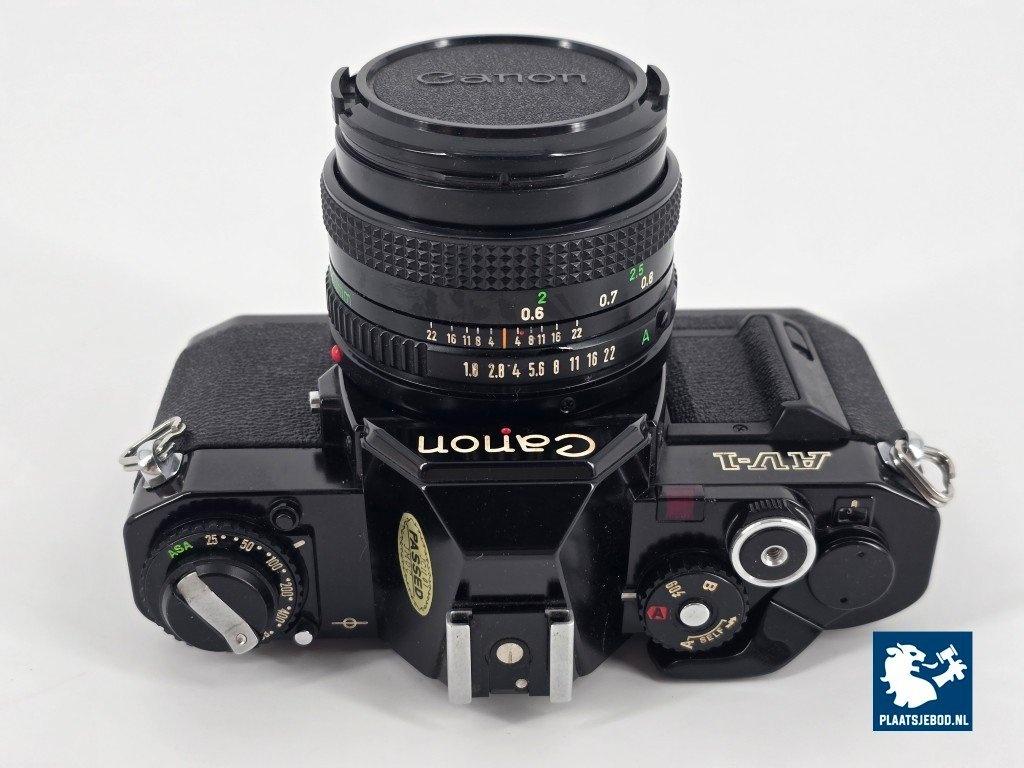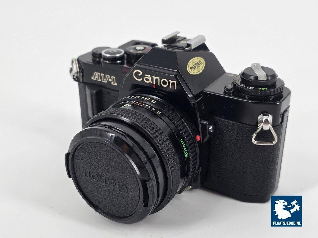 1 x Canon 35 mm. Spiegelreflexcamera type: AV-1, v.v. Canon FD 50 mm. 1:1.8 lens