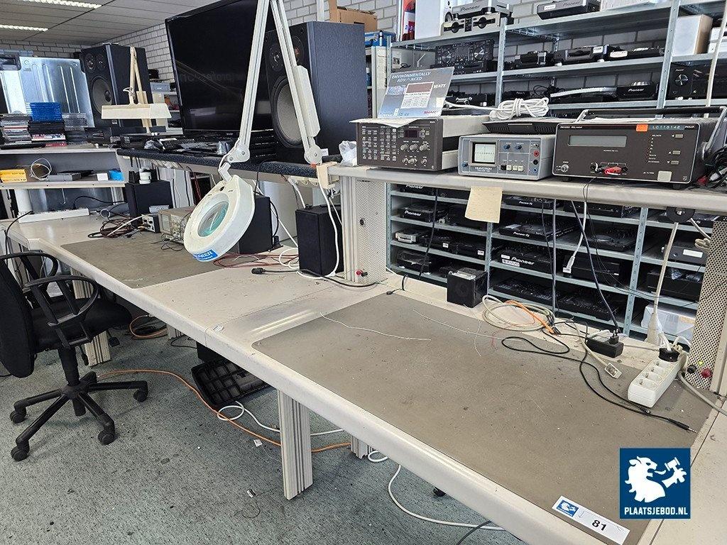 Lot 323-081: 1 x Hoekopstelling met werktafels met opstand, diverse meet/ testapparatuur, etc.