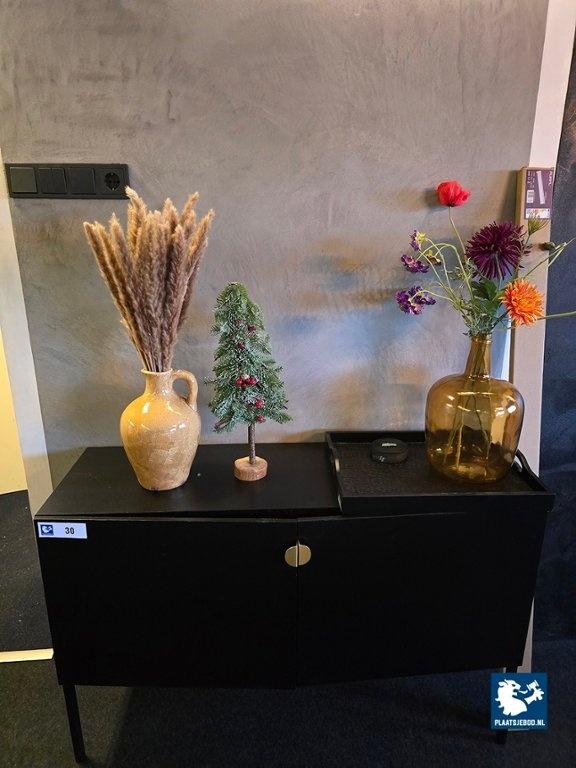 1 x Houten wandmeubel ca. 116 x 35 x 75 cm met diverse decoratie
