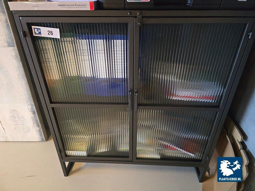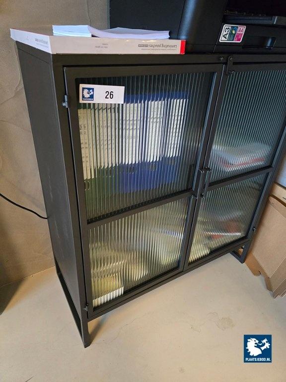 Lot 306-026: 1 x Metalen kast met glazen deuren