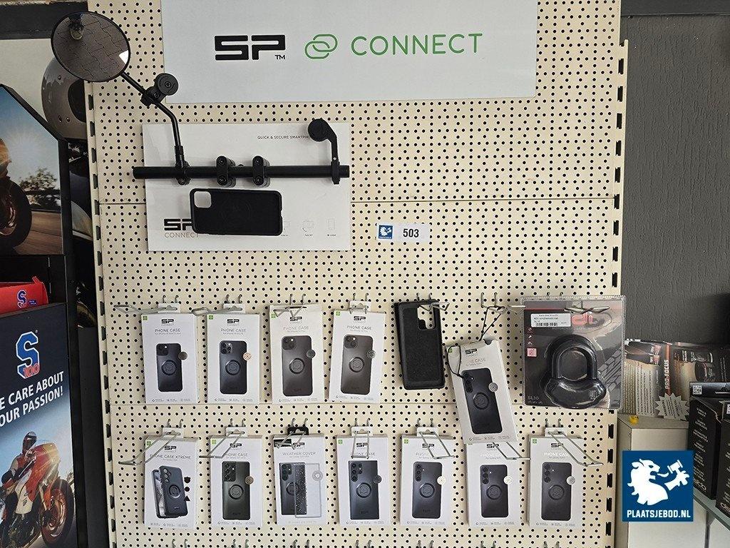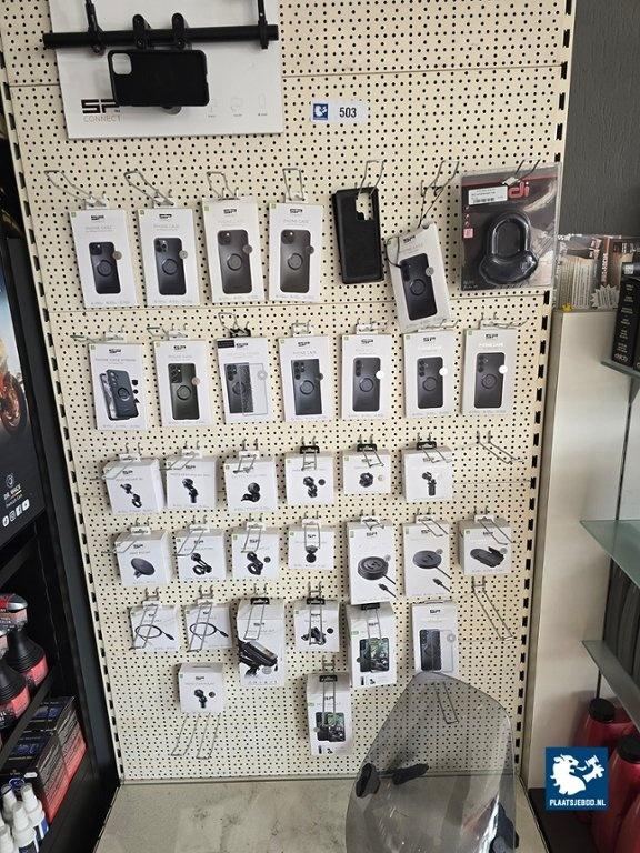 1 x Metalen wandstelling met diverse cases, laders, kabels en bevestigingsmaterialen