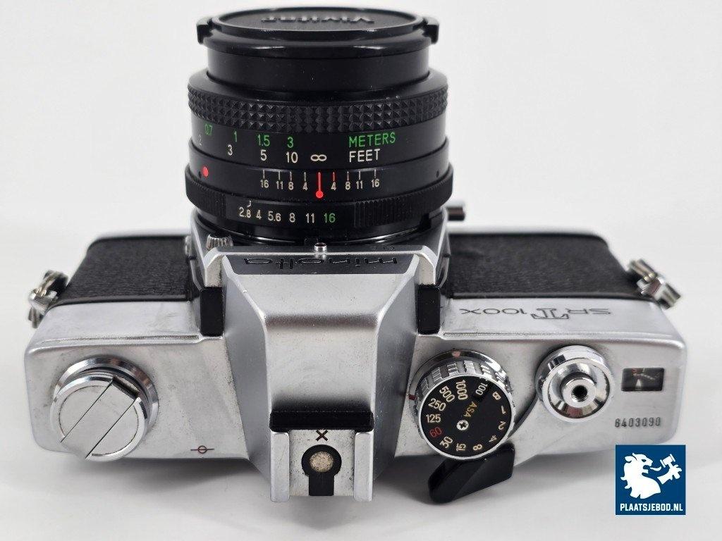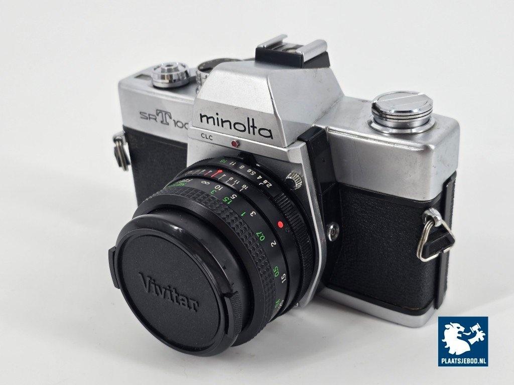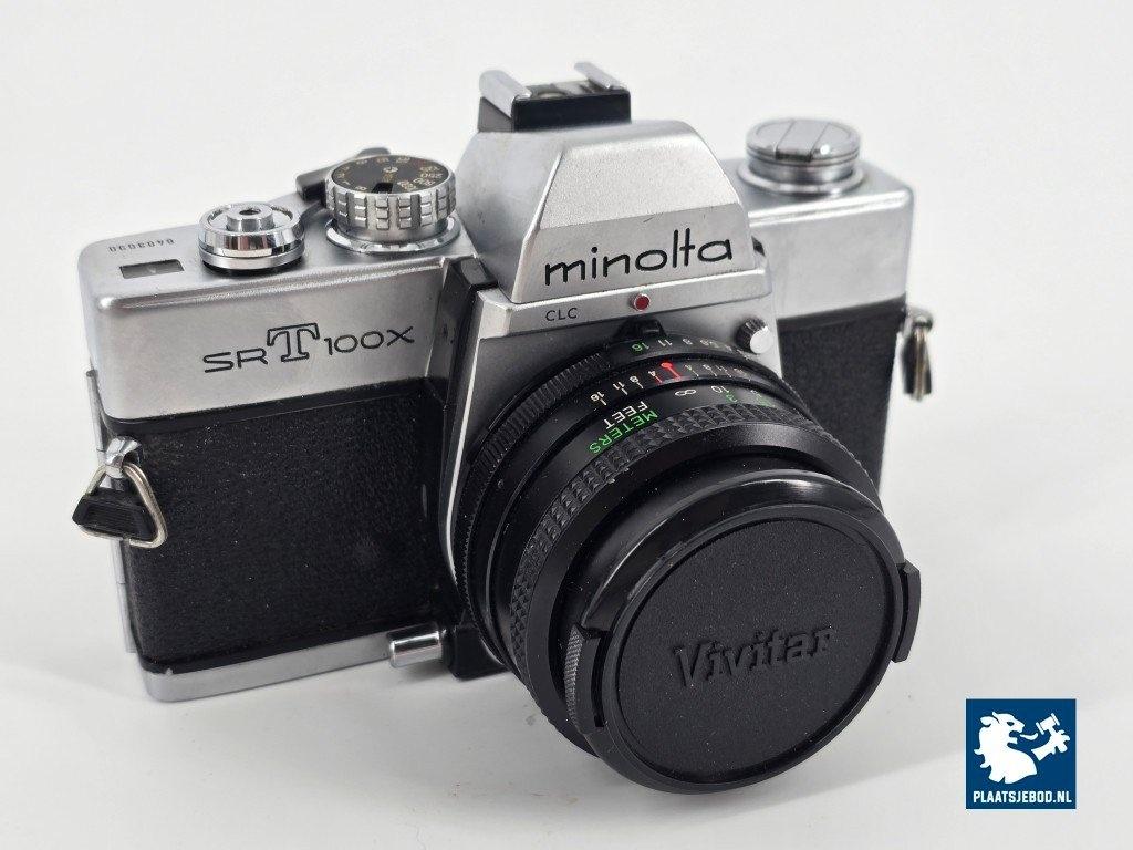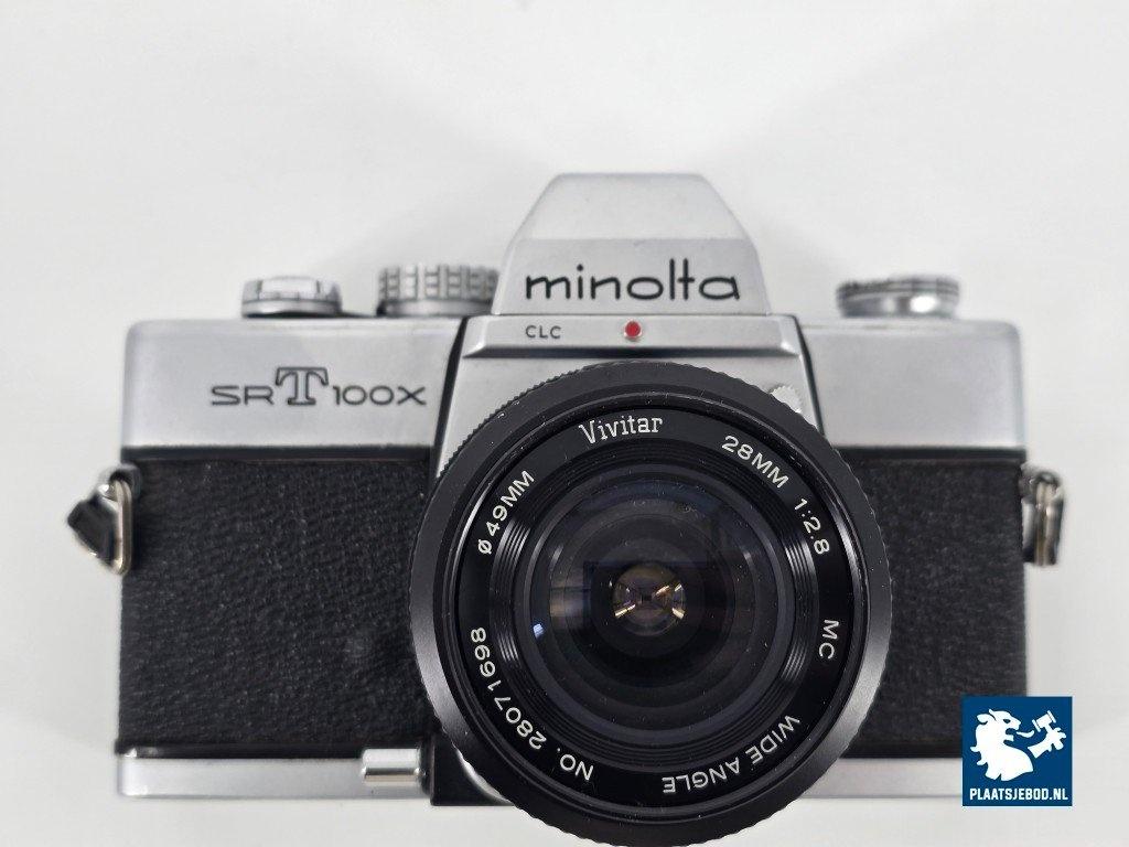Lot 313-036: 1 x Minolta 35 mm. Spiegelreflexcamera type: SRT 100X, v.v. Vivitar Wide Angle 28 mm. 1:2.8 lens