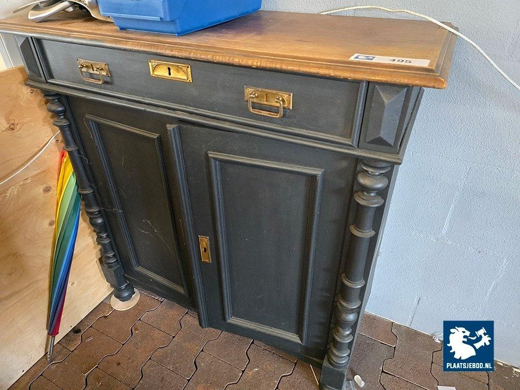 Lot 328-495: 1 x Nostalgische houten kast met diverse inhoud