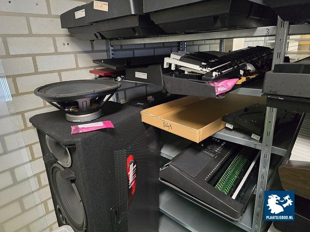 1 x Partij diverse soorten luidsprekers, keyboards, etc. N.B. zonder stellingen