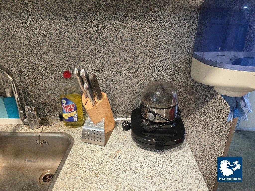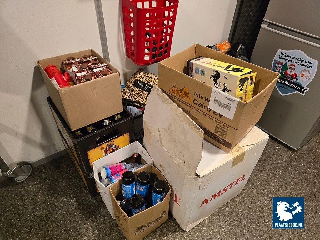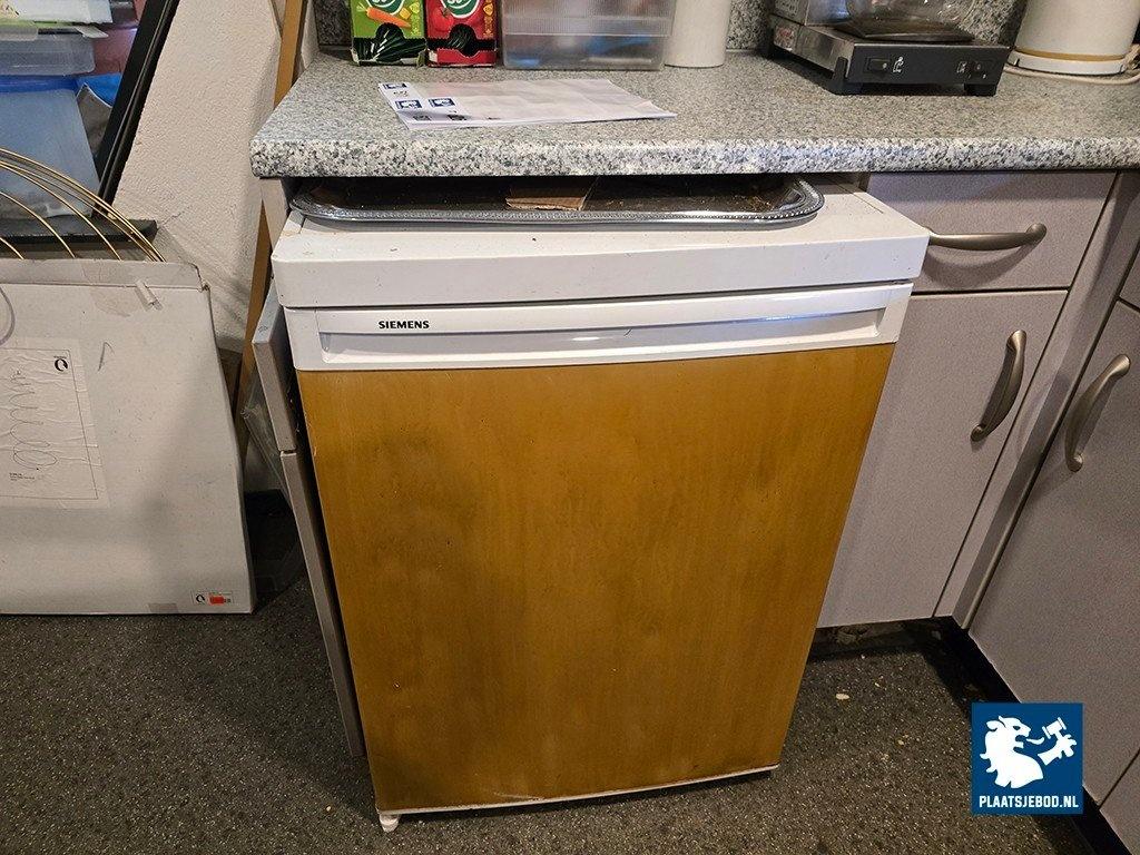 1 x Partij in kantine waaronder een tafel ca. 200 x 96 met 6 x stoel, Inventum 2-deurs koelvriescombinatie, Siemens vaatwasser, kantinegerief, fust etc. Let op: de koper dient een borg van 200,- euro te betalen, deze komt geheel retour na de nette bezemschone oplevering.