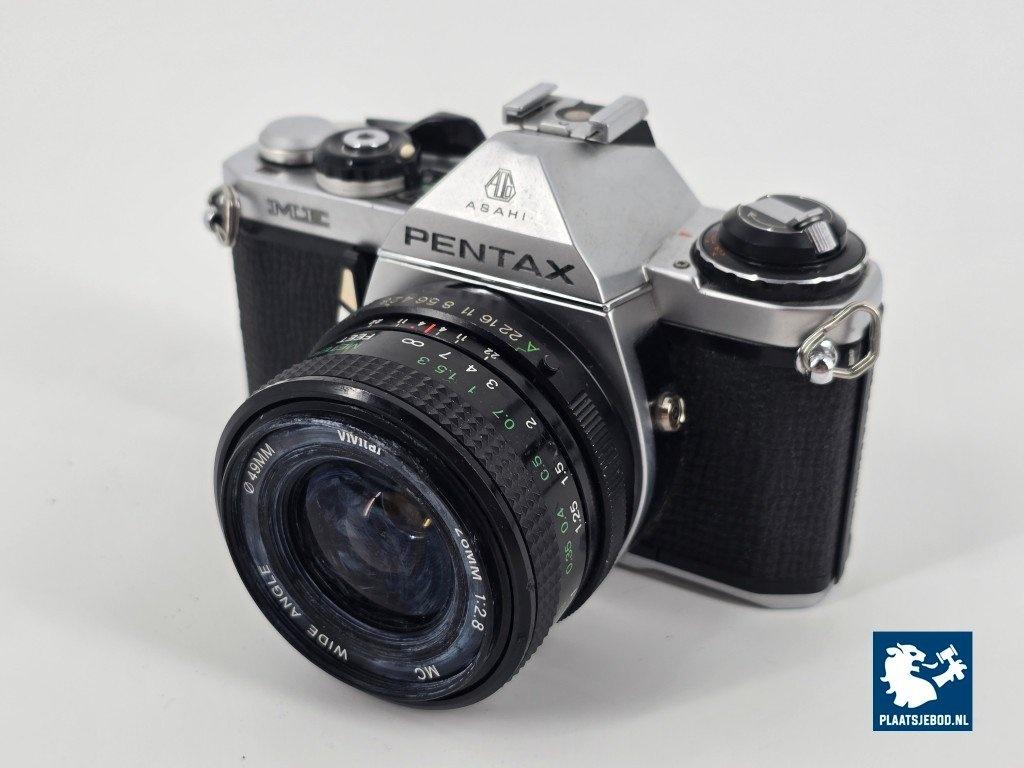 Lot 313-022: 1 x Pentax 35 mm. Mechanische spiegelreflexcamera type: ME, v.v. Vivitar 28mm. Wide angle 1:2.8 lens
