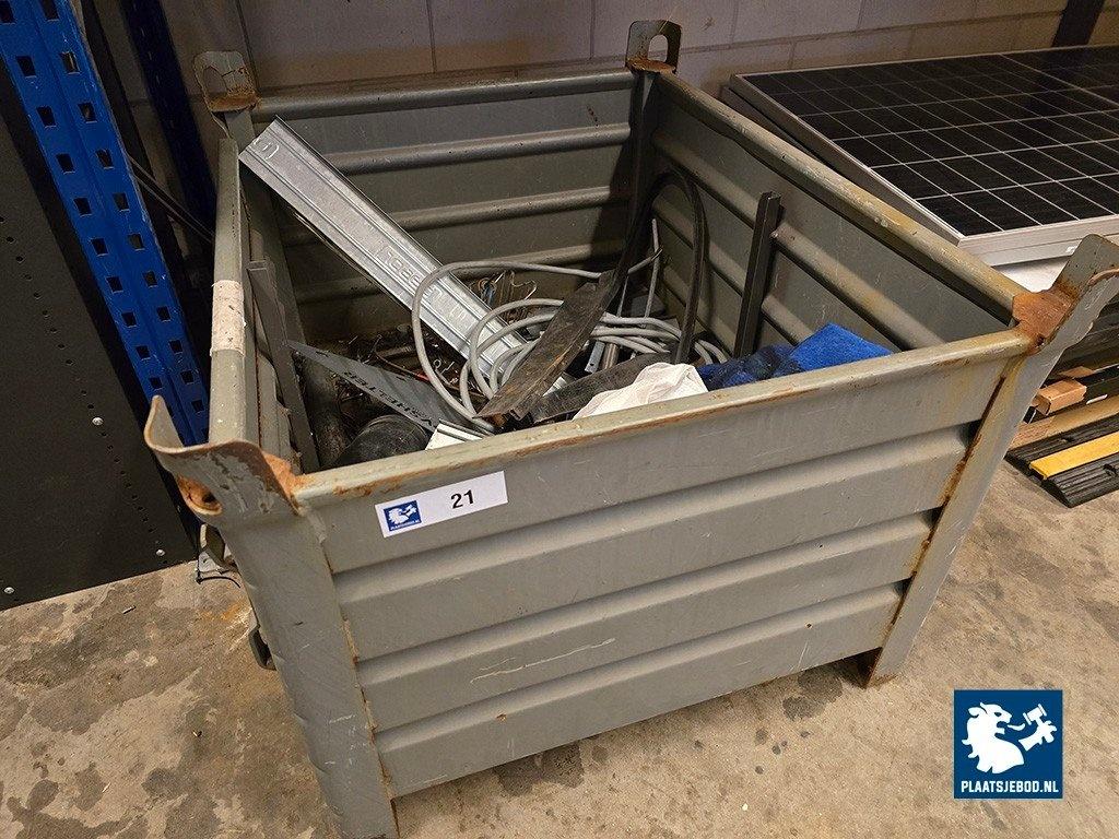 1 x Stapelbare kist met oud ijzer