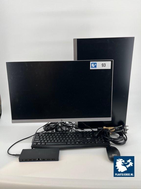 Lot 321-093: 2 x HP 24 inch monitor, dockingstation, toetsenbord, muis