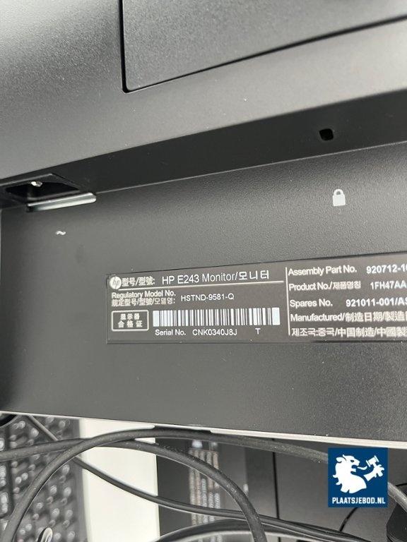 2 x HP 24 inch monitor, type E243, kantelbaar, HP-USB-C dockingstation, met toetsenbord, bedrade muis, netsnoeren.