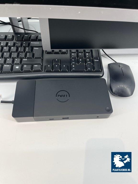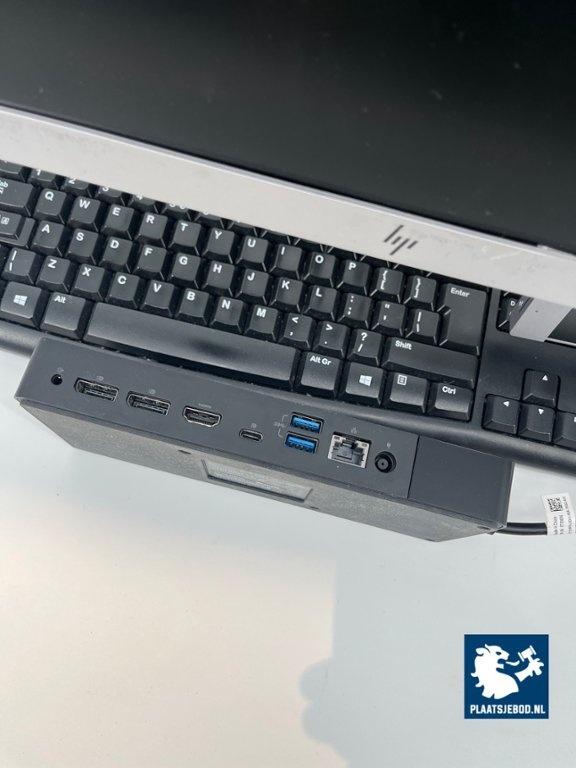 2 x HP 24 inch monitor, type E243, kantelbaar, 1 voet beschadigd, DELL dockingstation, met toetsenbord, bedrade muis, netsnoeren.