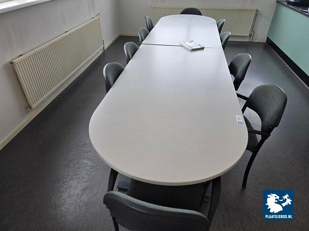 2 x Kantinetafel ca. 200 x 100 cm met 10 x gestoffeerde stoelen met armleuningen