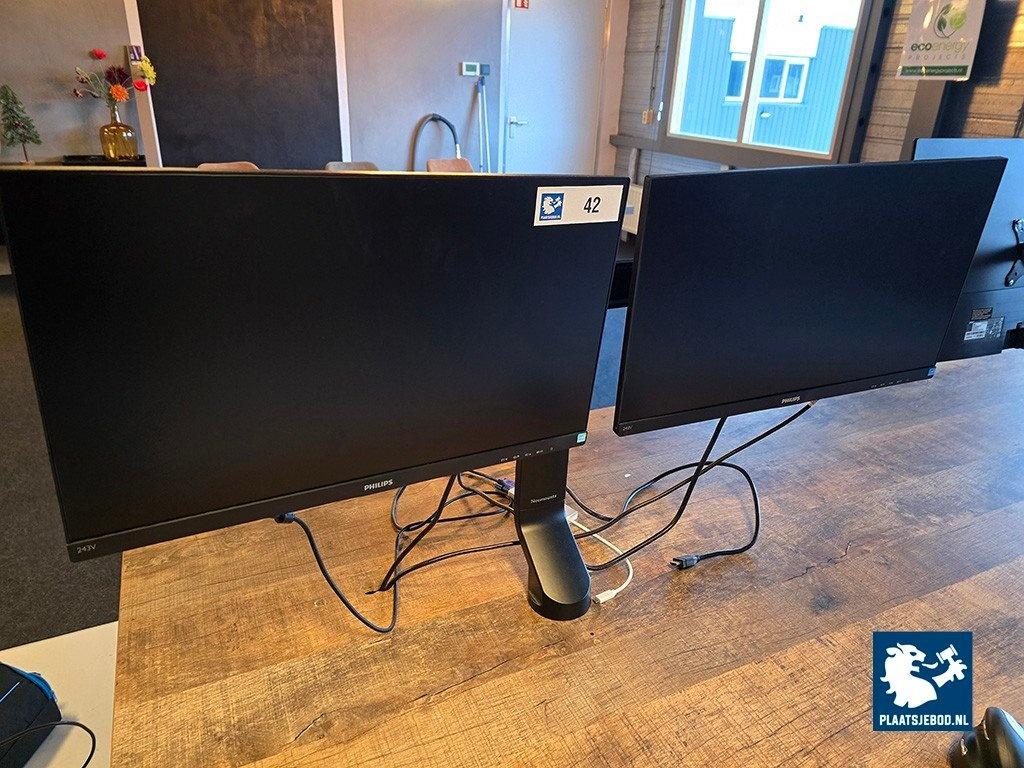 Lot 306-042: 2 x Philips 24 inch met Neomounts dubbele monitorarm