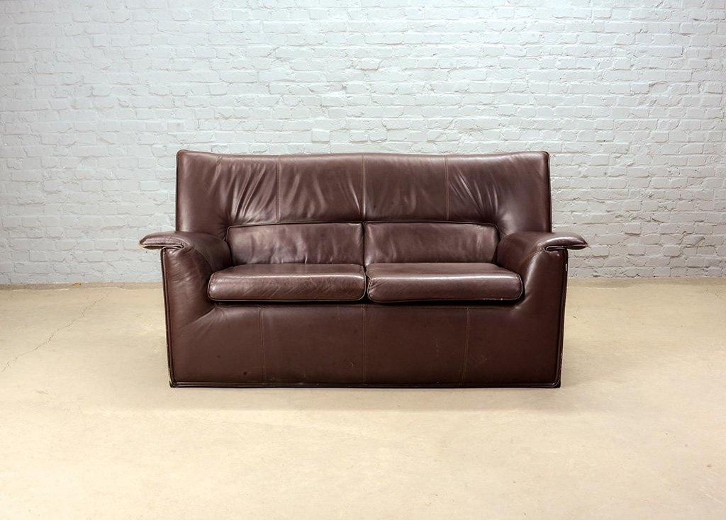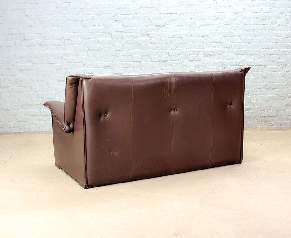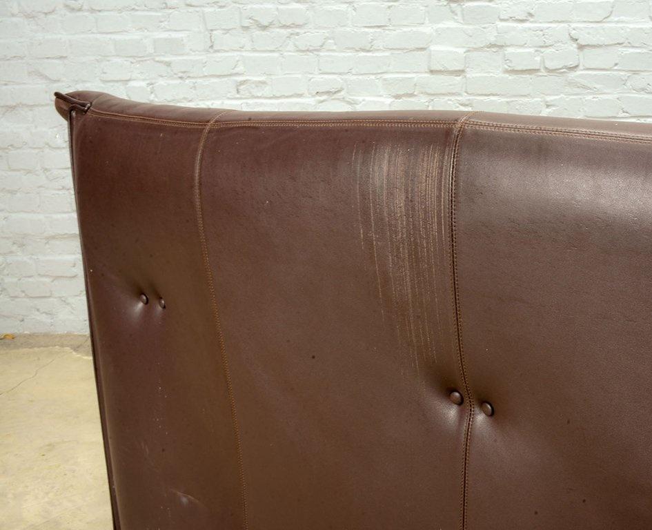 Lot 305-104-SS078-D5a: Afra and Tobia Scarpa Design Mid-Century Italian Design Chocolate Brown Leather Two Seat Sofa, Model Lauriana for B&B Italia. Italy, 1970s.