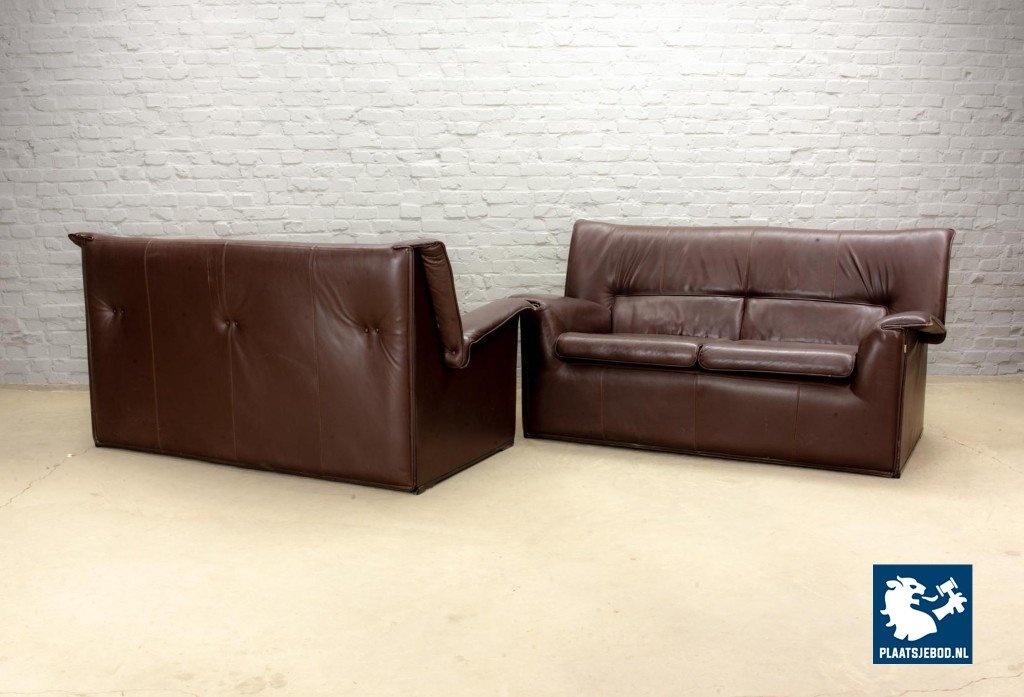 Lot 311-263-SS078-2-D5: Afra and Tobia Scarpa Design Mid-Century Italian Design Chocolate Brown Leather Two Seat Sofa, Model Lauriana for B&B Italia. Italy, 1970s.