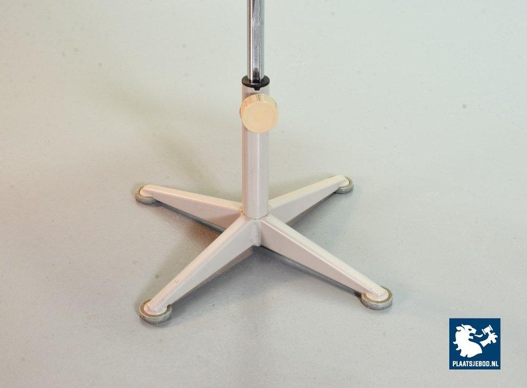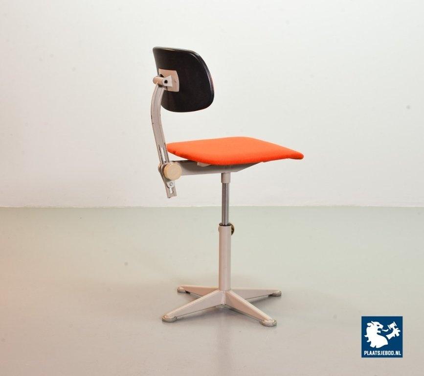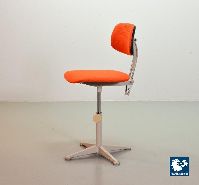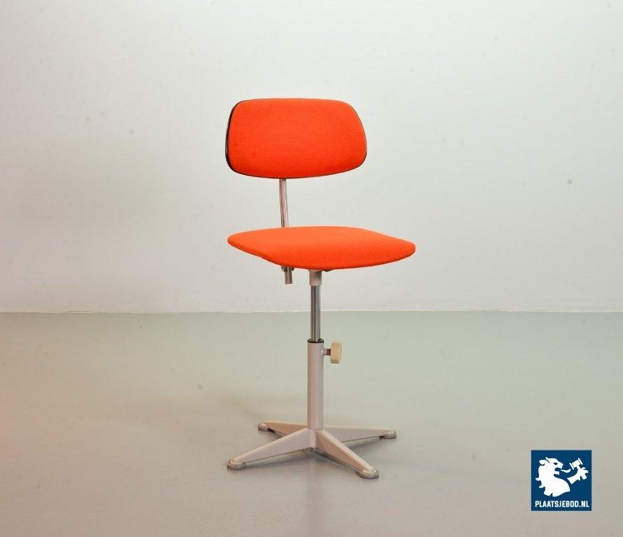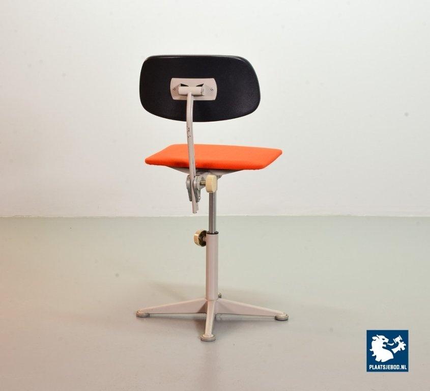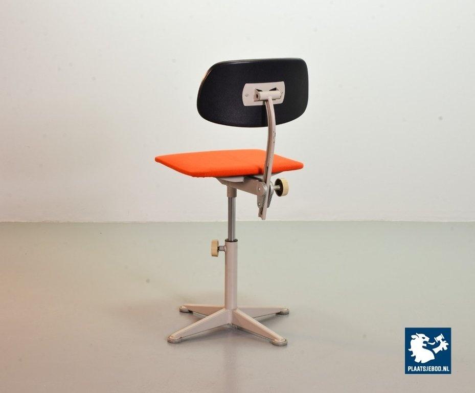 Authentic Ahrend De Cirkel Industrial Grey Steel Desk Chair from the 1950s. The grey frame is upholstered with an orange quality fabric. The height from this Dutch Design chair is adjustable. This chair is in a good vintage condition with some minor wear consistent its age and use. A nice piece of furniture for lovers of Dutch Design Industrial originals. Dimensions: Height: 90 cm, Width: 40 cm, Depth: 44 cm, Seat height: 56 cm, Quantity: 1