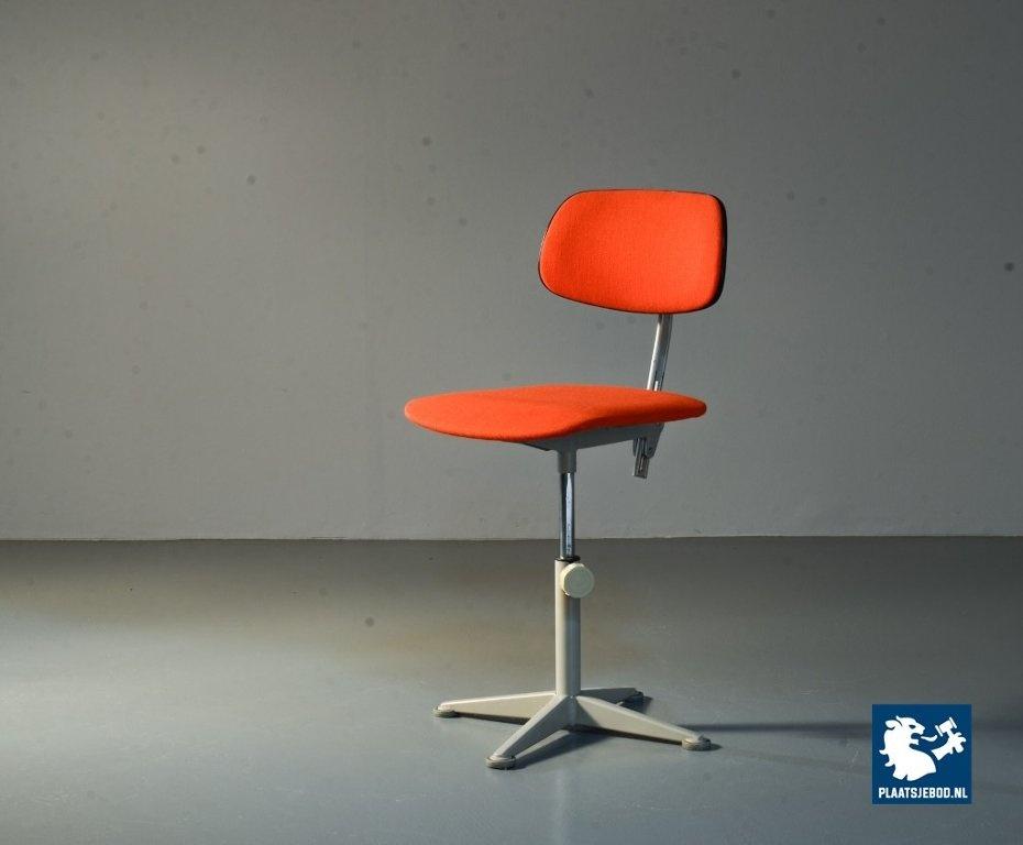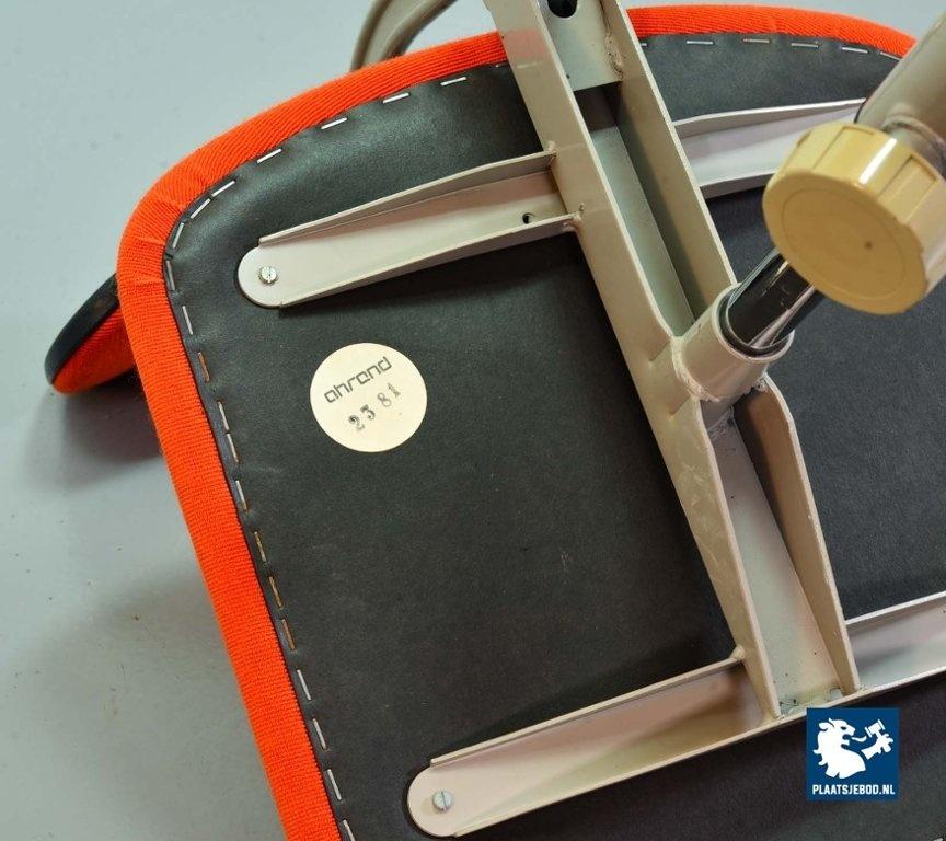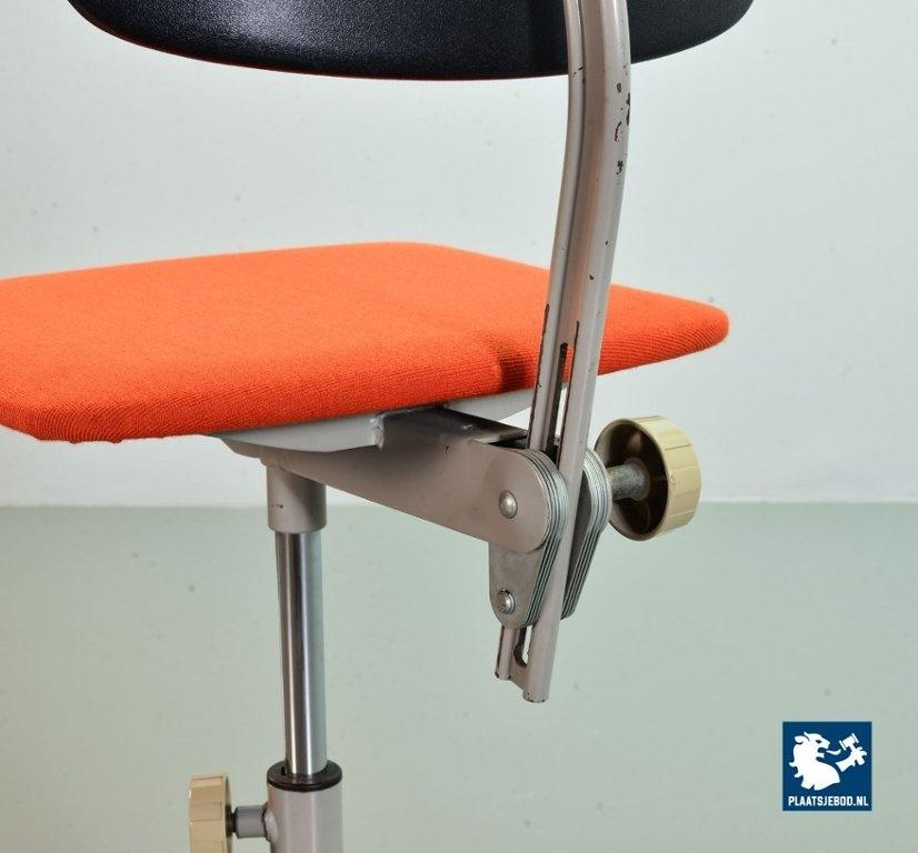 Lot 311-209-CH192: Ahrend De Cirkel Industrial Design Desk Chair with Orange Fabric Upholstery on a Grey Steel Frame. The Netherlands, 1950s.
