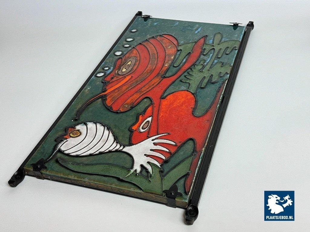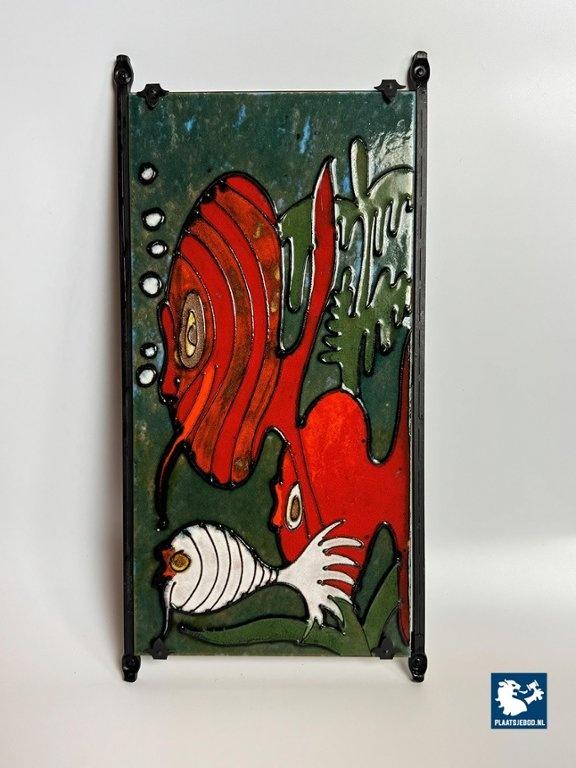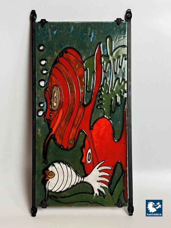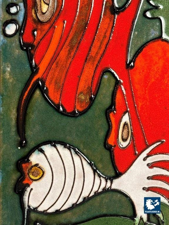 Lot 305-076-DA-046-B3: Big Artisan Made Ceramic Wall Tile Decoration with Cheerful Fish Design by Heibi Keramik, Germany 1960s.