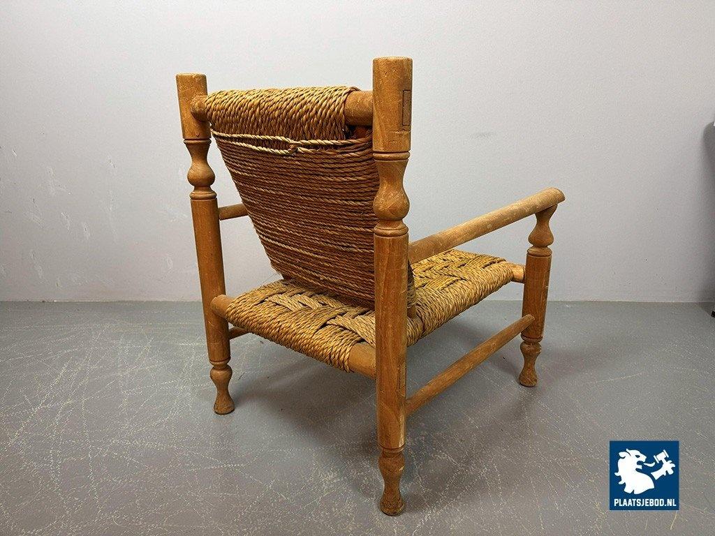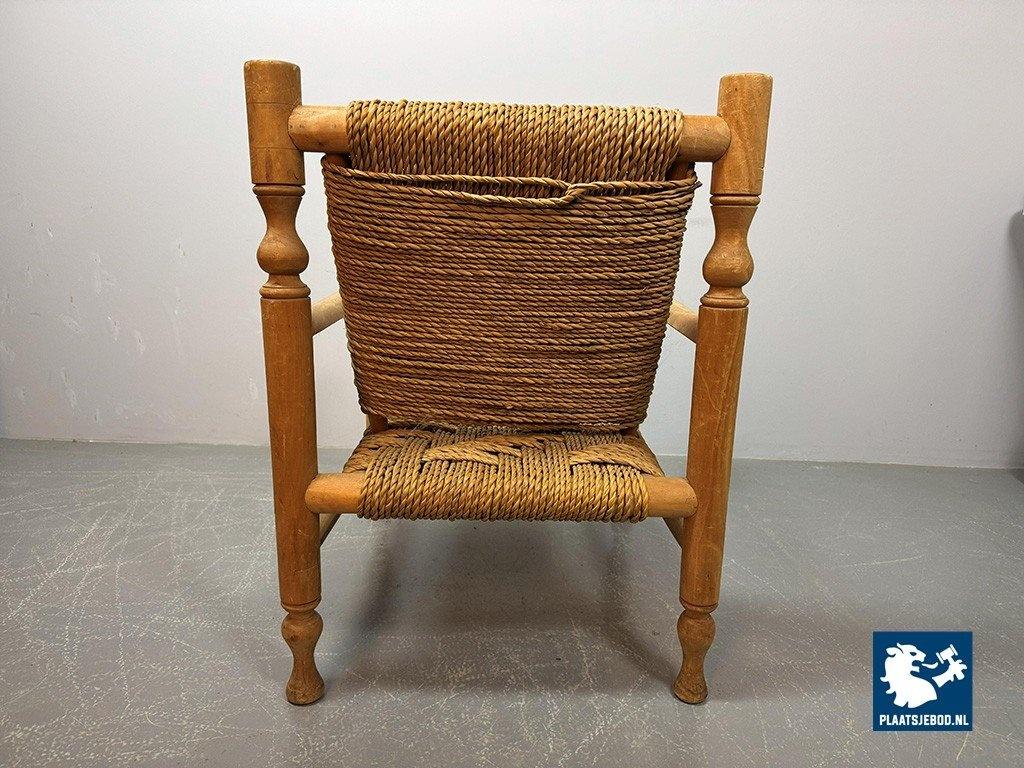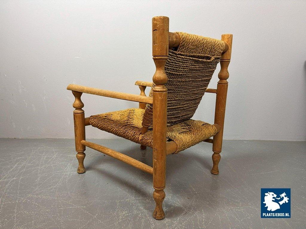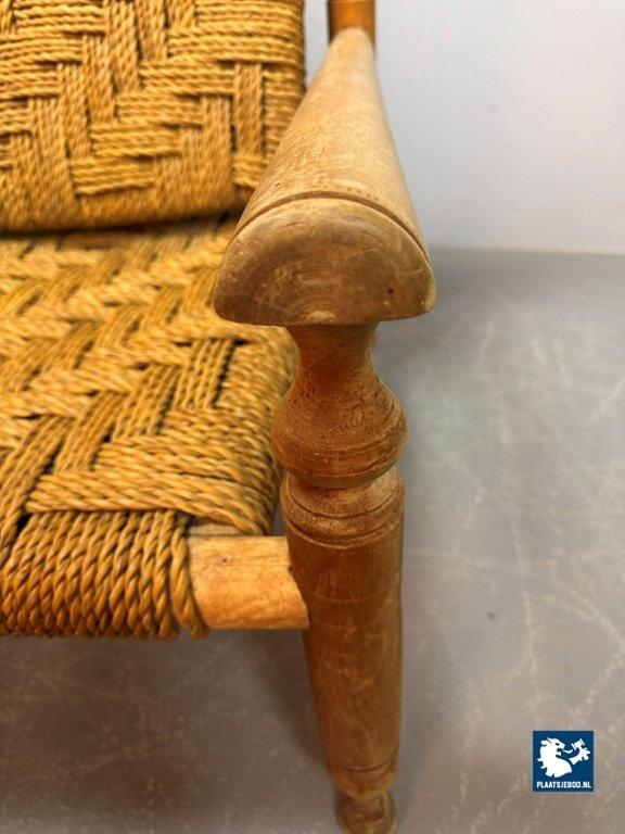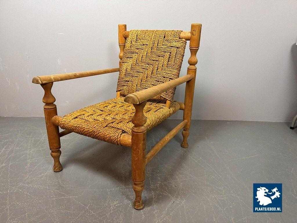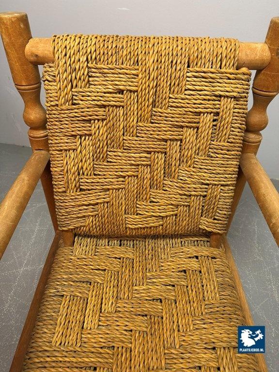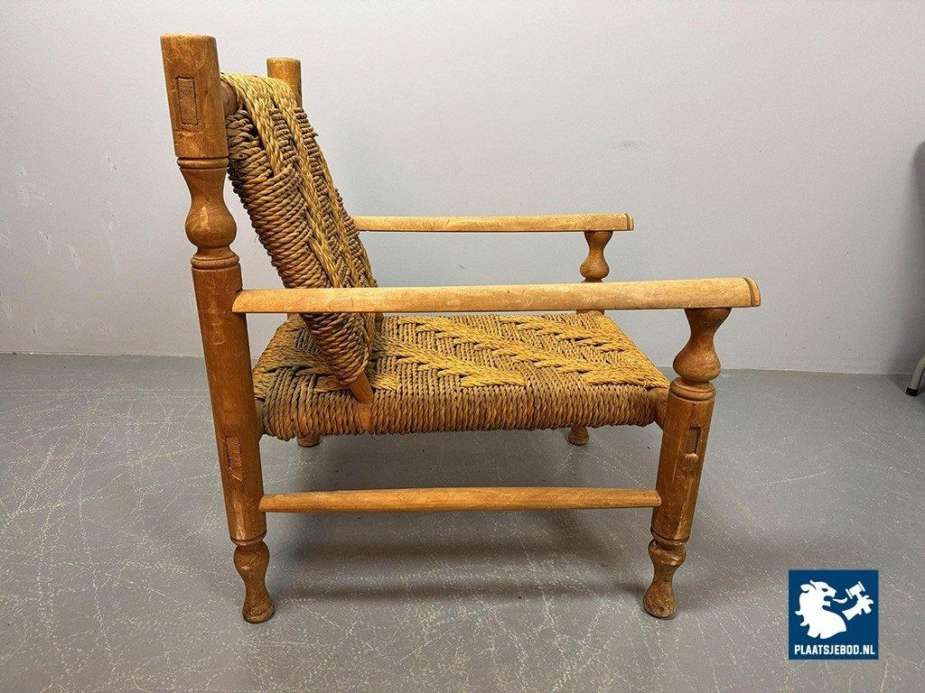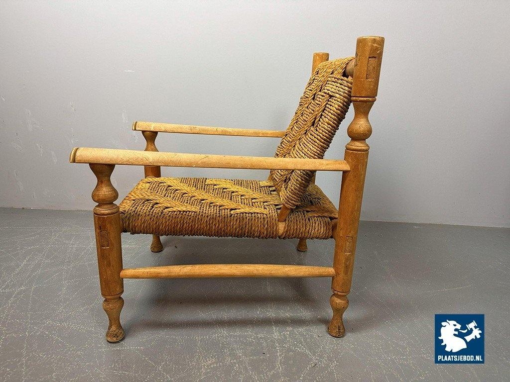 Lot 305-064-CH334-A2: Charlotte Perriand Style Beech Wood Easy Chair with Sisal Rope Wickerwork, 1960s.