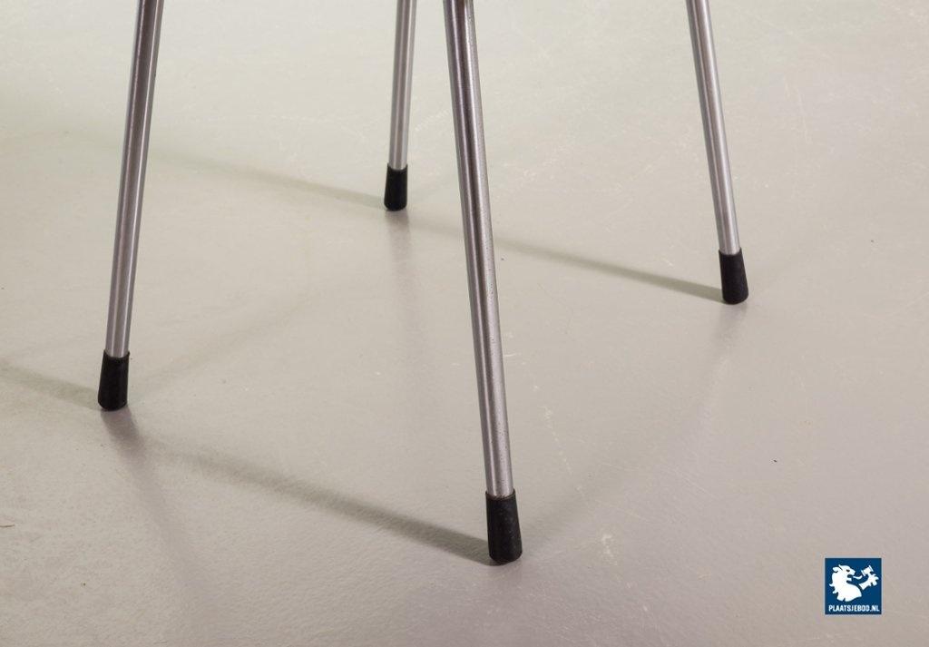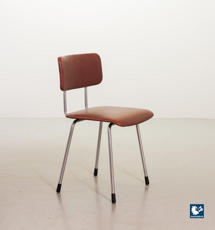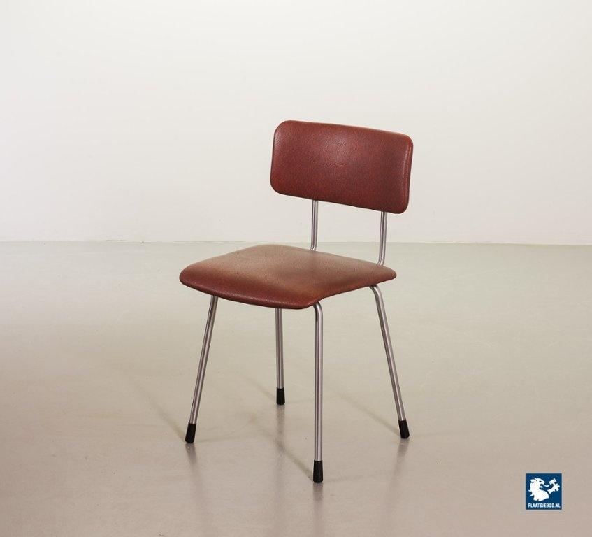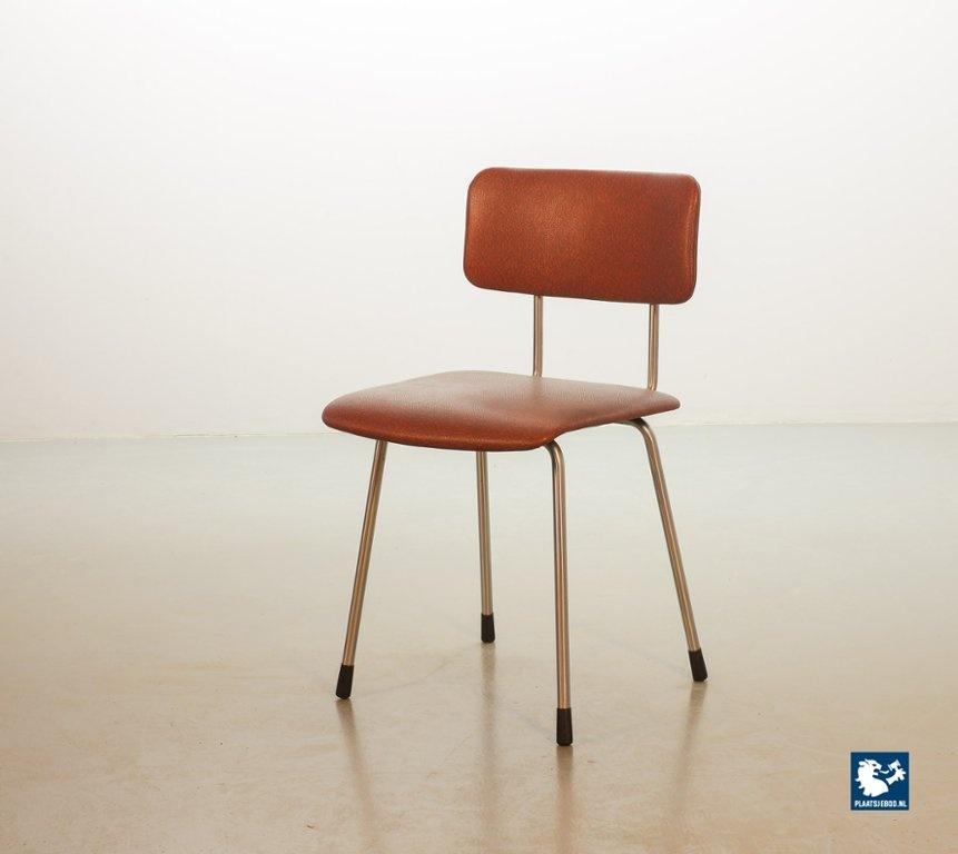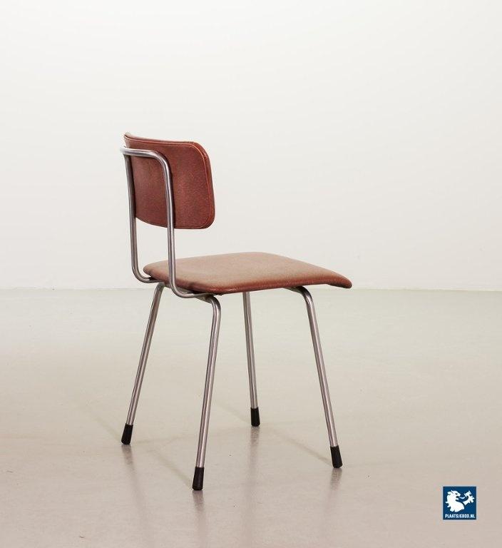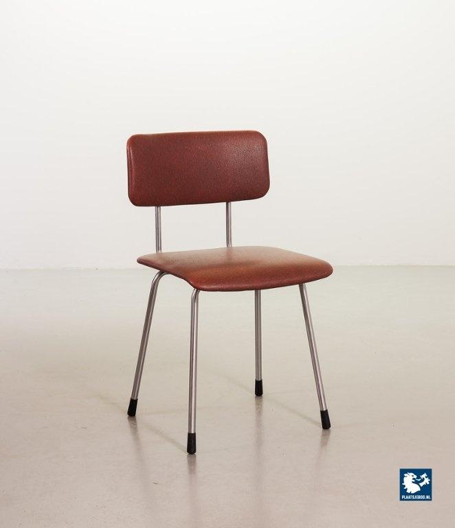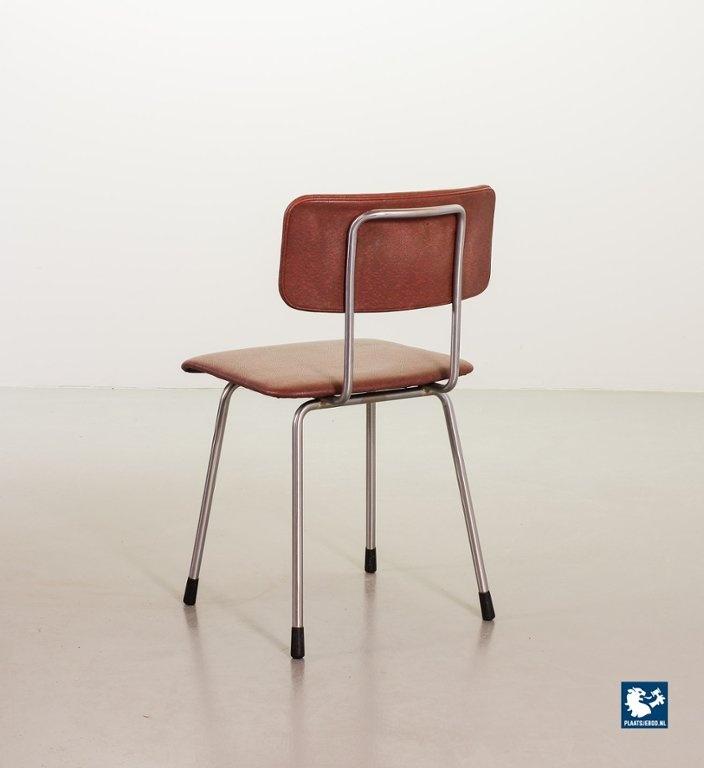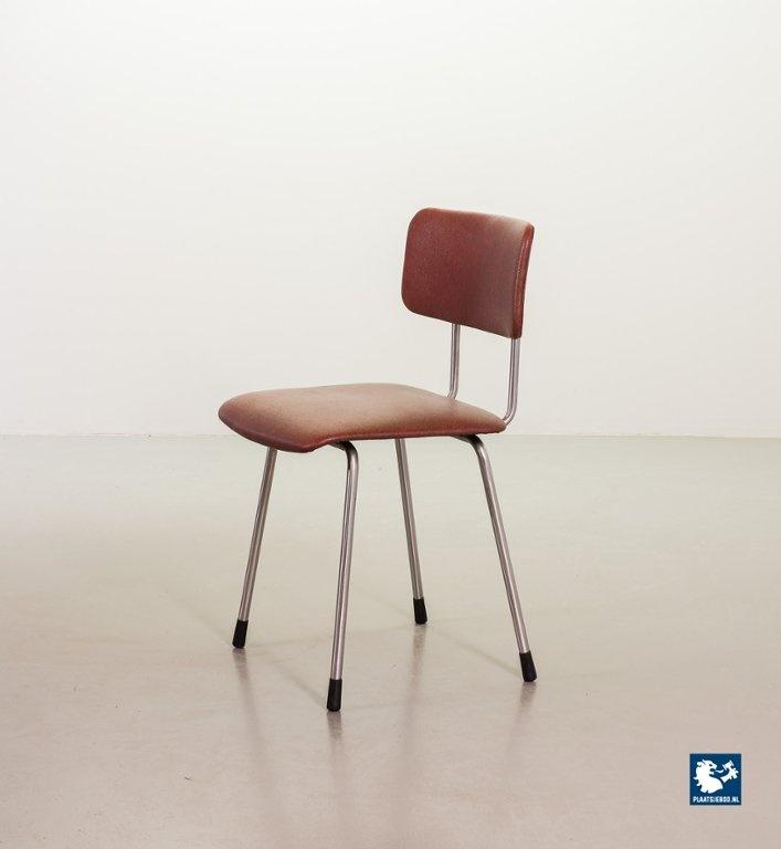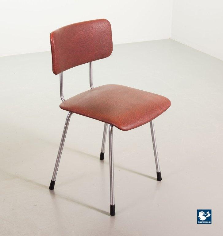 Mid-century Dutch Design Gispen desk / side / dining chair model 1262, manufactured in the 1960’s. This modernistic stone red leatherette chair is designed by the famous Dutch designer André Cordemeyer. It features a polished steel tube frame. The chair is in a very well preserved vintage condition, with minor wear consistent its age and use. Dimensions: Height 82 Width 45 Depth 52 cm.
