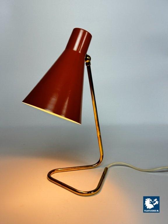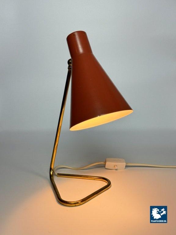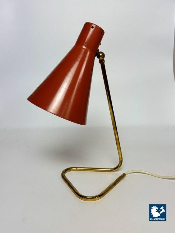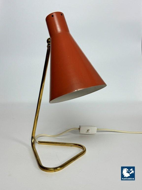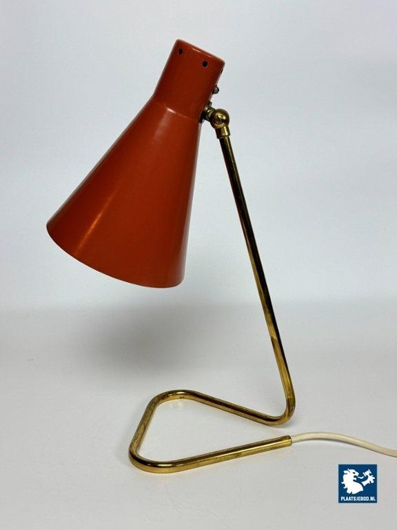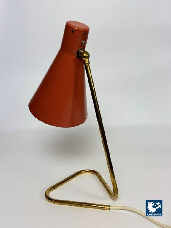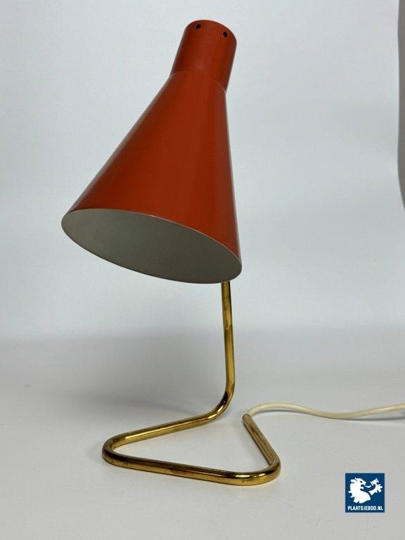 This vintage Italian bedside/table lamp was designed by Giuseppe Ostuni for O-Luce in the 1950s, and stands as a beautiful example of mid-century modern lighting. Featuring a brass frame and an orange lacquered metal shade, the lamp combines functional adjustable design with refined elegance. A classic piece from one of Italy’s most influential lighting designers, perfect for collectors and fans of Italian modern design. Total dimensions: Height: 38 cm, Width: 17 cm, Depth: 26 cm Shade: Length 21,5 Diameter 15 cm
