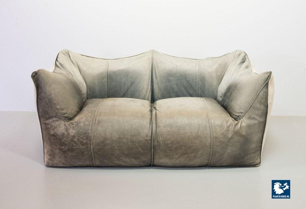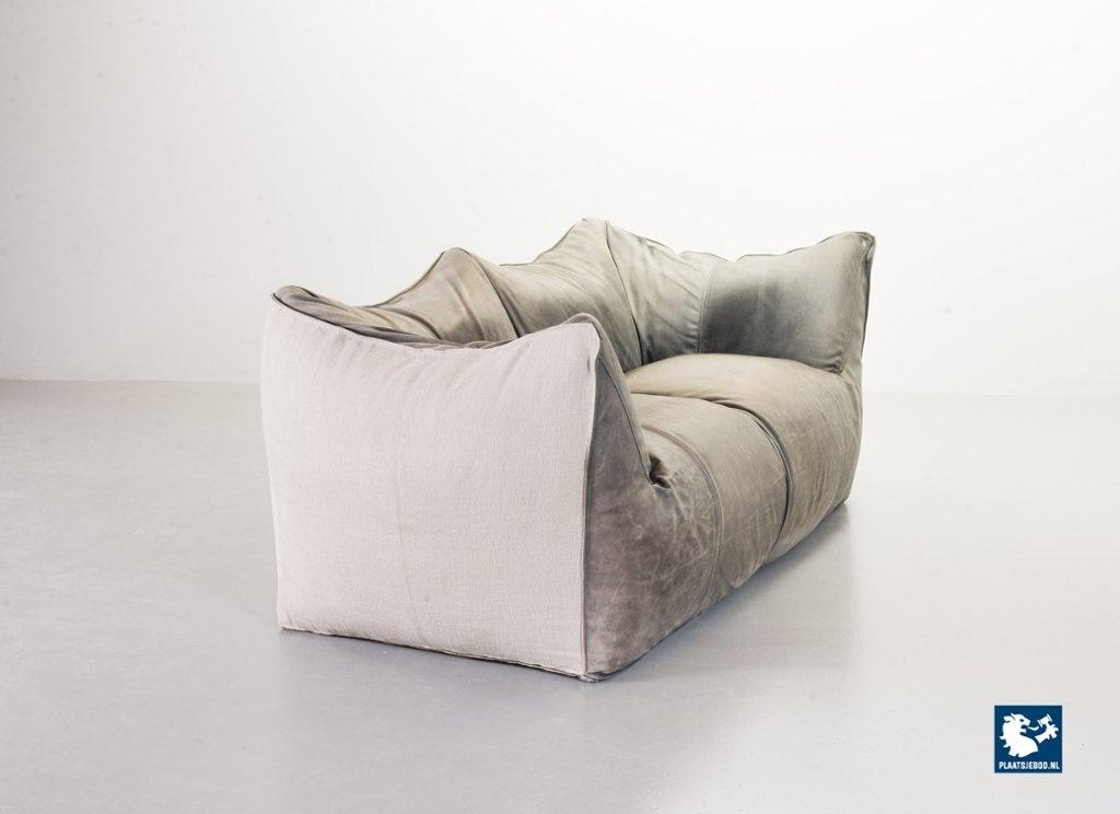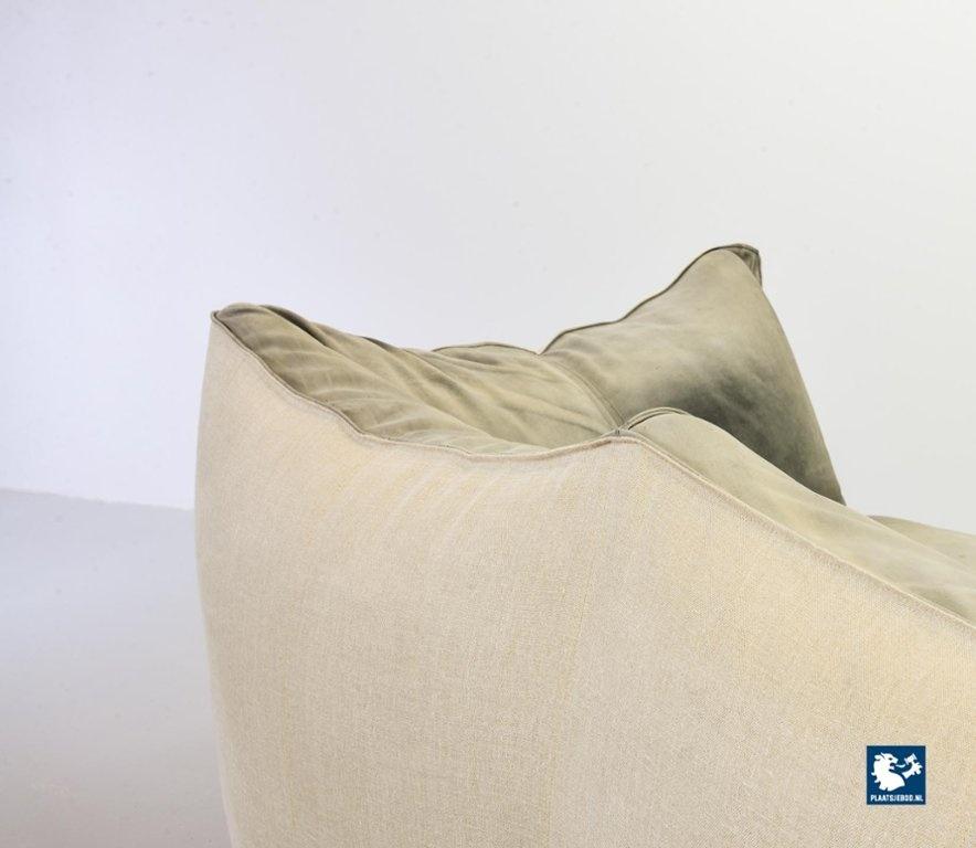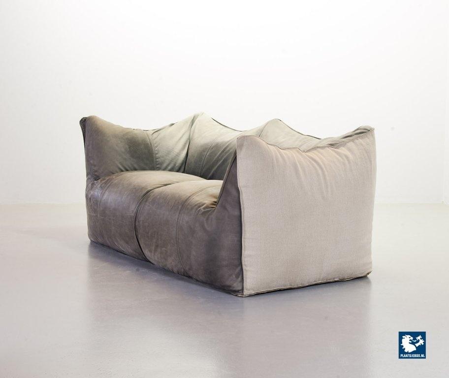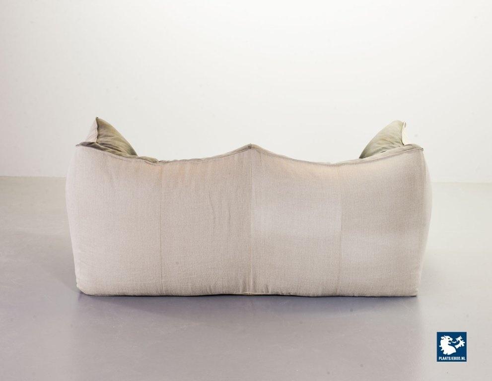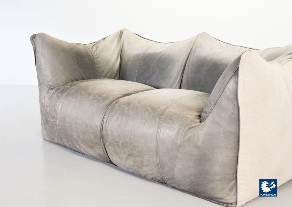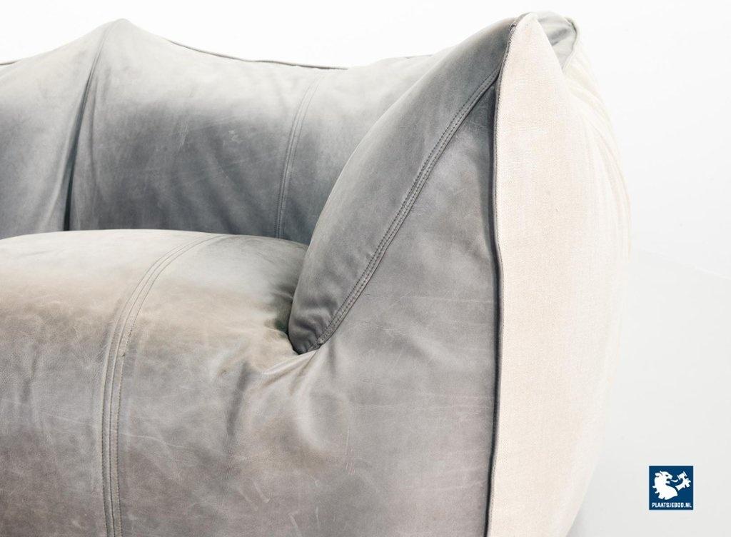A real design classic, this beautiful authentic 2-seat sofa Le Bambole, designed by Mario Bellini for C&B Italia in the 1970s. The sofa has a grey leather upholstery on the front. The backside of the sofa has been recently professionally restored and reupholstered. The original soft grey leather shows a very nice patine and combines tastefully with the cotton canvas sandy beige fabric upholstery on the back. The sofa is branded with a stamp of C&B Italia on the bottom. Besides that, this mid-century design sofa offers a great seating comfort and is a real standalone eye-catcher.The sofa is in a very good vintage condition, with some wear consistent its age and use. Dimensions: Height: 74 cm / 29,1", Width: 165 cm / 65'', Depth: 80 cm / 31,5'', Seating Height: 44 cm / 17,3'', Seating Width: 105 cm / 41,3'', Seating Depth: 55 cm / 19,7''