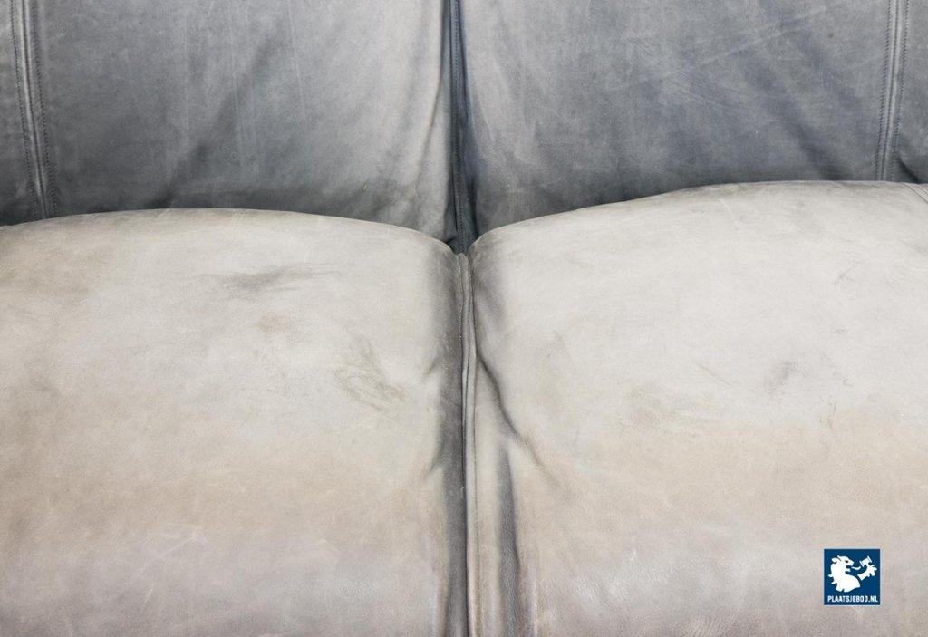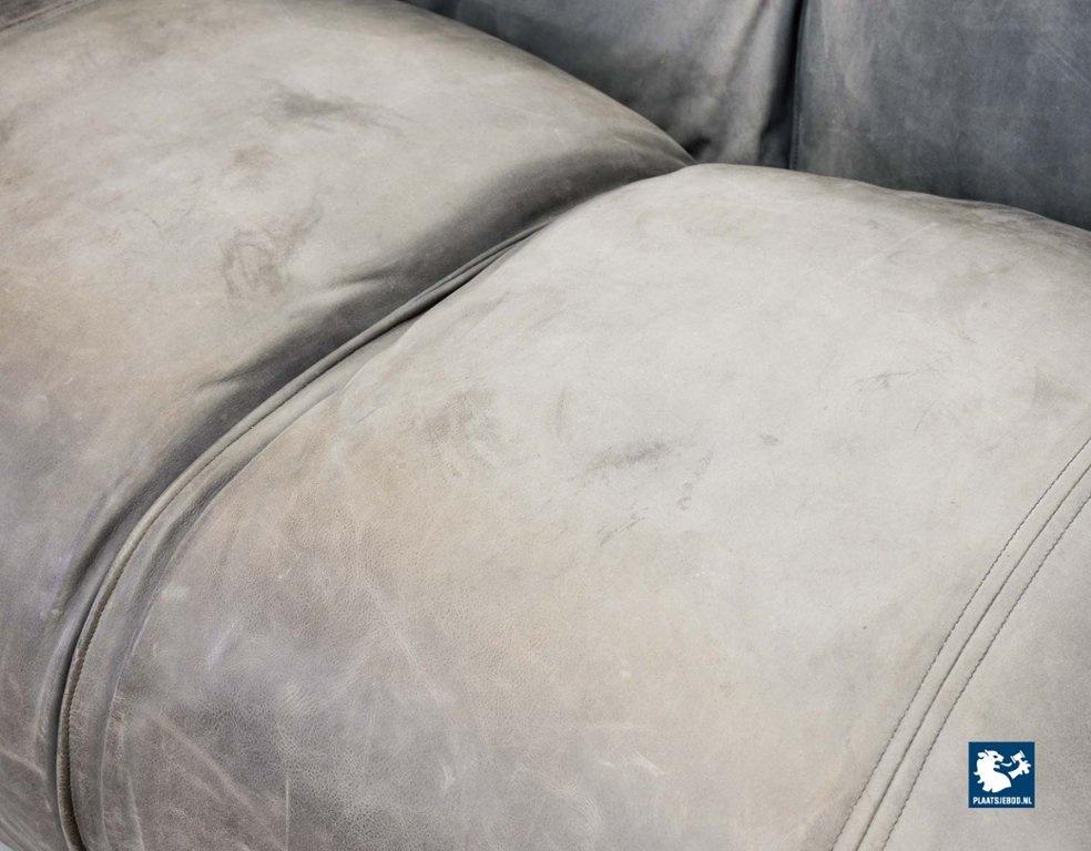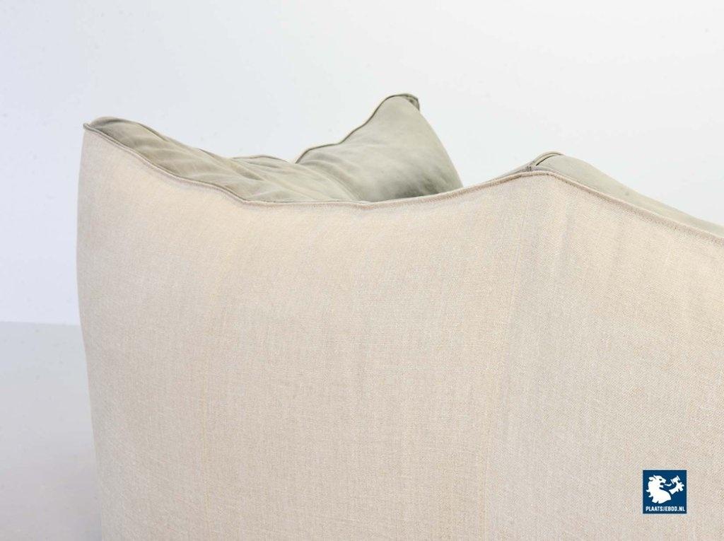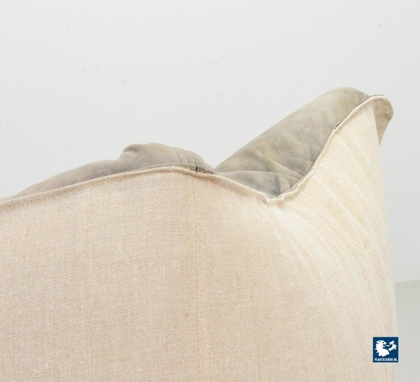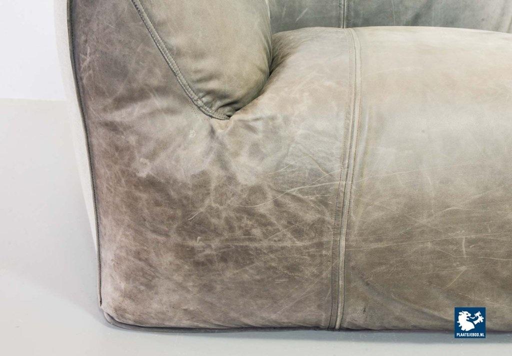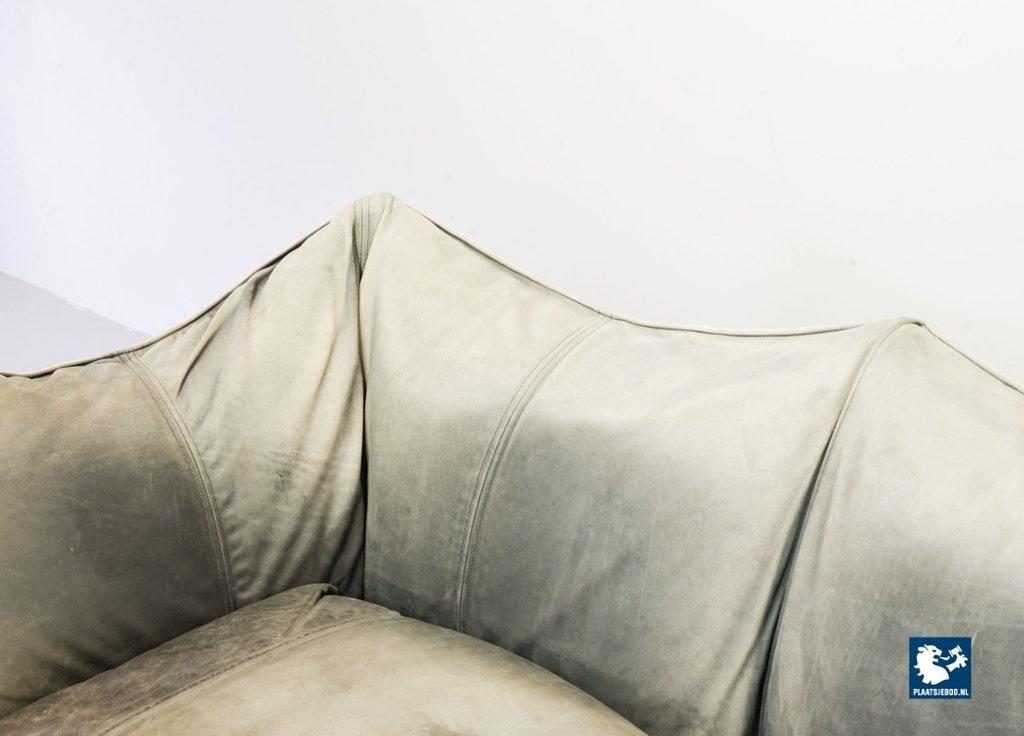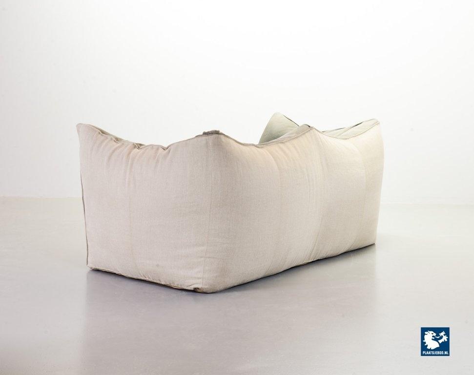 A real design classic, this beautiful authentic 2-seat sofa Le Bambole, designed by Mario Bellini for C&B Italia in the 1970s. The sofa has a grey leather upholstery on the front. The backside of the sofa has been recently professionally restored and reupholstered. The original soft grey leather shows a very nice patine and combines tastefully with the cotton canvas sandy beige fabric upholstery on the back. The sofa is branded with a stamp of C&B Italia on the bottom. Besides that, this mid-century design sofa offers a great seating comfort and is a real standalone eye-catcher.The sofa is in a very good vintage condition, with some wear consistent its age and use. Dimensions: Height: 74 cm / 29,1", Width: 165 cm / 65'', Depth: 80 cm / 31,5'', Seating Height: 44 cm / 17,3'', Seating Width: 105 cm / 41,3'', Seating Depth: 55 cm / 19,7''