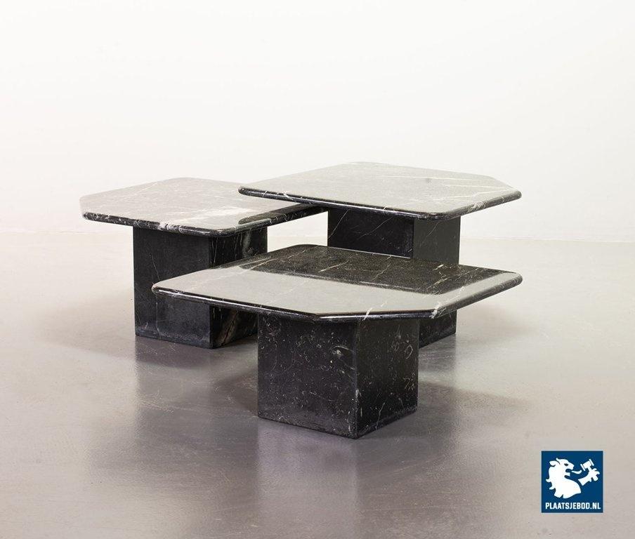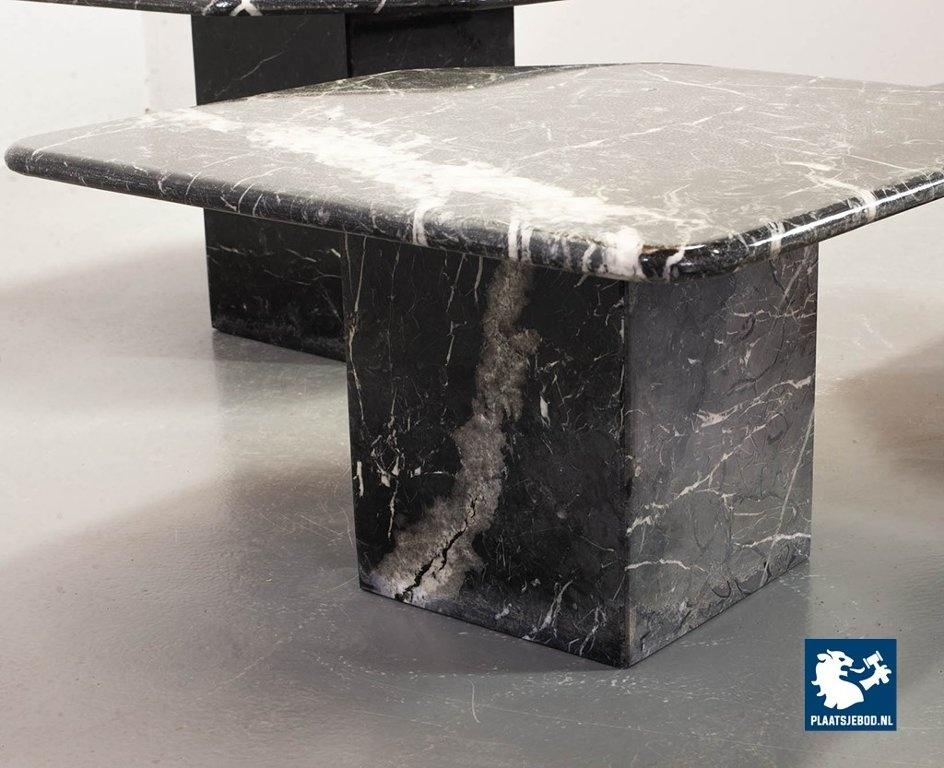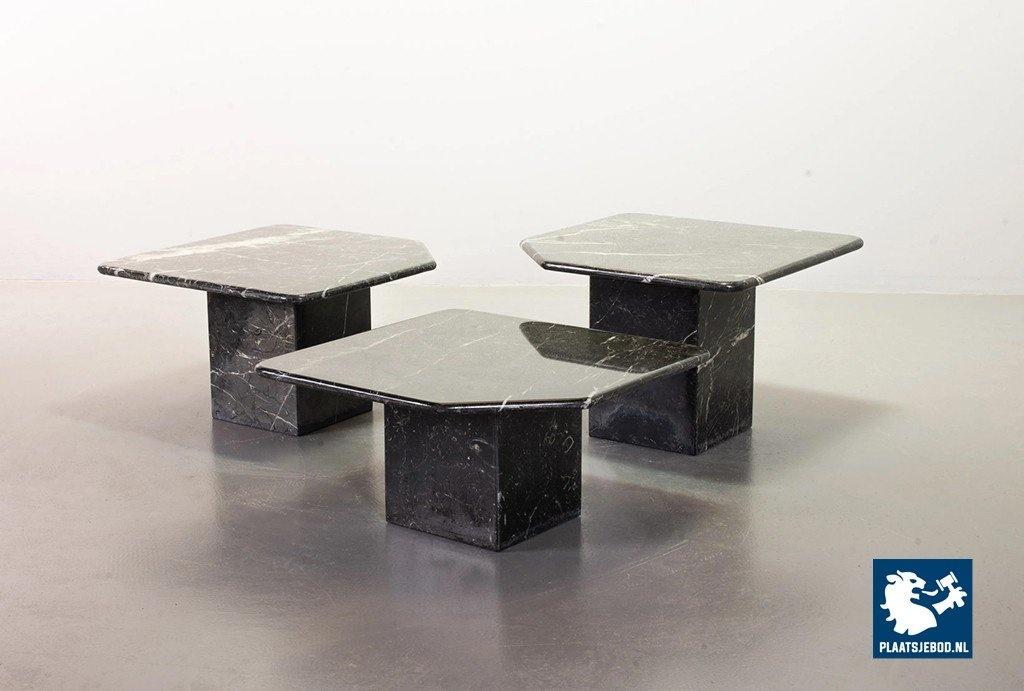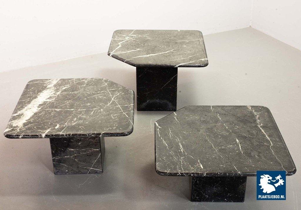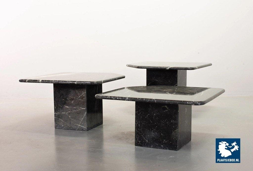 Set of three black ‘Nero Carrara’ marble side /