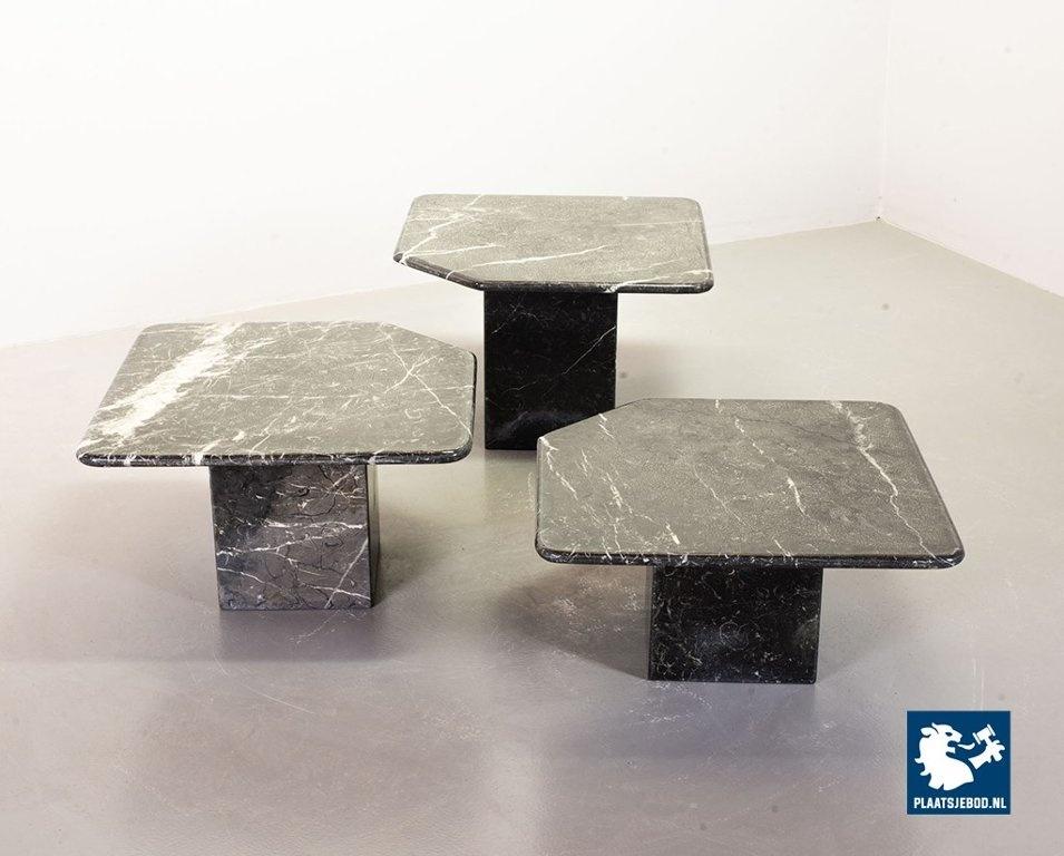 marble with white veins. This exclusive set of side tables is in a