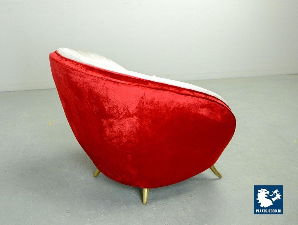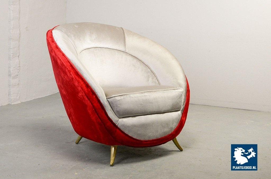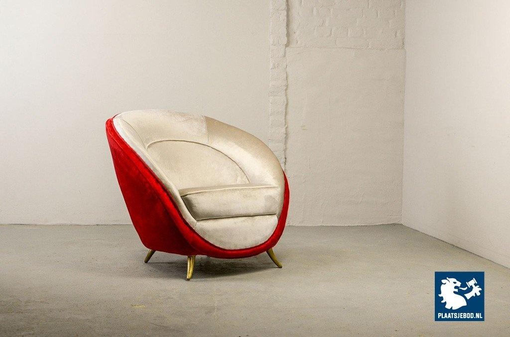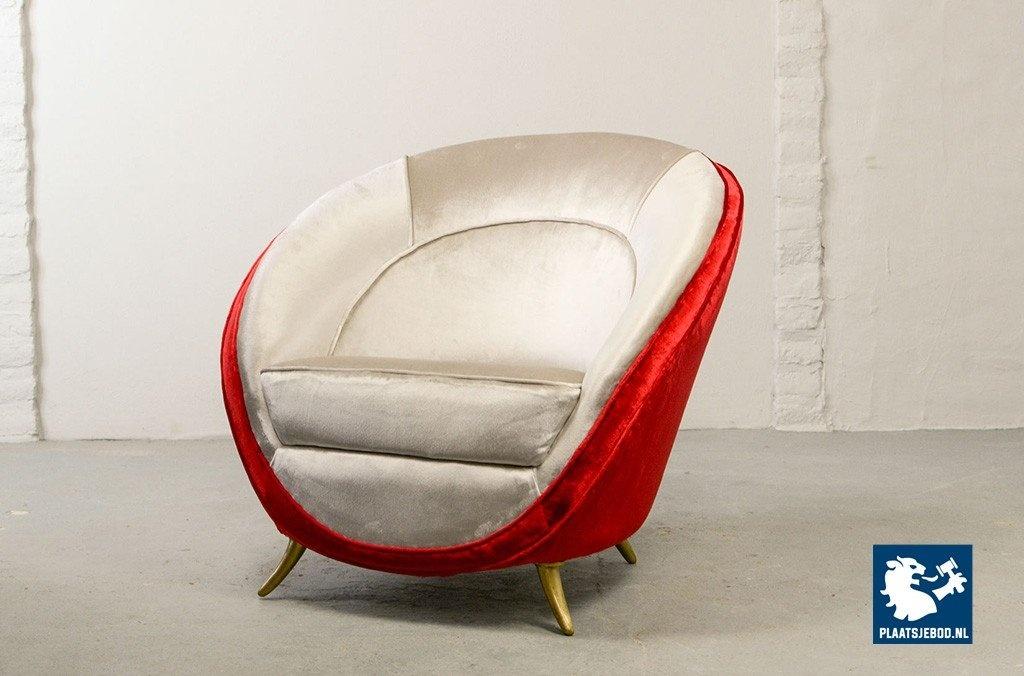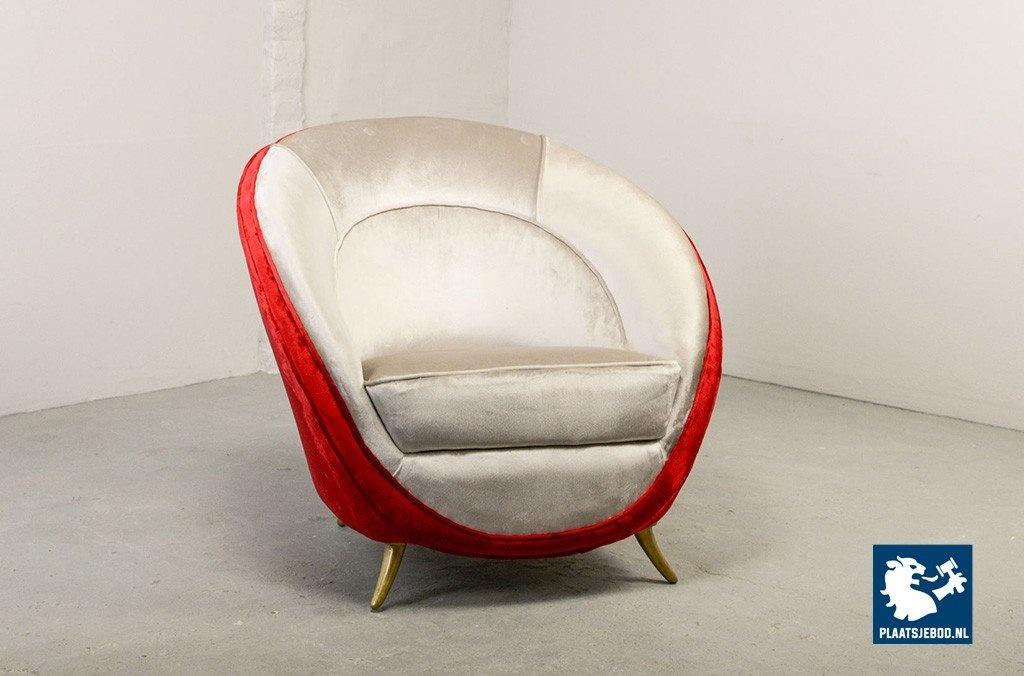 Lot 305-221-CH143-A3: Eye-Catching Guglielmo Veronesi Silver and Red Velvet Italian Lounge Chair for ISA Bergamo. Italy, 1970s.