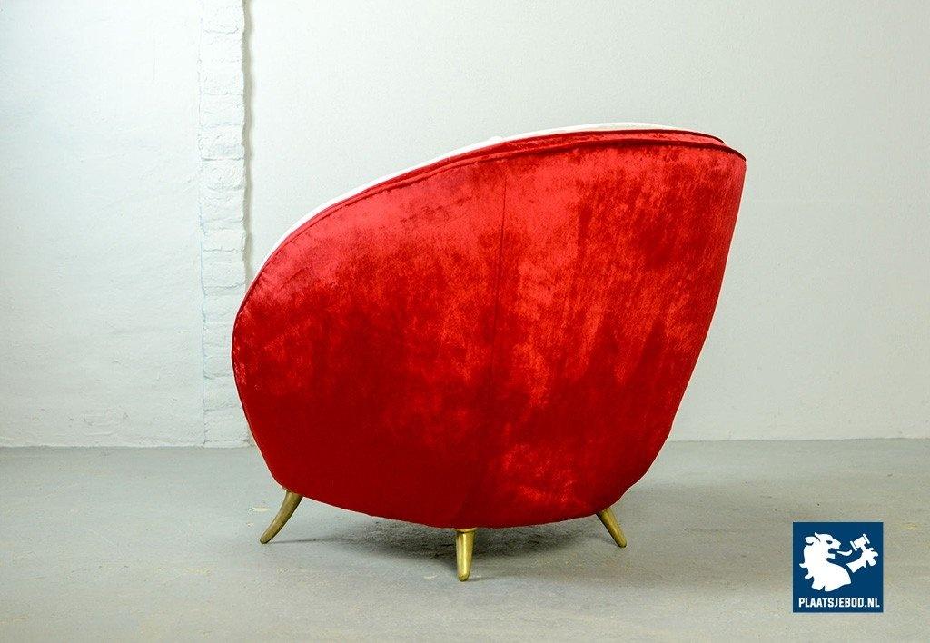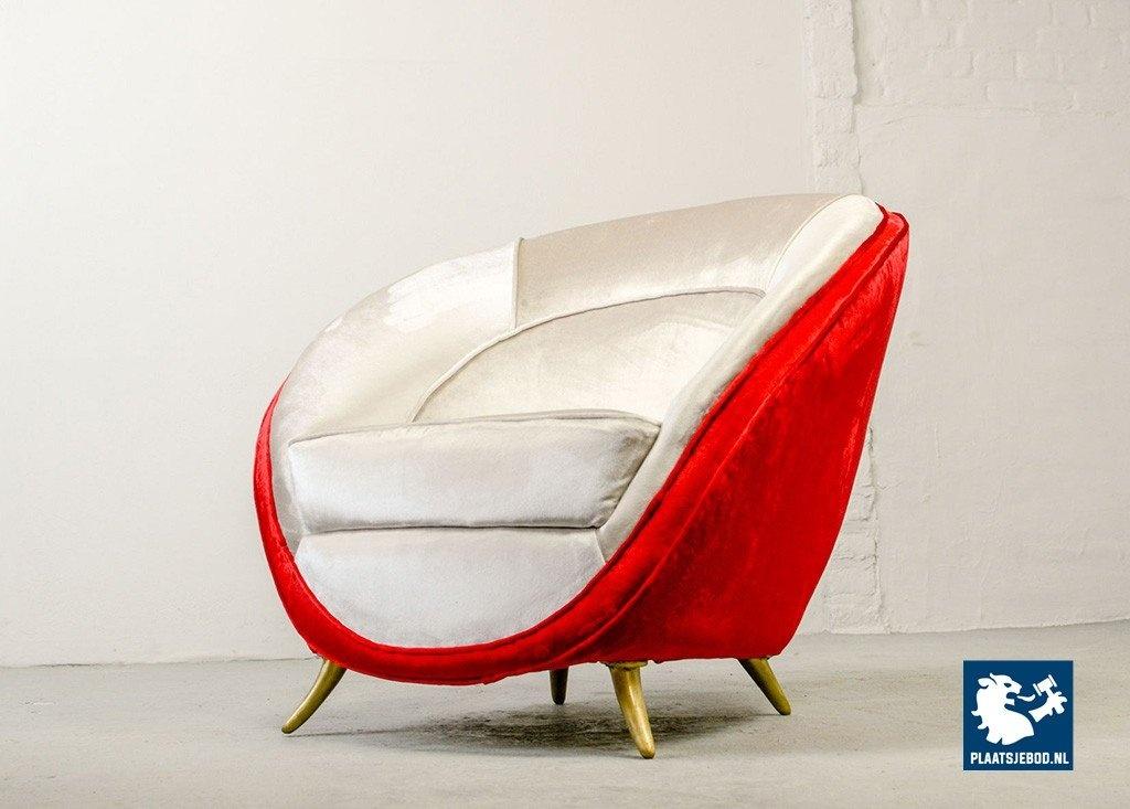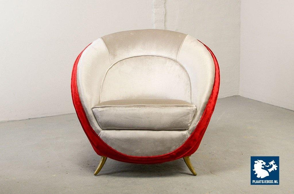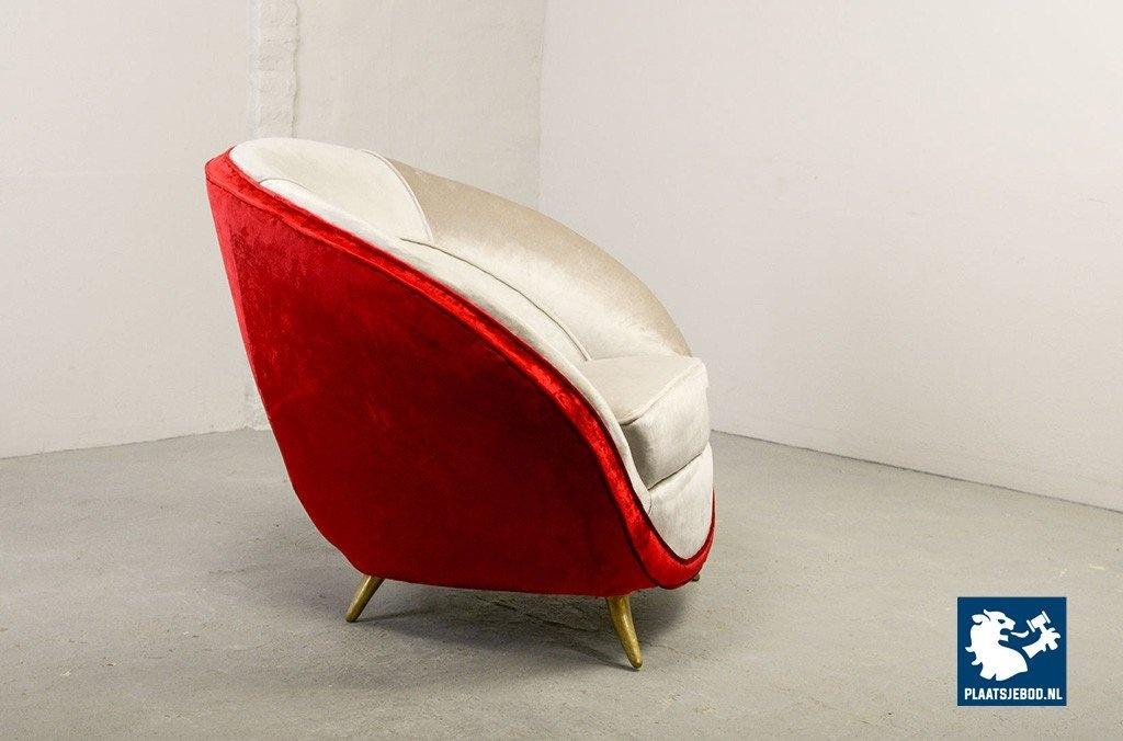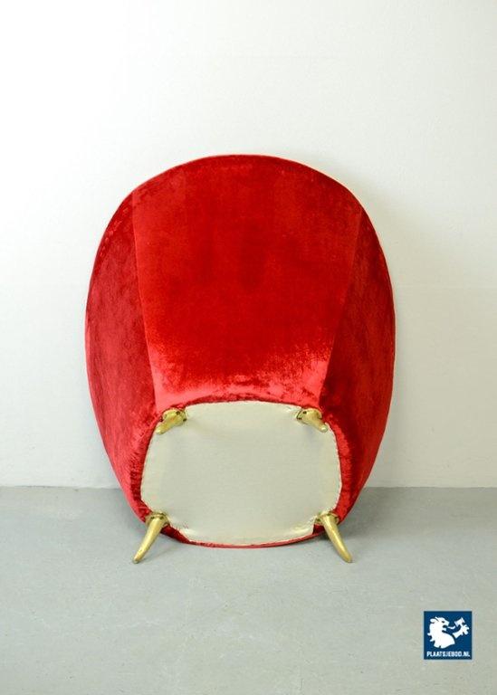 Lot 305-221-CH143-A3: Eye-Catching Guglielmo Veronesi Silver and Red Velvet Italian Lounge Chair for ISA Bergamo. Italy, 1970s.