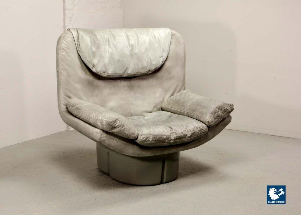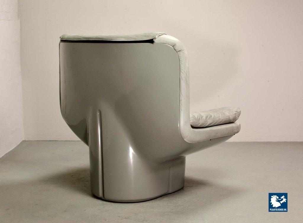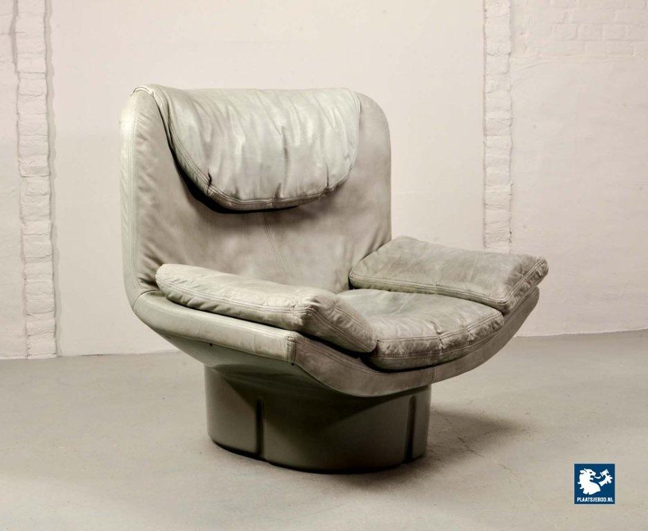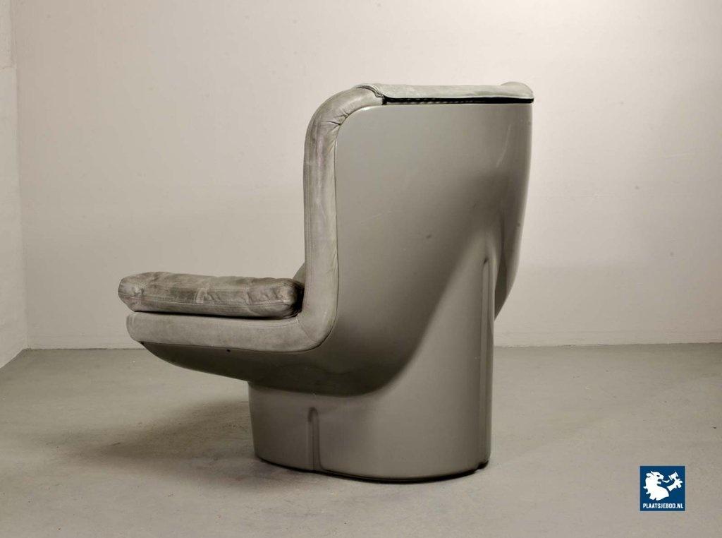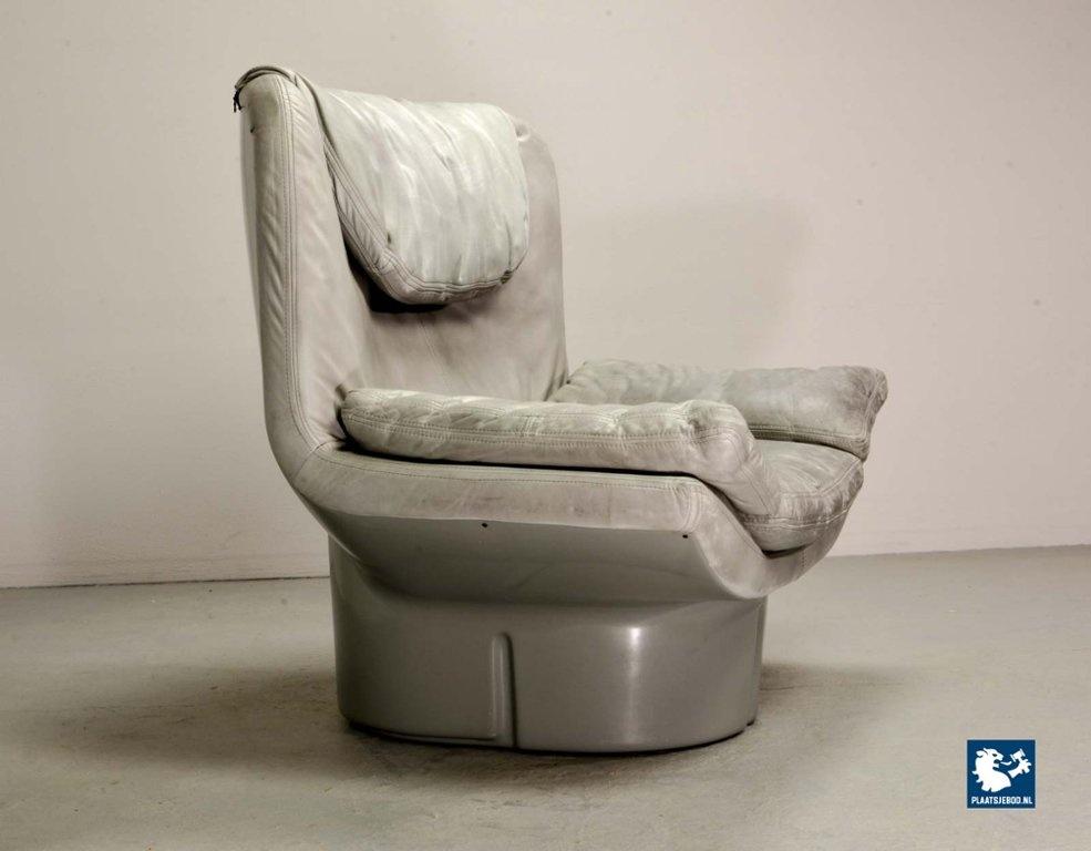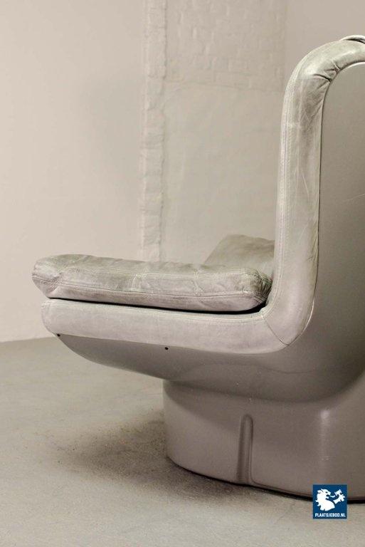 Eye-Catching Italian Design Grey Leather Lounge Chair Designed by by Ammanati & Vitello, Italy 1970s. Very comfortable Italian design leather lounge chair. This chair is designed in the 1970s, by Titiana Ammanati and Giampiero Vitelli for Comfort in Italy. The grey leather upholstery shows a beautiful patine and the sturdy polyester shell is a real eye-catching feature of this design. |Dimensions: Height: 102 cm, Width: 106 cm, Depth: 85 cm, Seat height: 40 cm, Quantity: 1