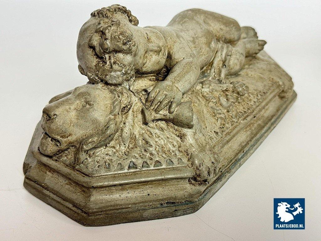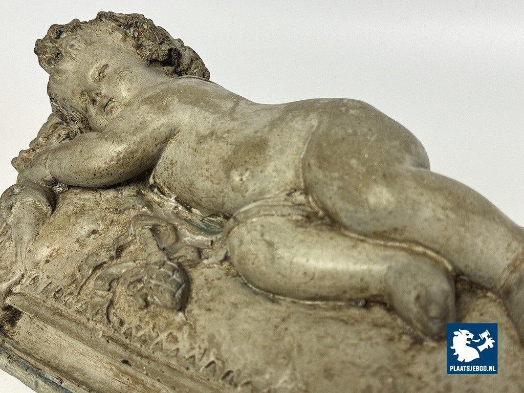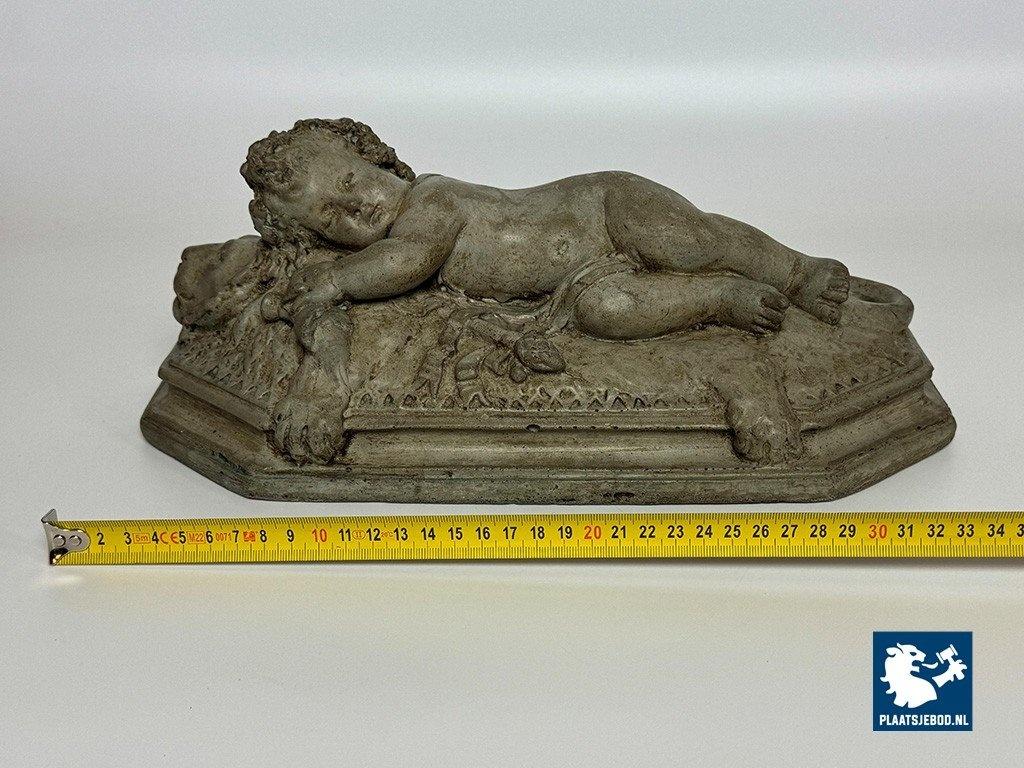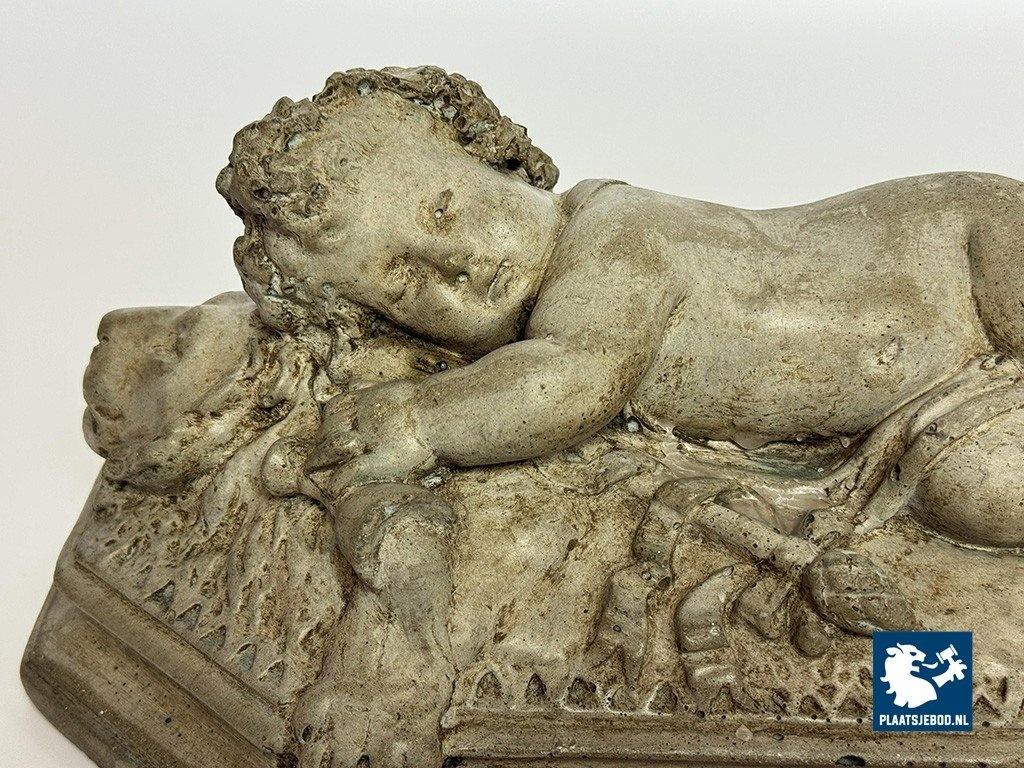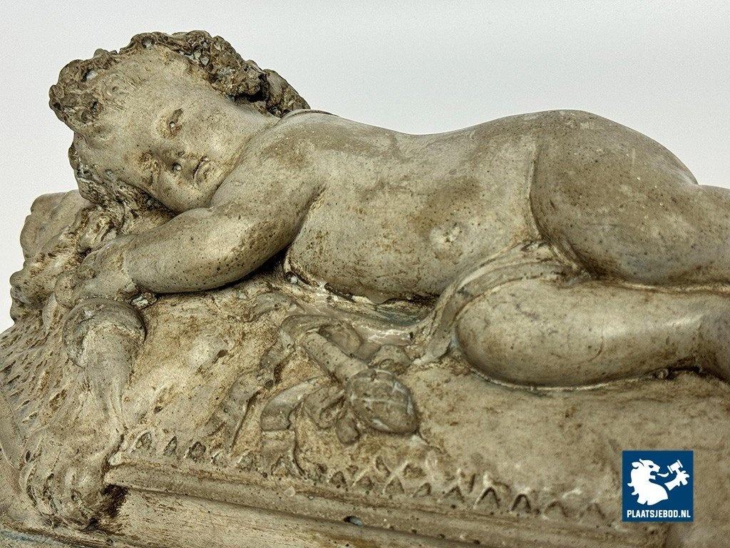 Lot 305-128-DA-053-S1: Finely Detailed Vintage Cast-Stone Sleeping Cherub on the Lion, 1950s-60s