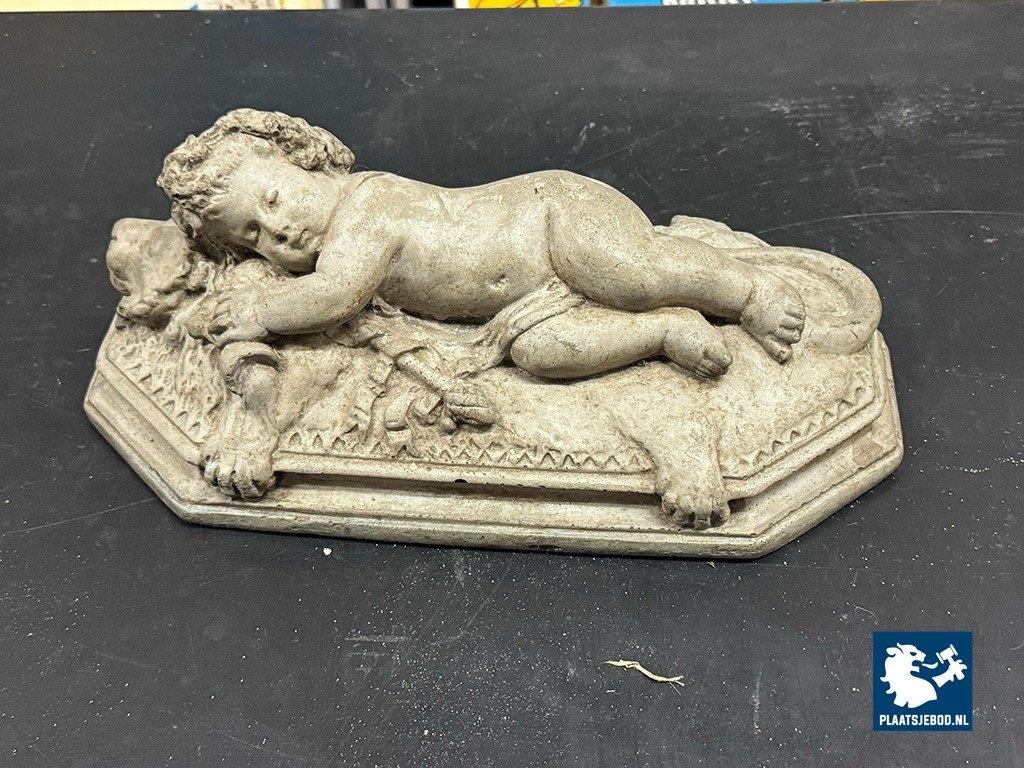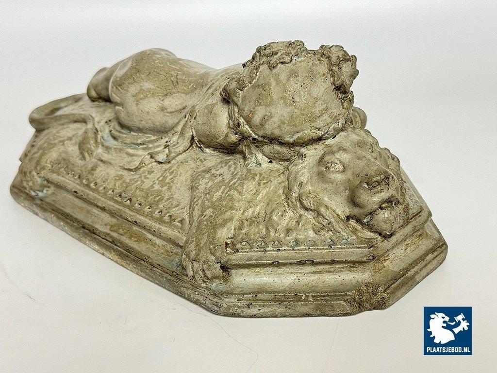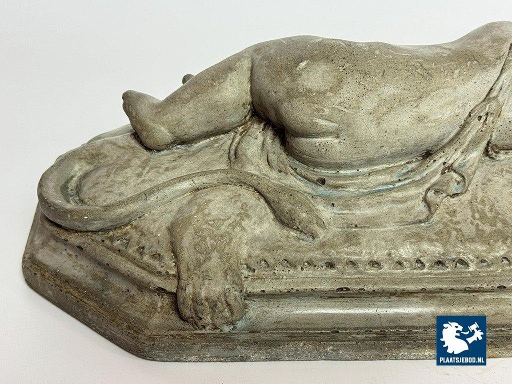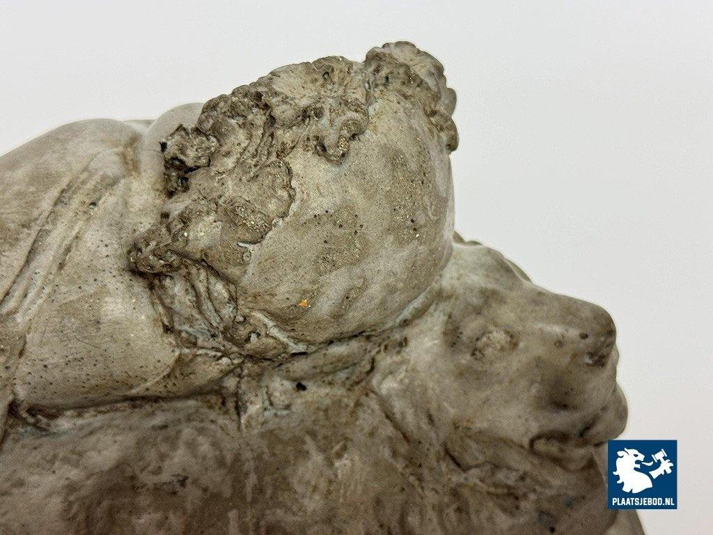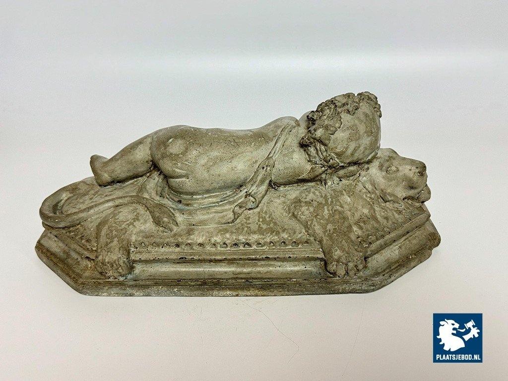 Lot 305-128-DA-053-S1: Finely Detailed Vintage Cast-Stone Sleeping Cherub on the Lion, 1950s-60s