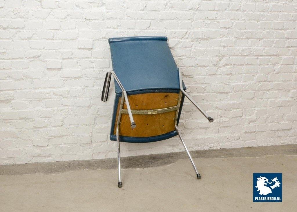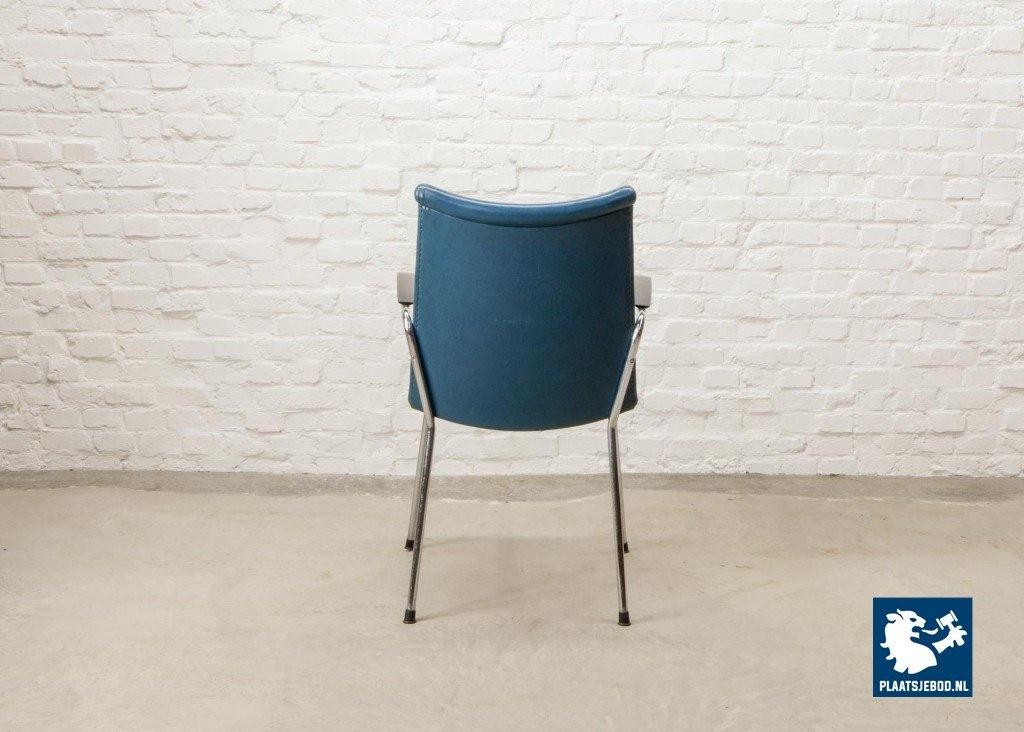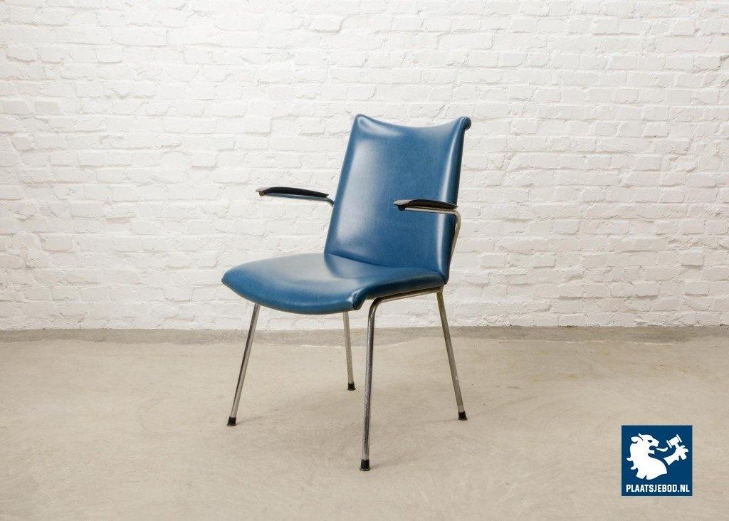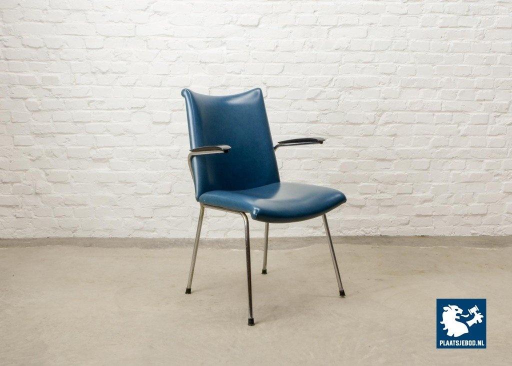 Lot 311-170-CH136: Gebroeders De Wit, Set of Three Dutch Design Arm Chairs with Vivid Blue Leatherette Upholstery. The Netherlands, 1960s.