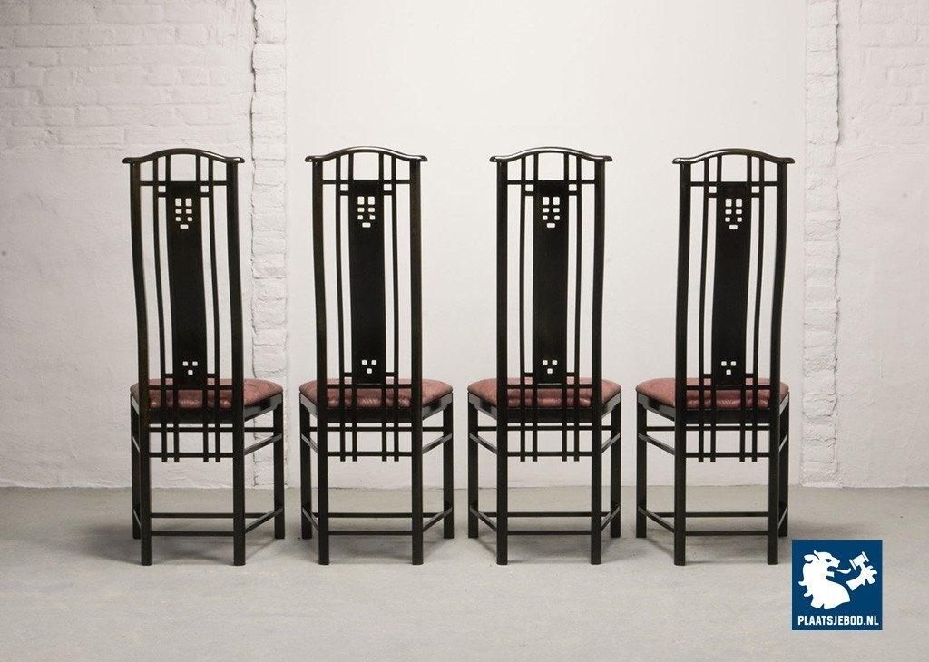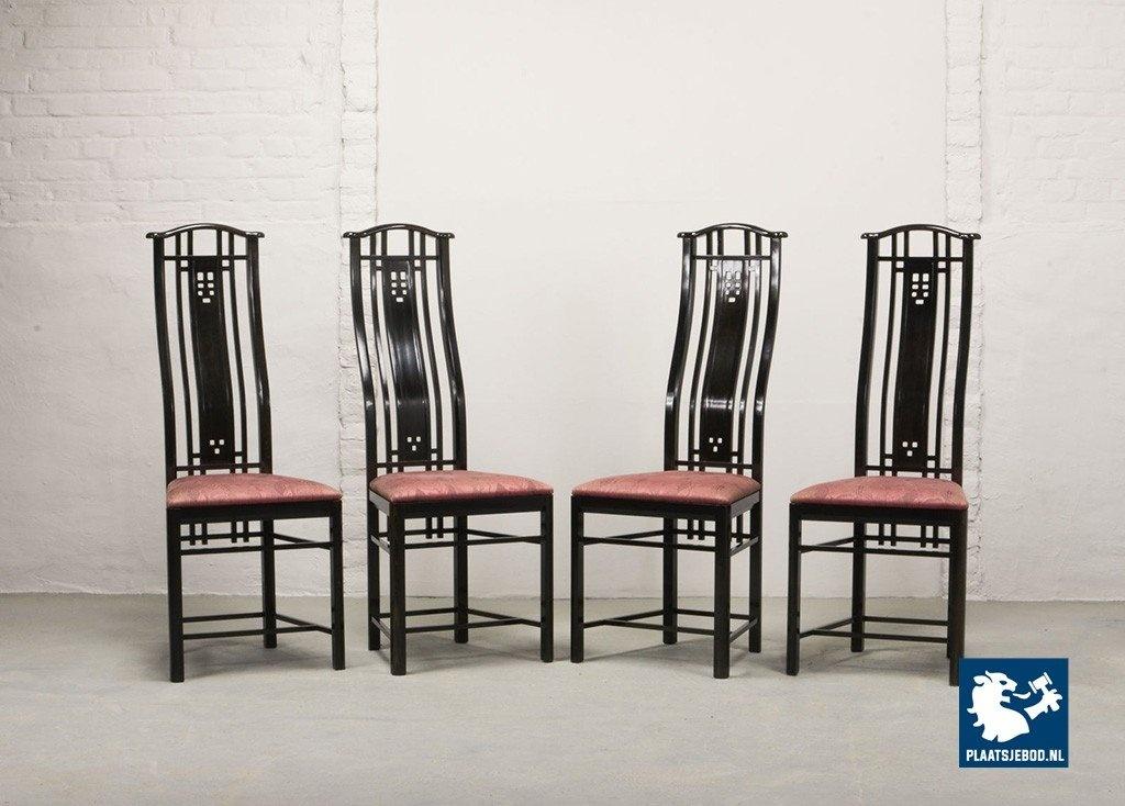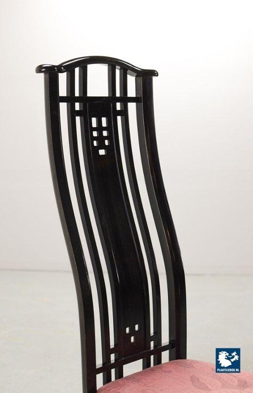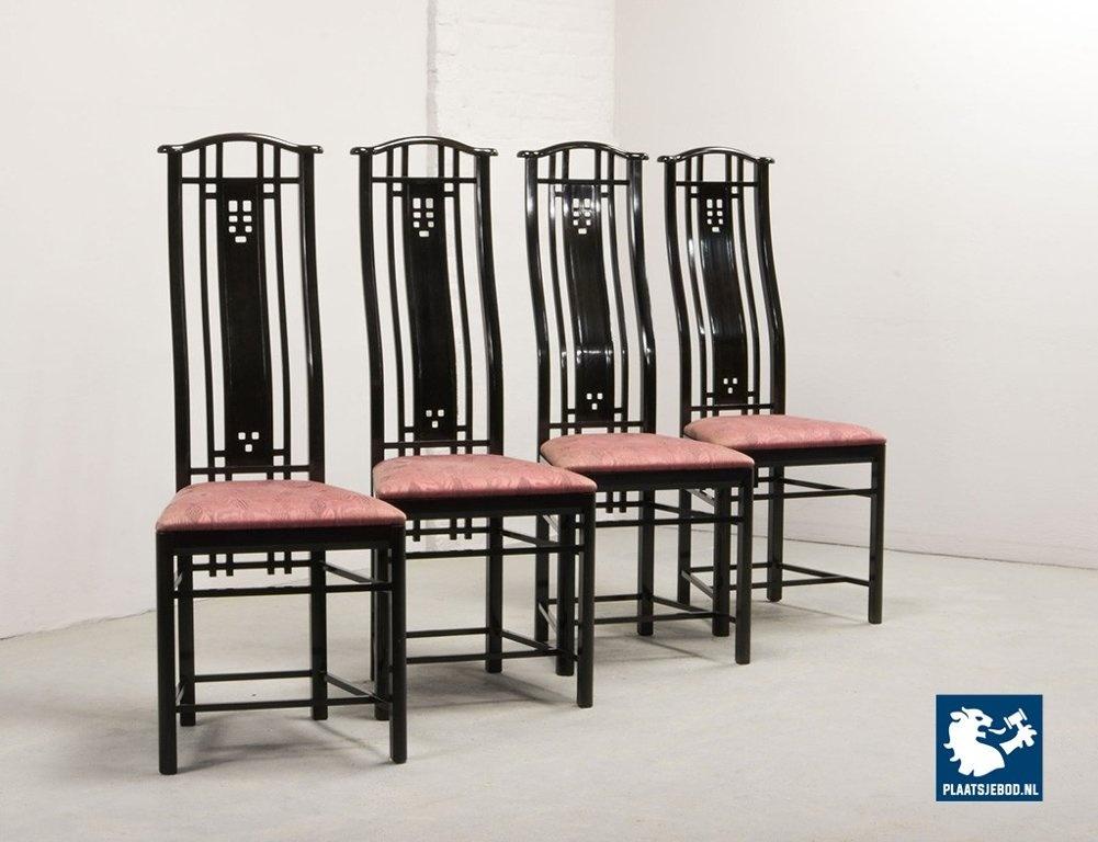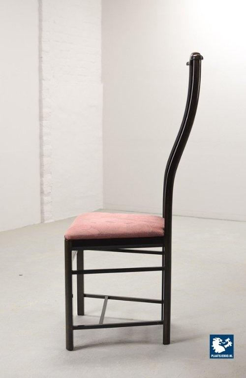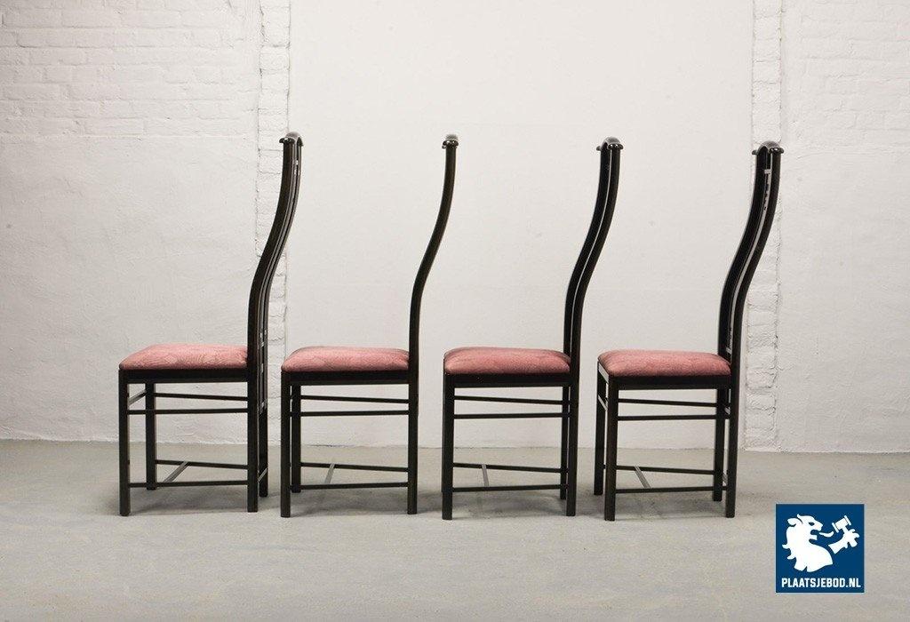 Lot 305-150-CH130-C1: Giorgetti Italian Design Dining Chairs, Set of Four High Back Black Lacquered with Luxurious Soft Pink Upholstery. Italy, 1980s.