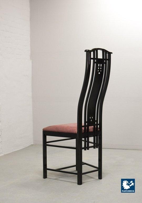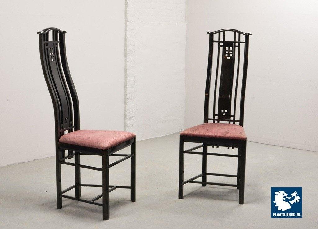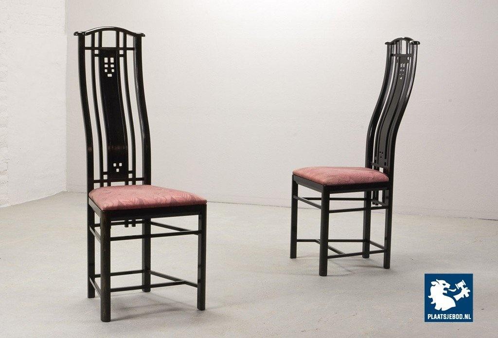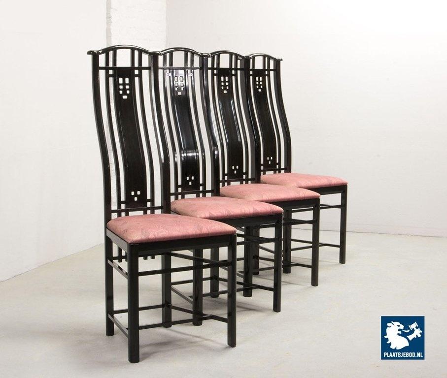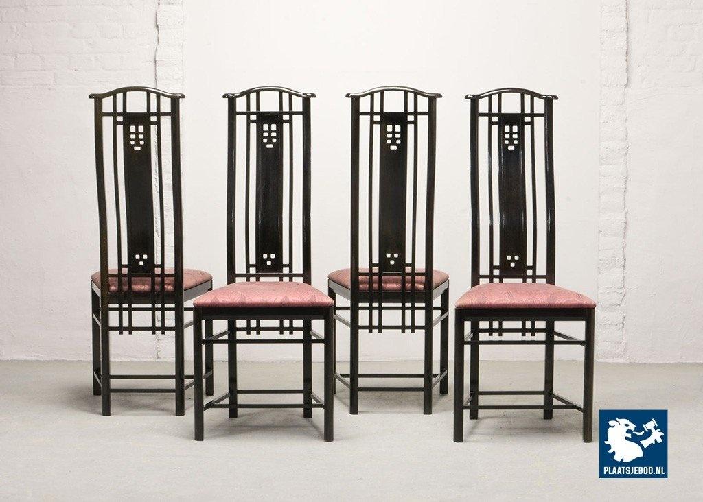 Lot 305-150-CH130-C1: Giorgetti Italian Design Dining Chairs, Set of Four High Back Black Lacquered with Luxurious Soft Pink Upholstery. Italy, 1980s.
