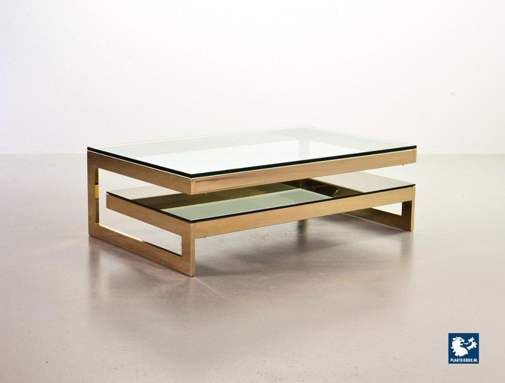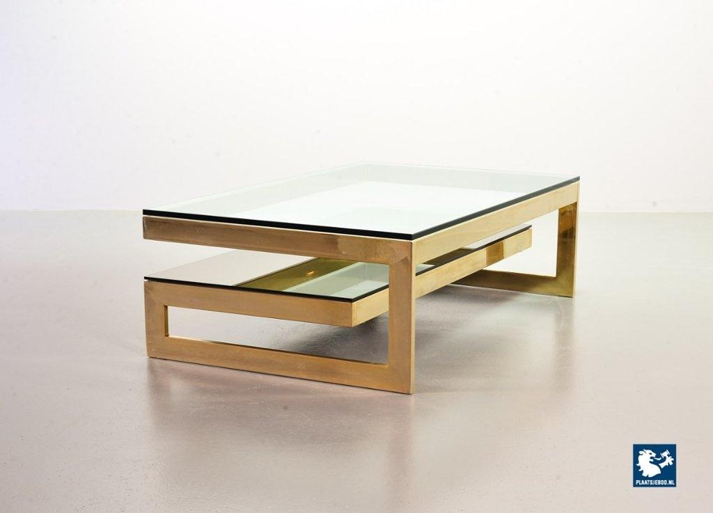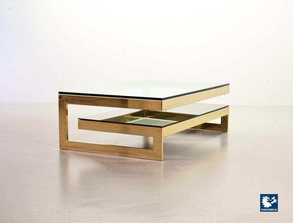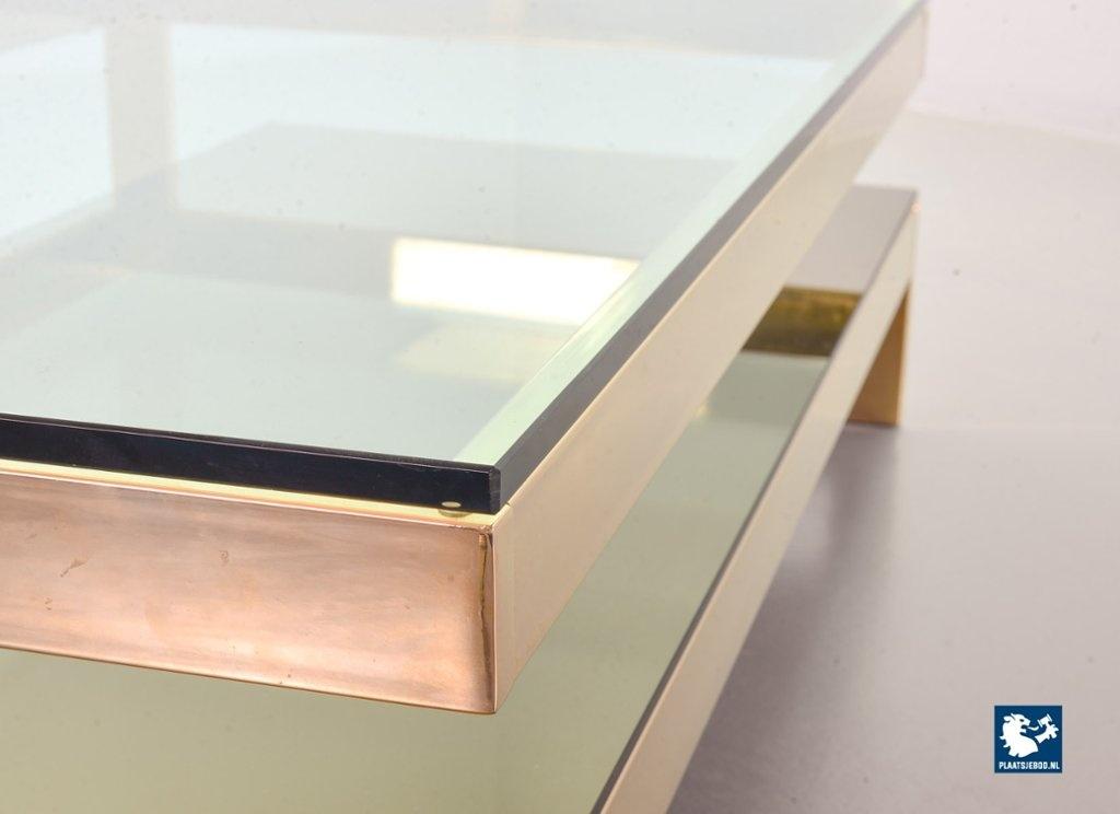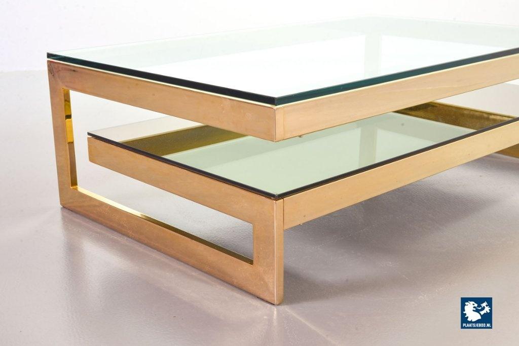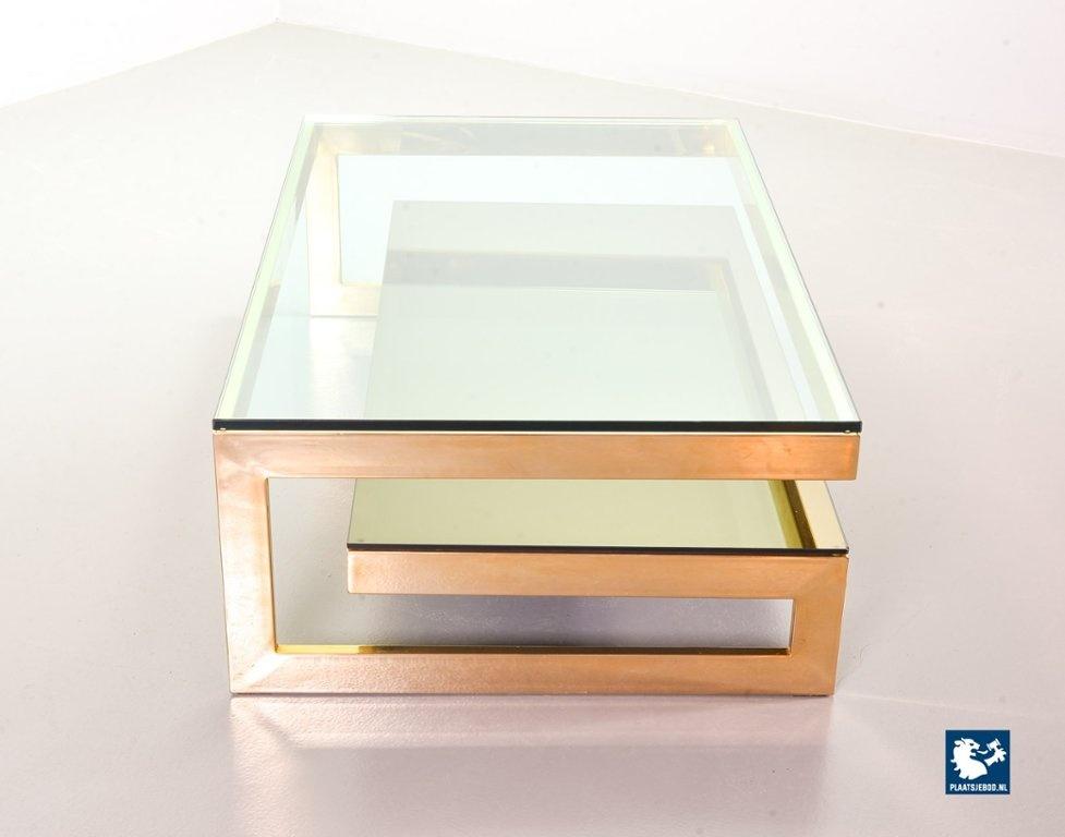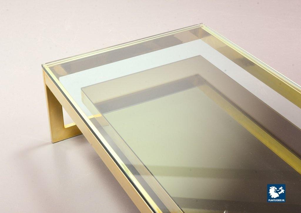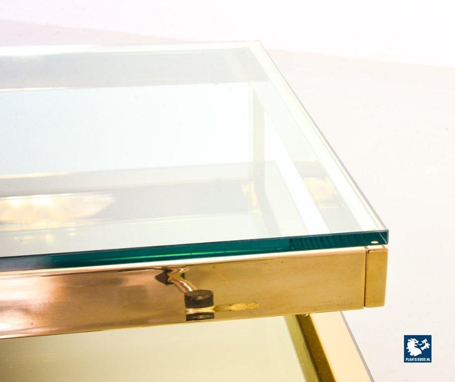 Lot 305-059-CT009-1-S3: Hollywood Regency Belgo-Chrom Architectural G-Table 23-Carat Goldplated with Glass Tops. Belgium, 1970s.