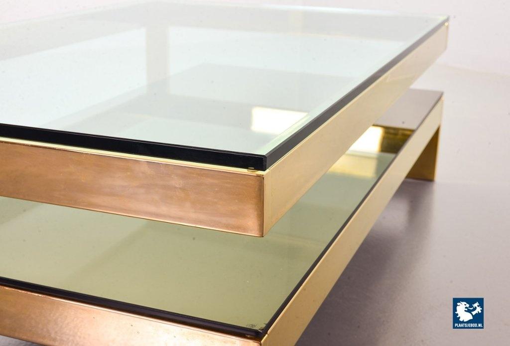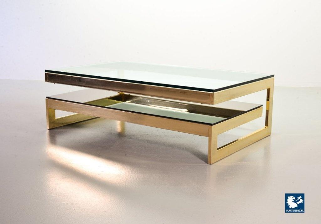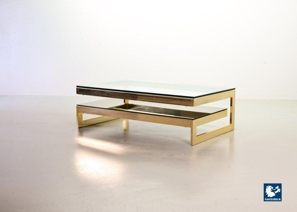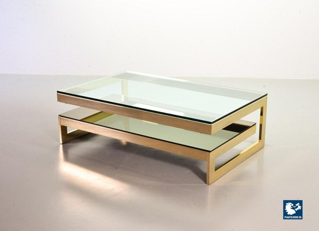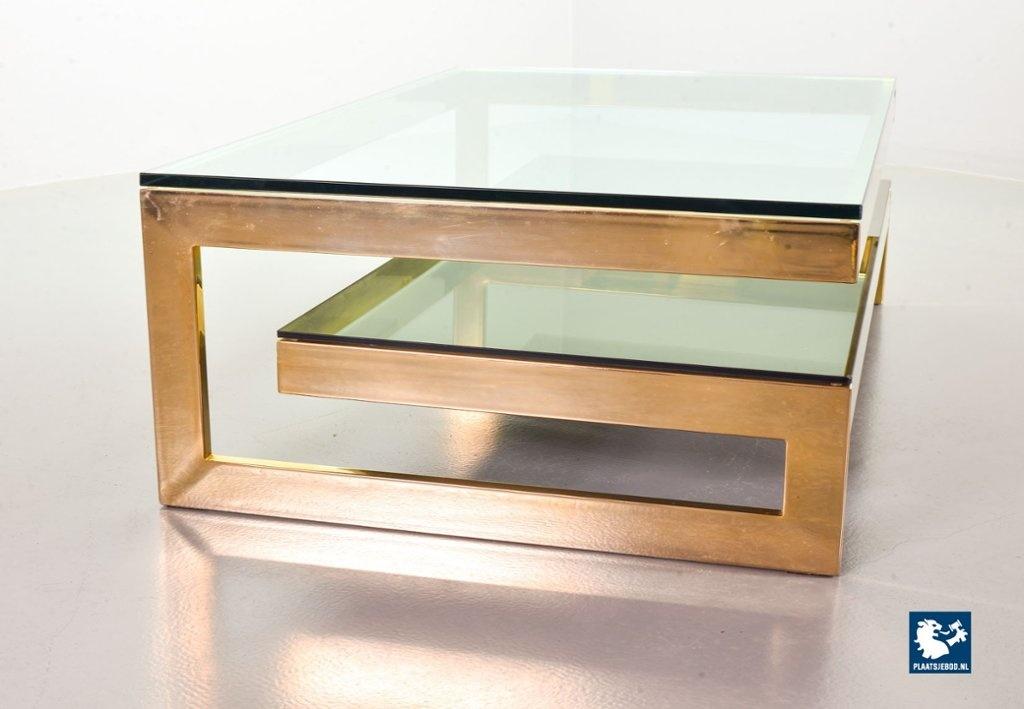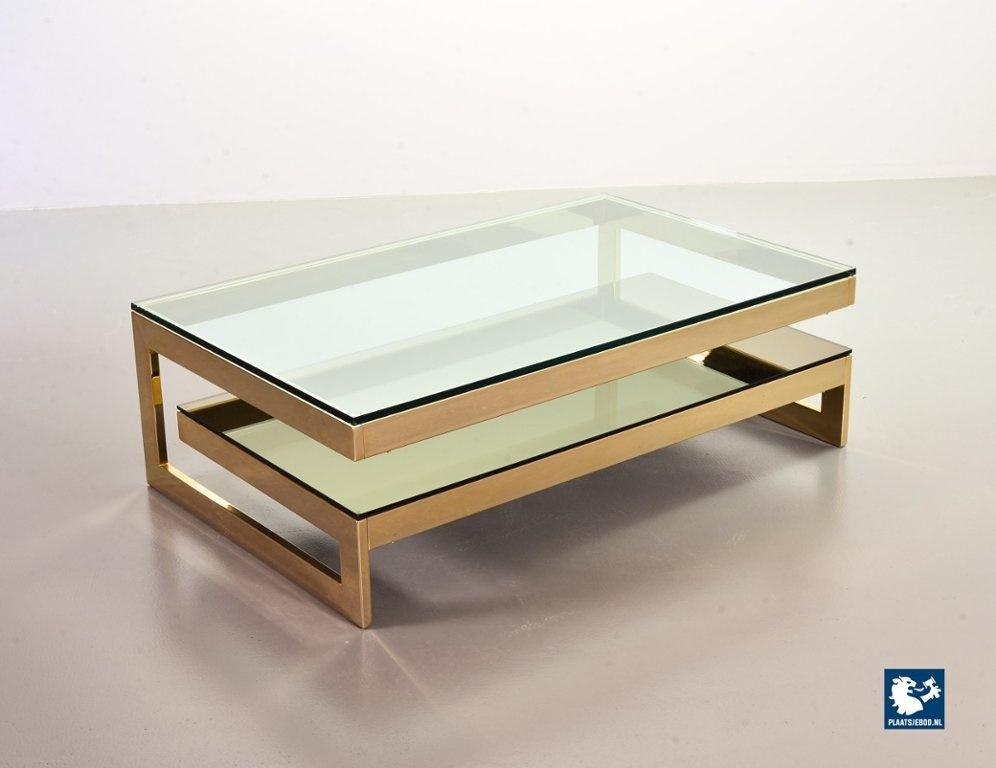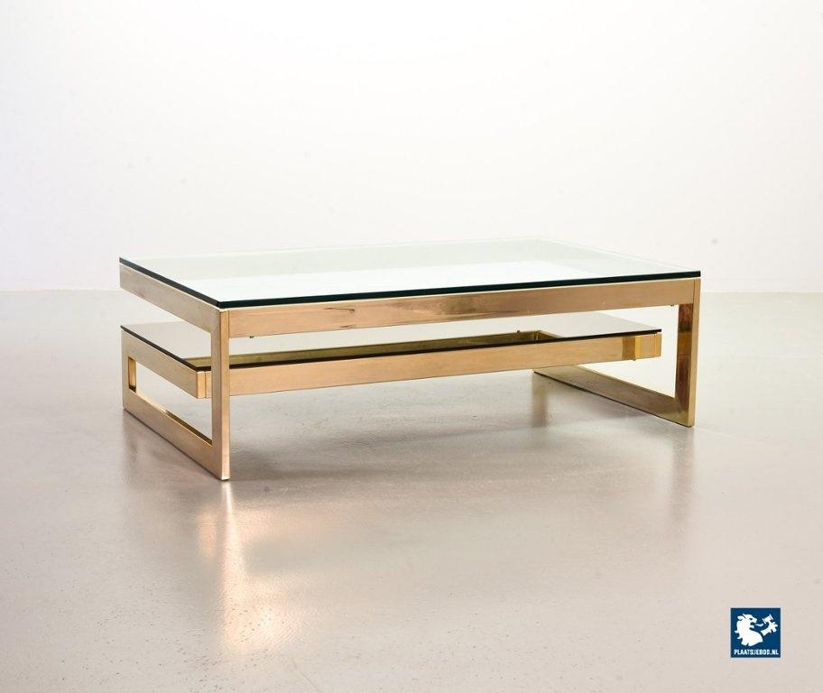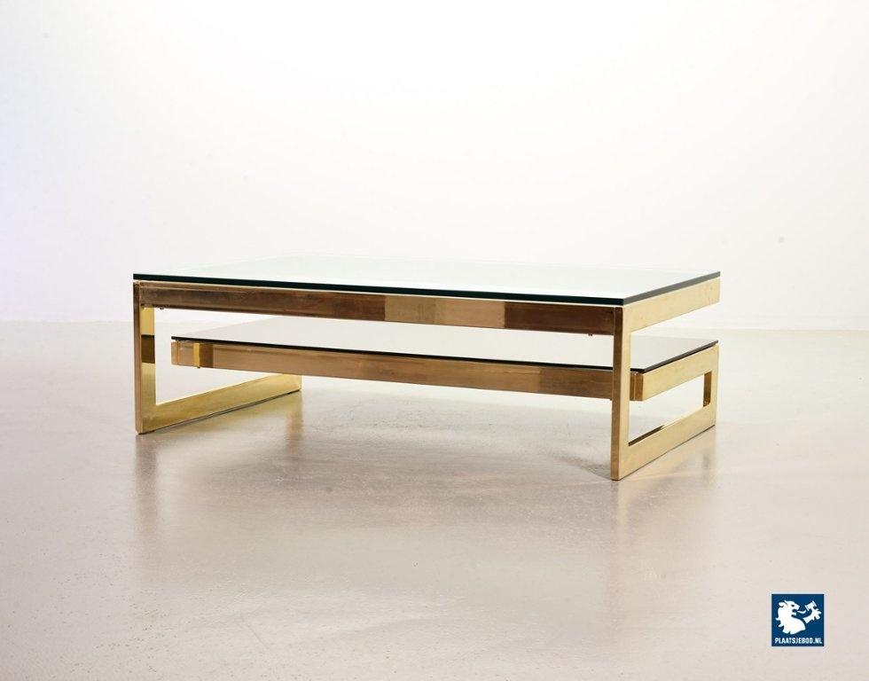 Lot 305-059-CT009-1-S3: Hollywood Regency Belgo-Chrom Architectural G-Table 23-Carat Goldplated with Glass Tops. Belgium, 1970s.