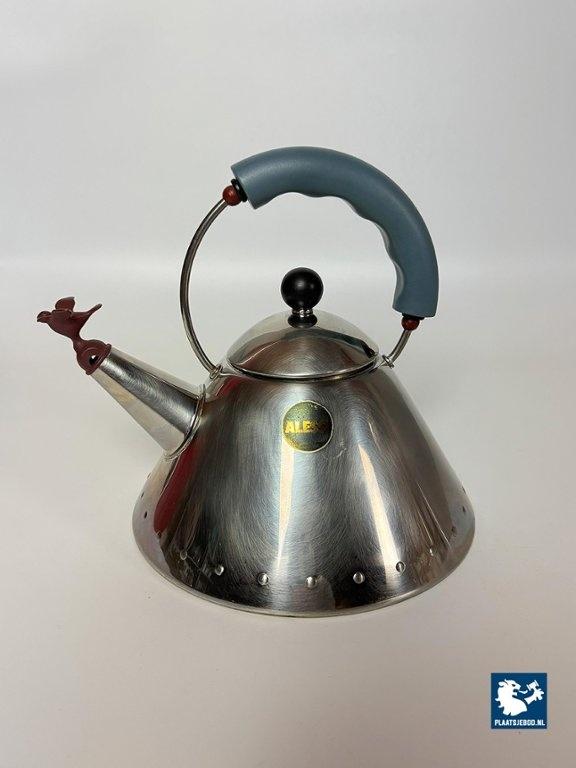 Iconic postmodern whistle kettle designed by Michael Graves for Alessi in 1985. This globally recognized design features Graves’ signature playful forms and bird-shaped whistle, blending functionality with strong visual identity. A landmark object in late 20th-century industrial design and a collectible Alessi classic. Crafted in mirror polished 18/10 stainless steel with a signature bird-shaped whistle, this 1985 design blends European artistic references with playful Pop Art accents. Dimensions: Height 20,5 Diameter 20 cm Capacity: 1 liter.