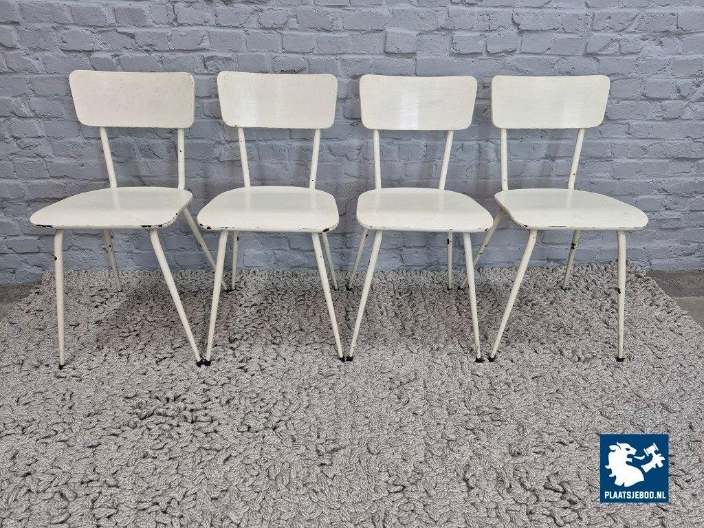 Lot 311-260-941CH-C1b: Industrial Wooden Chairs in All-White Finish, Set of Four – The Netherlands, 1950s