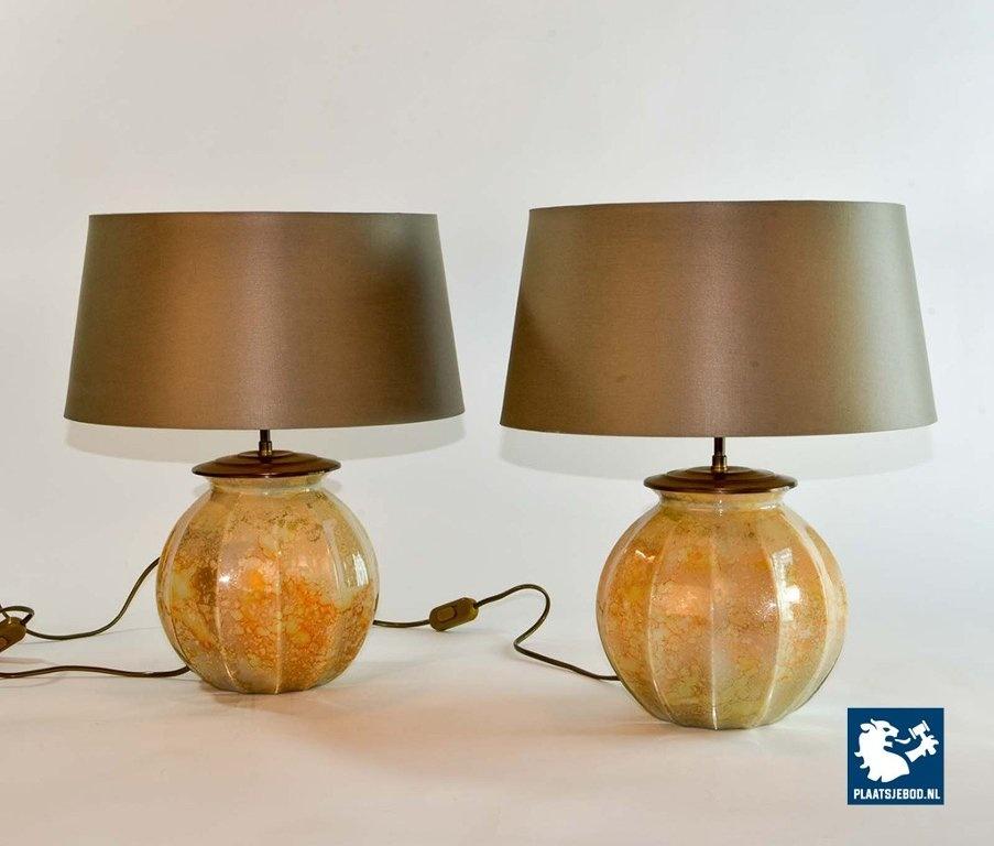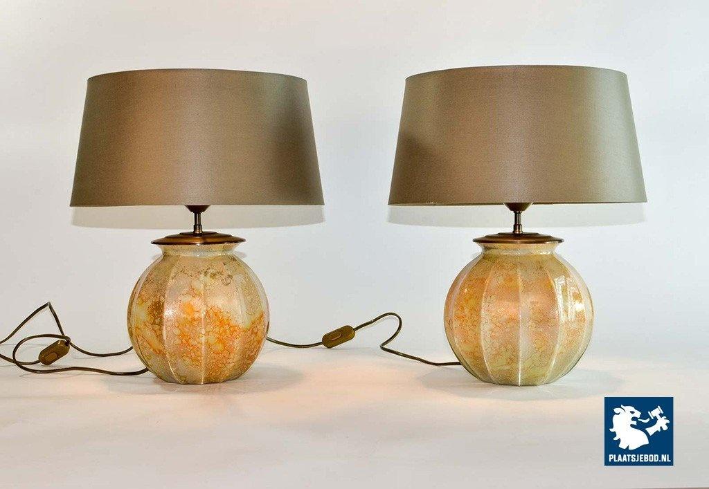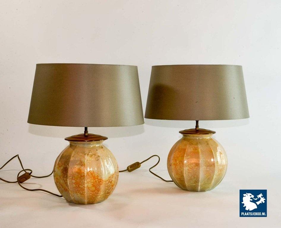 Stunning French handmade glass table lamps by Laque Line, 1970s.