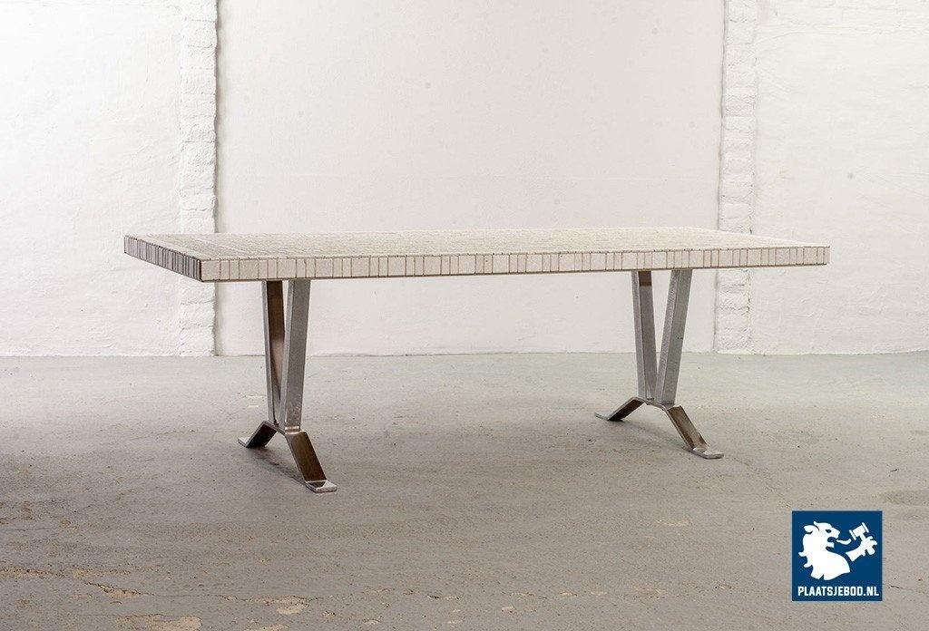 Lot 305-006-CT062 C2-A: Large Denisco Style Vintage Design Ceramic Tiles Coffee Table on Chrome Base. Belgium, 1960s.