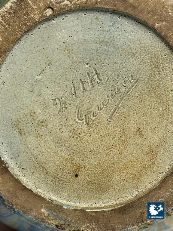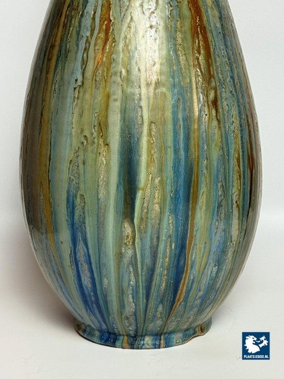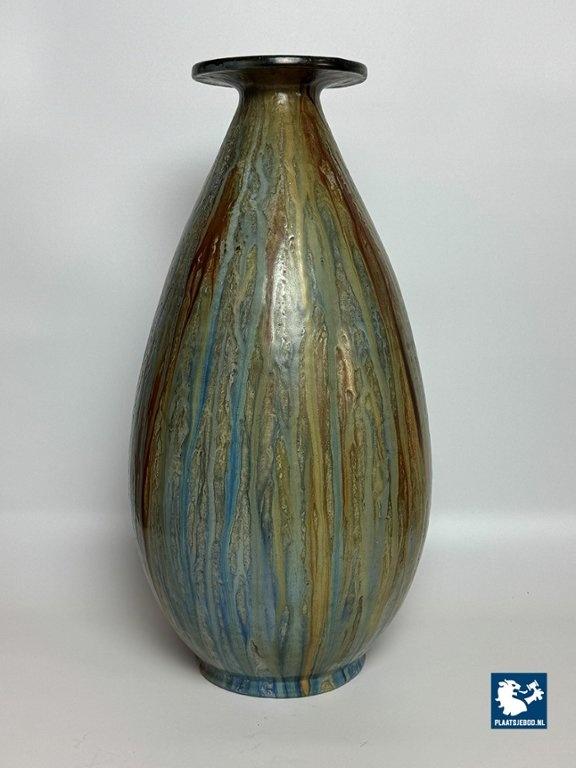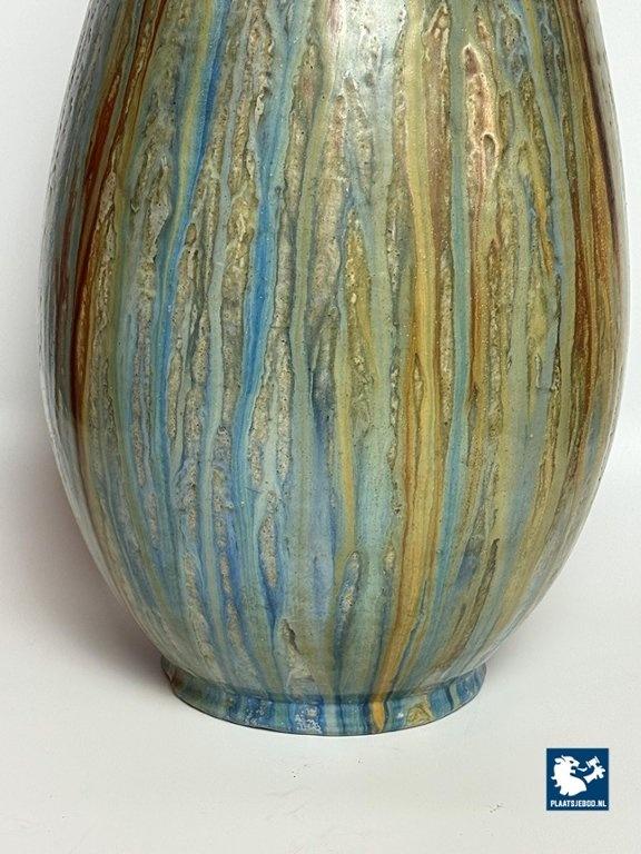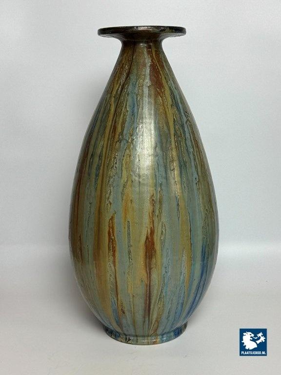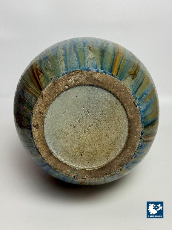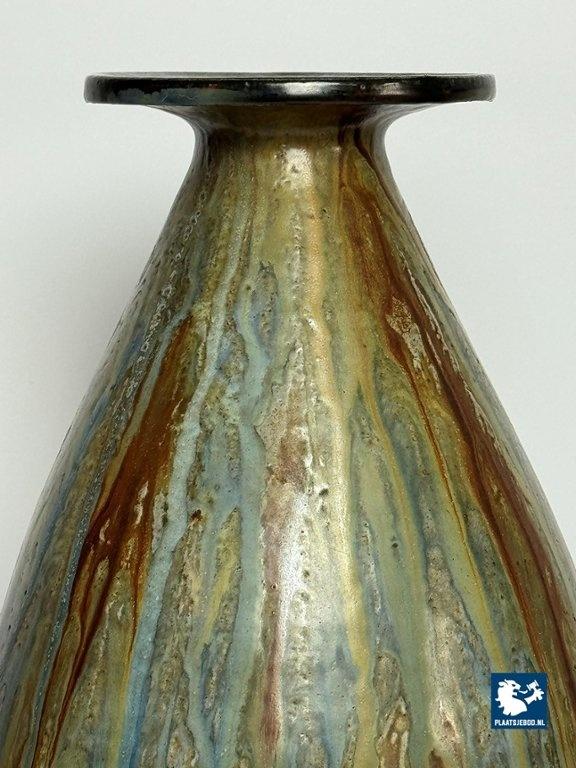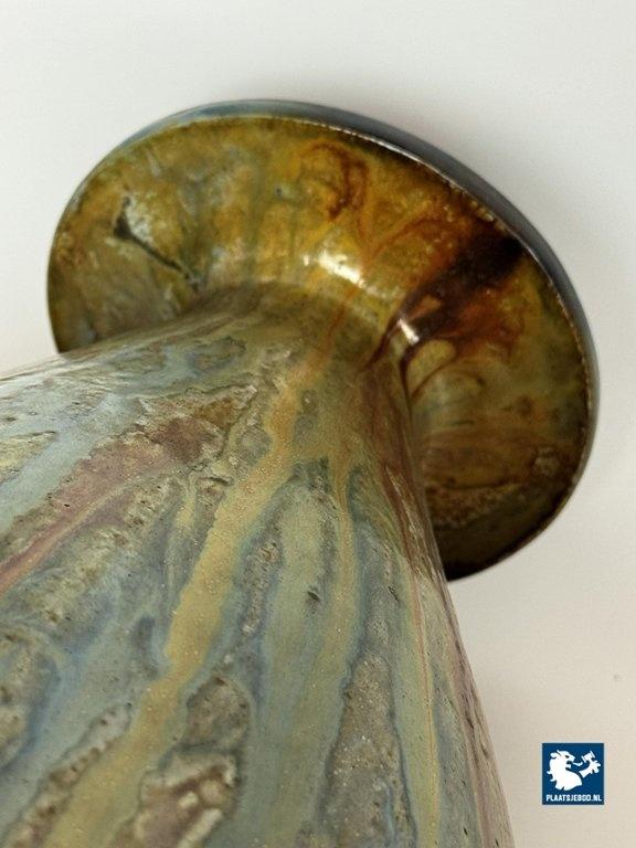 Lot 305-042-V001-B3: Large Exquisite Early Mid-Century Salt Glaze Stoneware Vase Signed by Guerin with small Neck, 1930s.