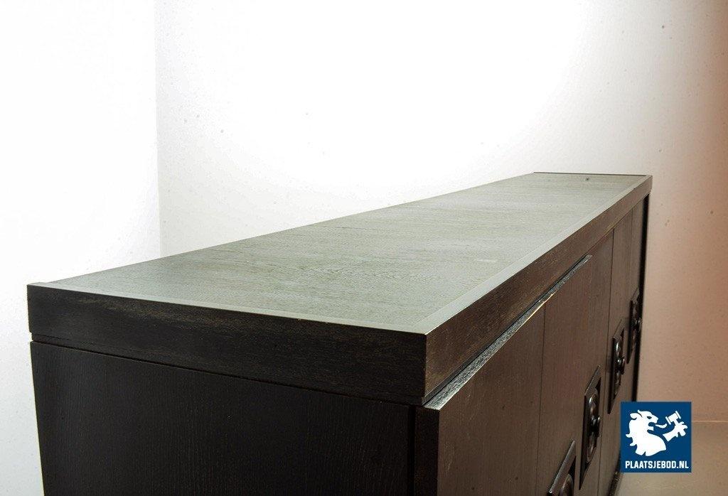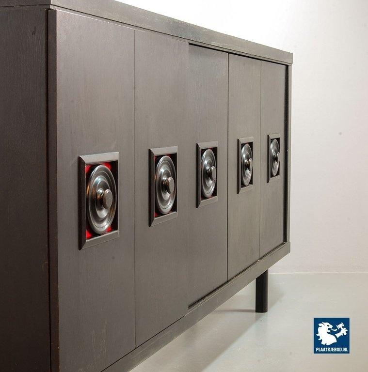 De Coene Style large brutalist highboard in black wood with