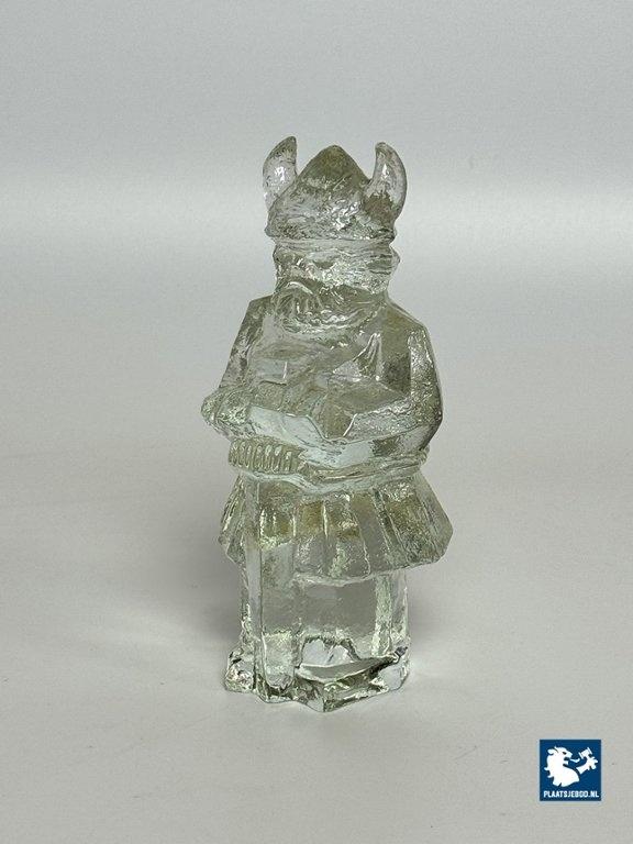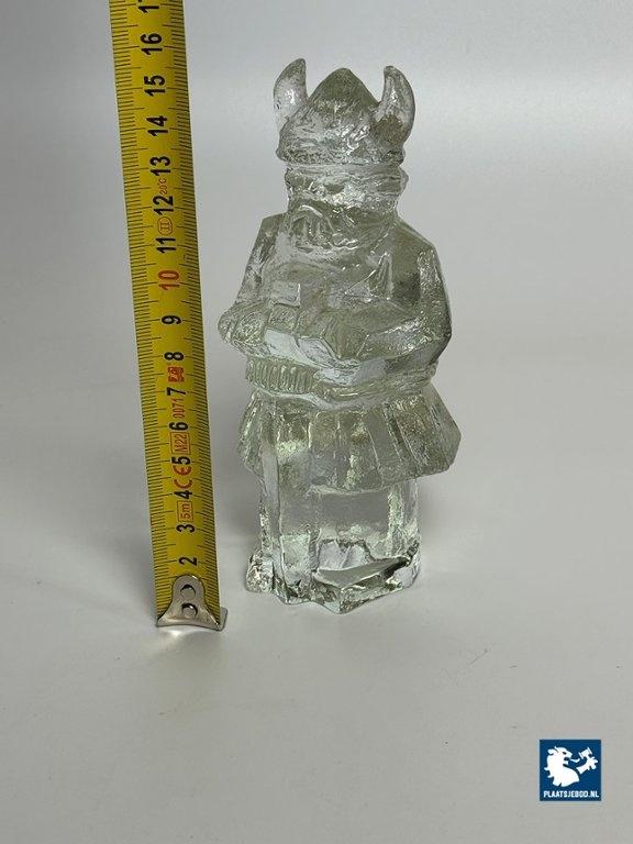 This vintage glass Viking figurine was designed by Uno Westerberg for the Swedish glassworks Pukeberg. Created in the 1970s, it reflects a bold, modernist aesthetic blended with traditional Nordic influences. Cast in clear, high-quality crystal glass, the piece has notable weight and clarity. Pukeberg, founded in 1871 and located in Sweden’s famed “Kingdom of Glass,” is known for its craftsmanship and innovative Scandinavian design. Dimensions: Height 15 Width 8 Depth 7 cm