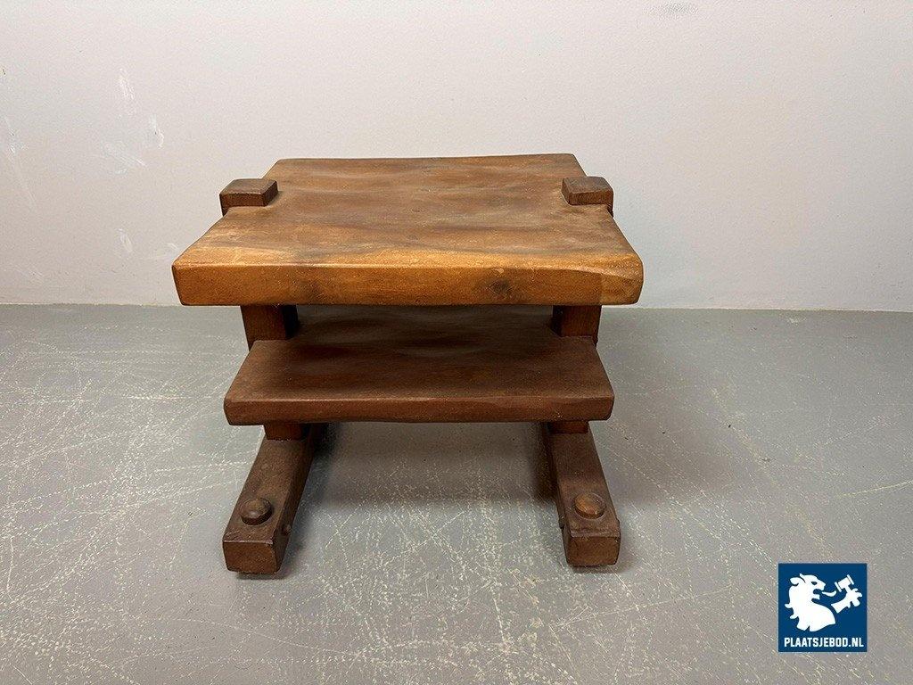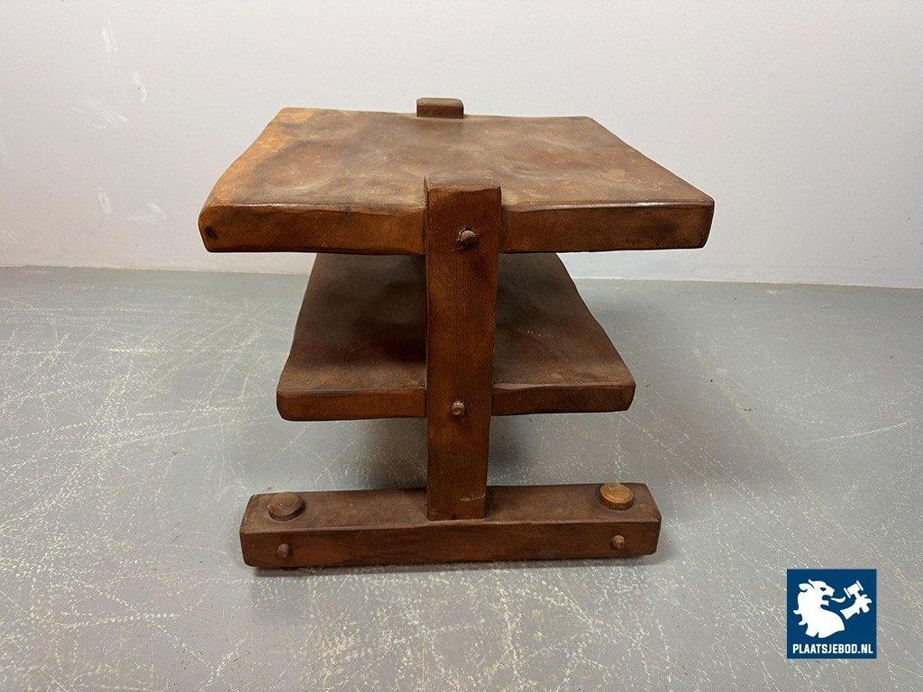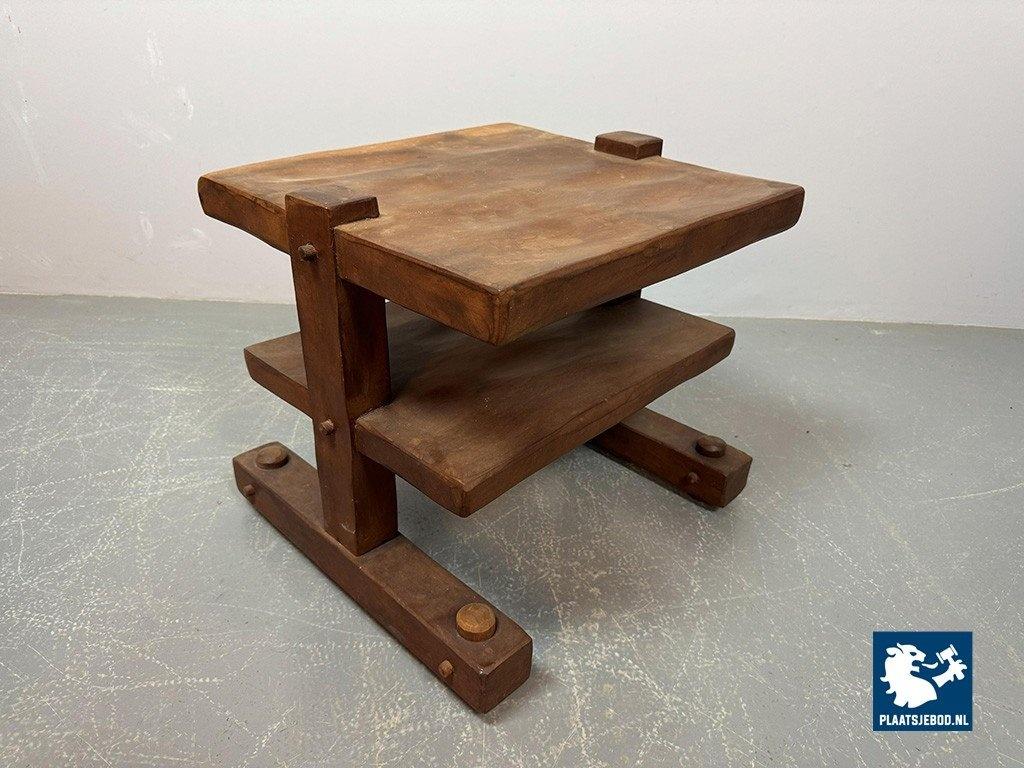 Hand-sculpted solid wood side table originating from Brazil,