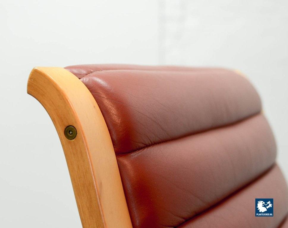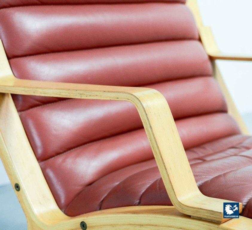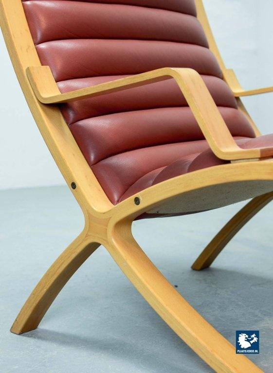 Danish beech wooden with padded red leather upholstery high back