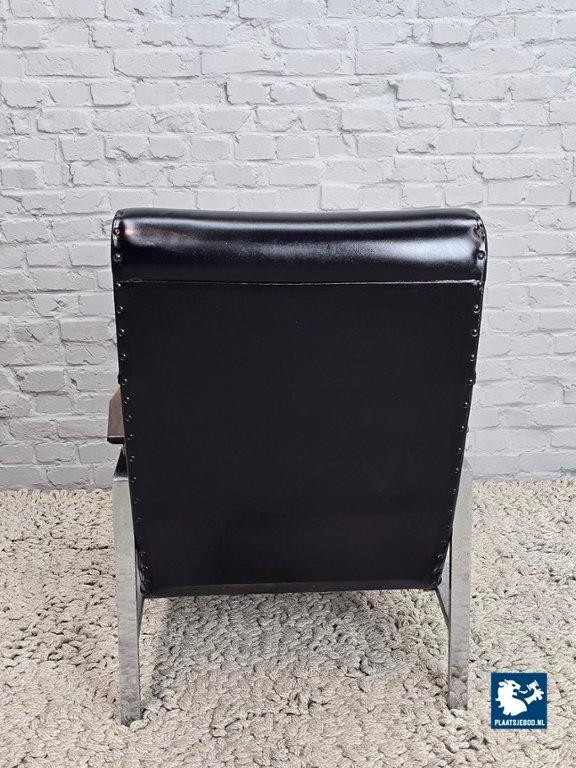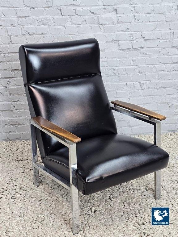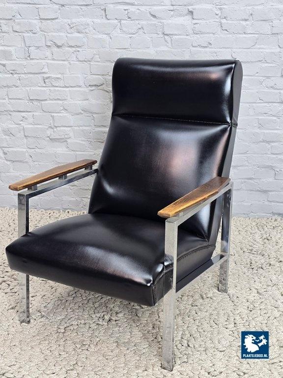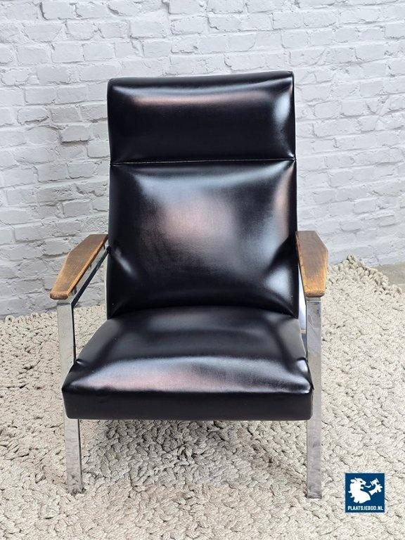 Gelderland. The chair features a chromed metal frame, teak wooden