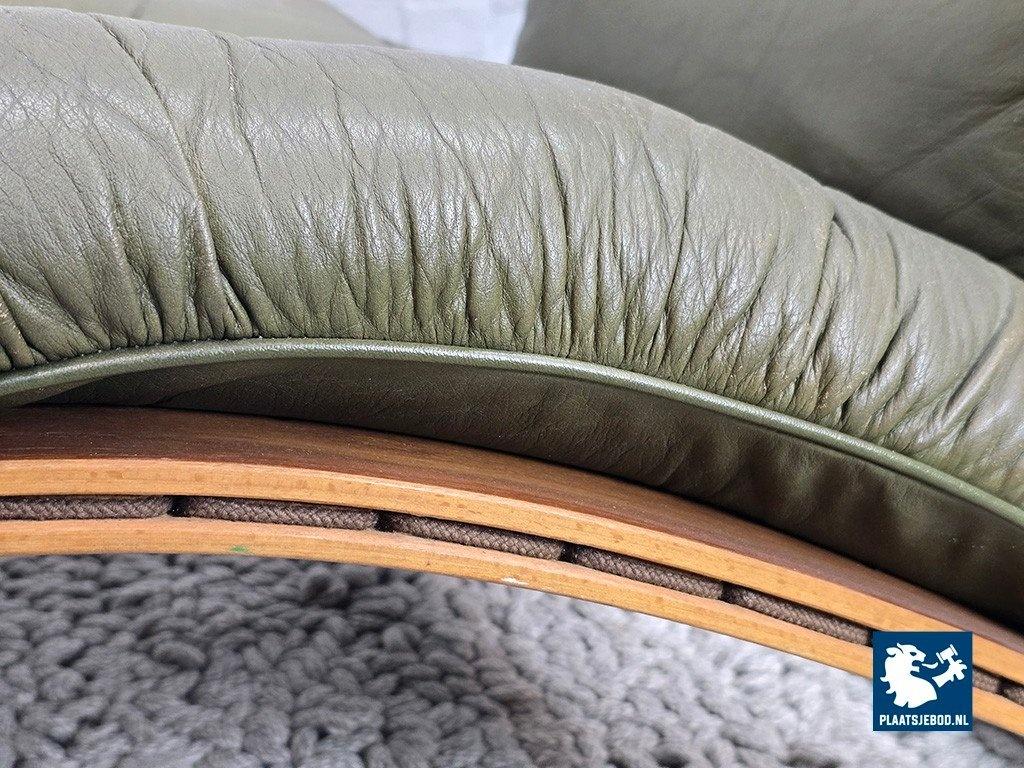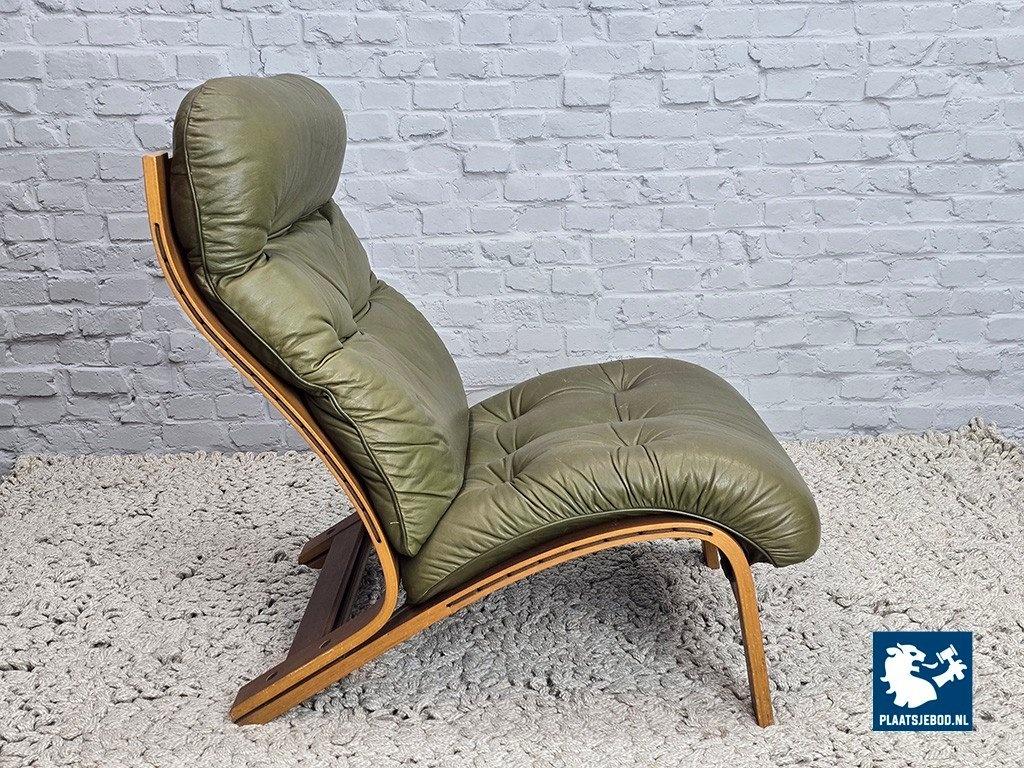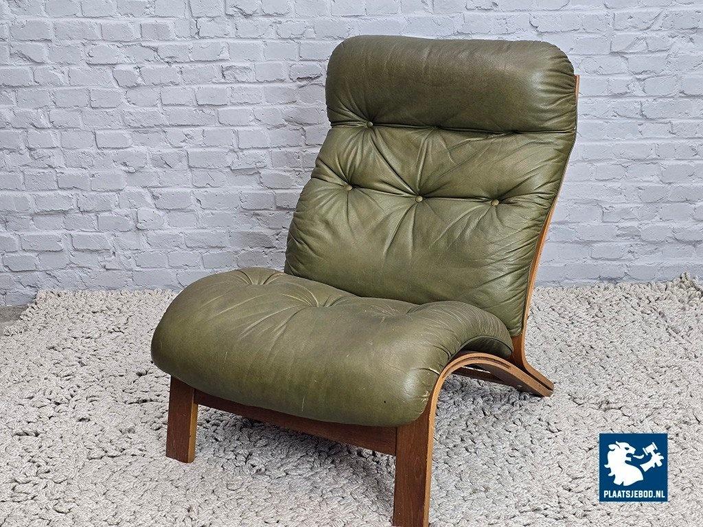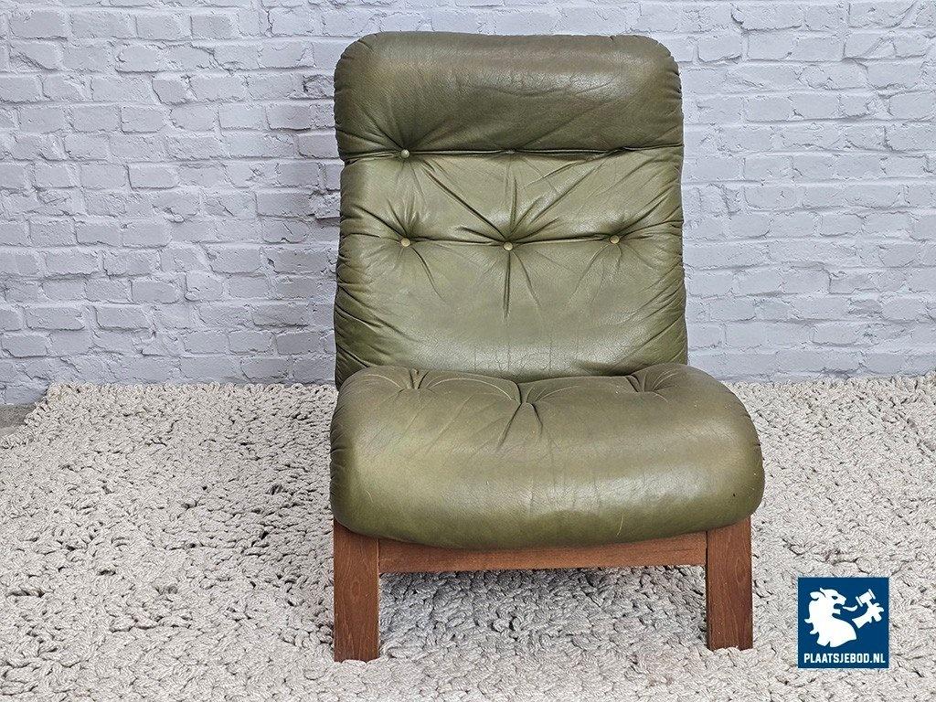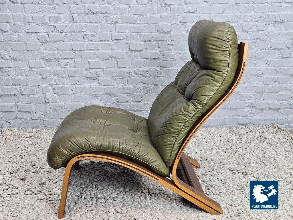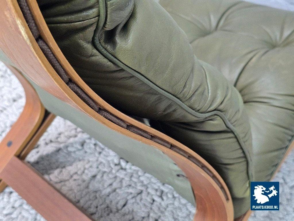 Lot 305-047-CH809-D5: Mid-Century Design Rybo Rykken Ry-Wing Lounge Chair in Olive Green Leather, Norway, 1960s