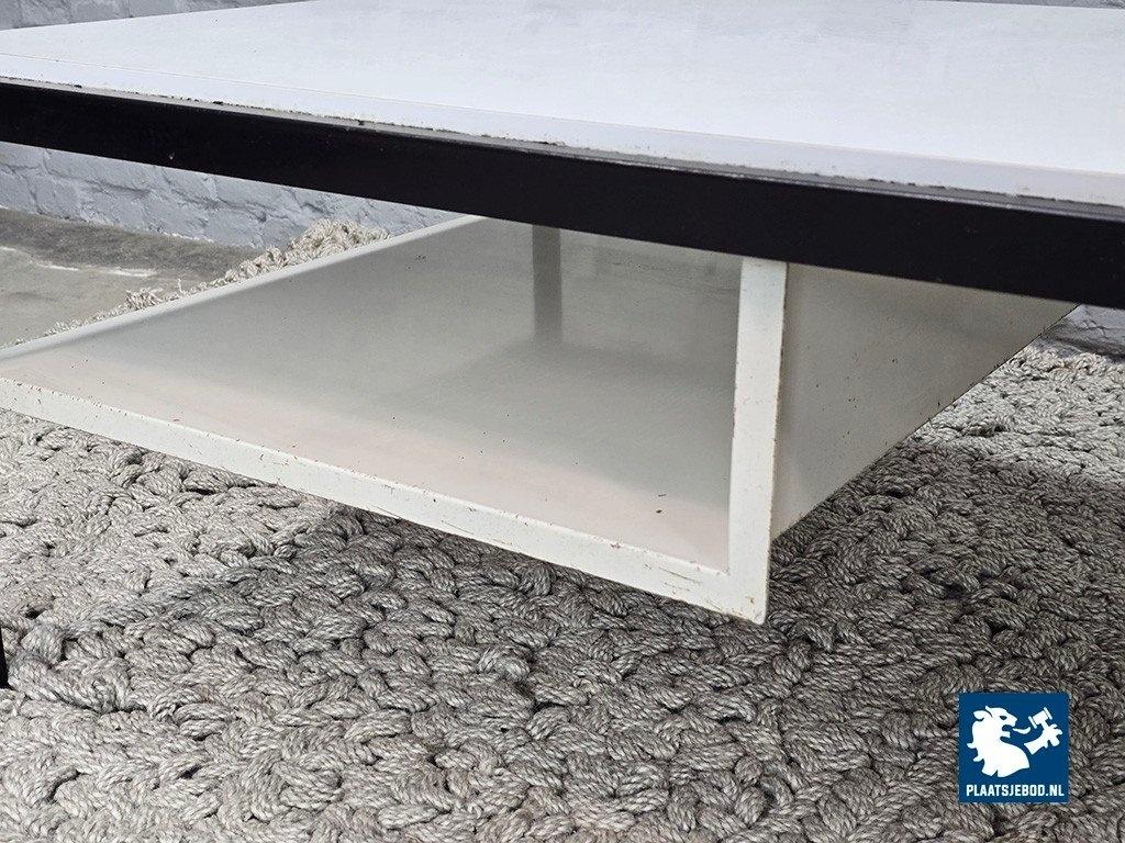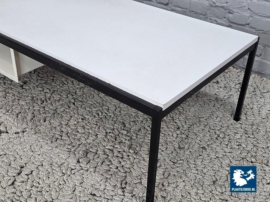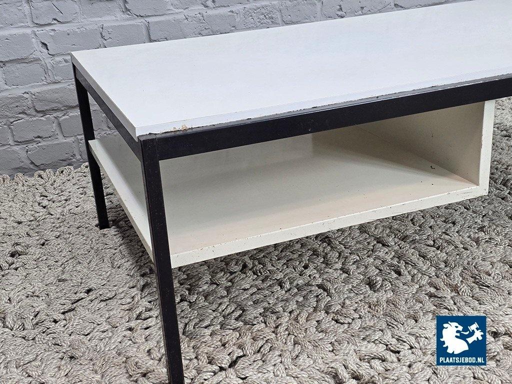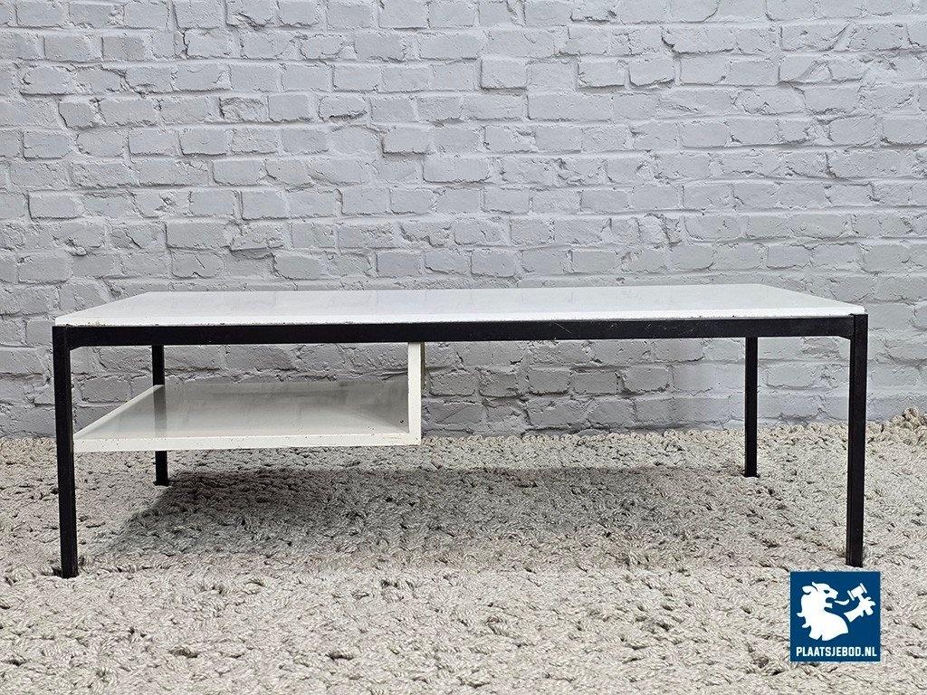 Mid-Century Dutch Design White Coffee Table Model 3666 Designed by Coen de Vries for Gispen, 1960s. Minimalist coffee table designed by Coen de Vries for Gispen, model 3666. Inspired by Bauhaus principles, the table features a white laminated top, white steel magazine rack and a contrasting black steel frame. The table is in very good vintage condition. Minor signs of use on the black steel frame; the white laminated surface remains clean with only very light surface marks. A timeless example of Dutch modernist design. Dimensions: Height 41 Width 120 Depth 52 cm.